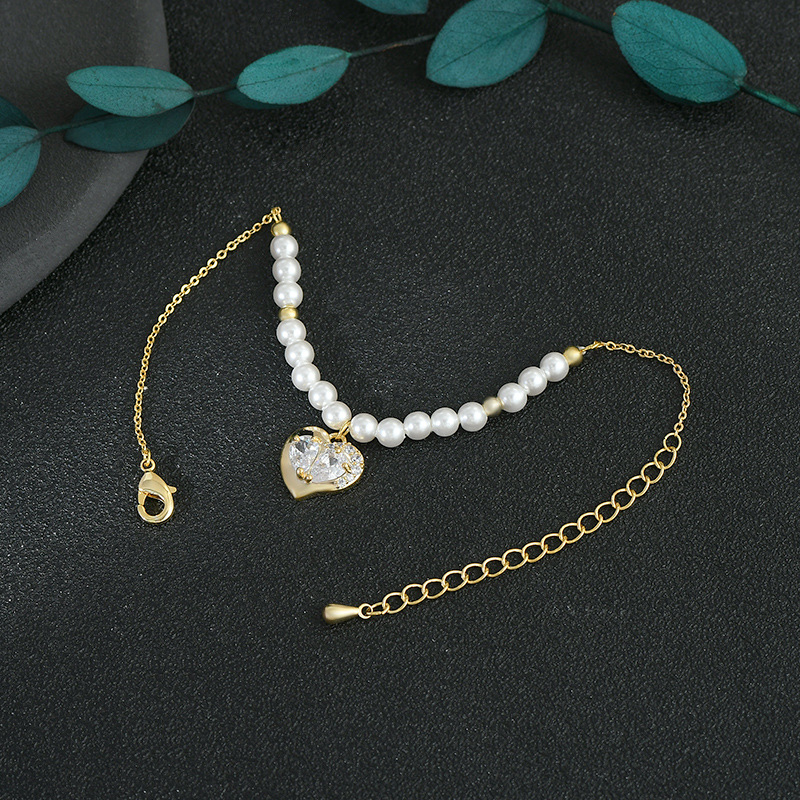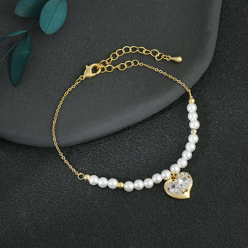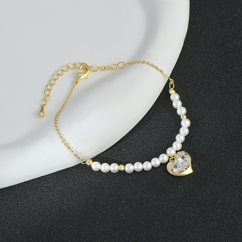 秋冬新款真金电镀镶锆石个性手饰品高级感桃心珍珠手链通勤风手饰 English | 投诉