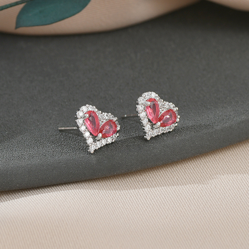 S925银针小众设计感桃心耳钉女2023新款气质爱心耳饰学生甜美耳坠 English | 投诉