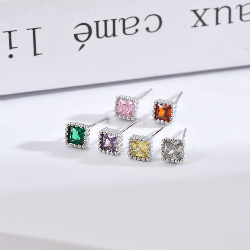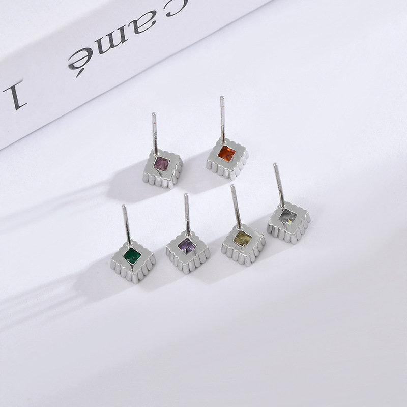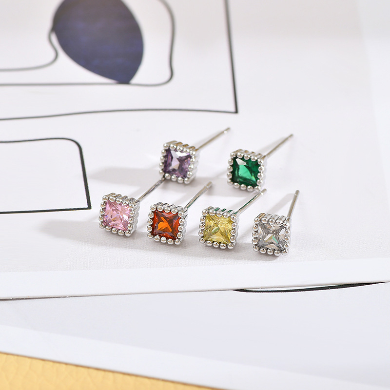 高级感一卡三对小耳钉组合S925银针甜美时尚锆石几何方形耳环耳饰 English | 投诉
