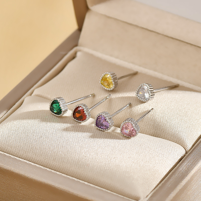 高级感一卡三对小耳钉组合S925银针甜美时尚锆石桃心耳环学生耳坠 English | 投诉