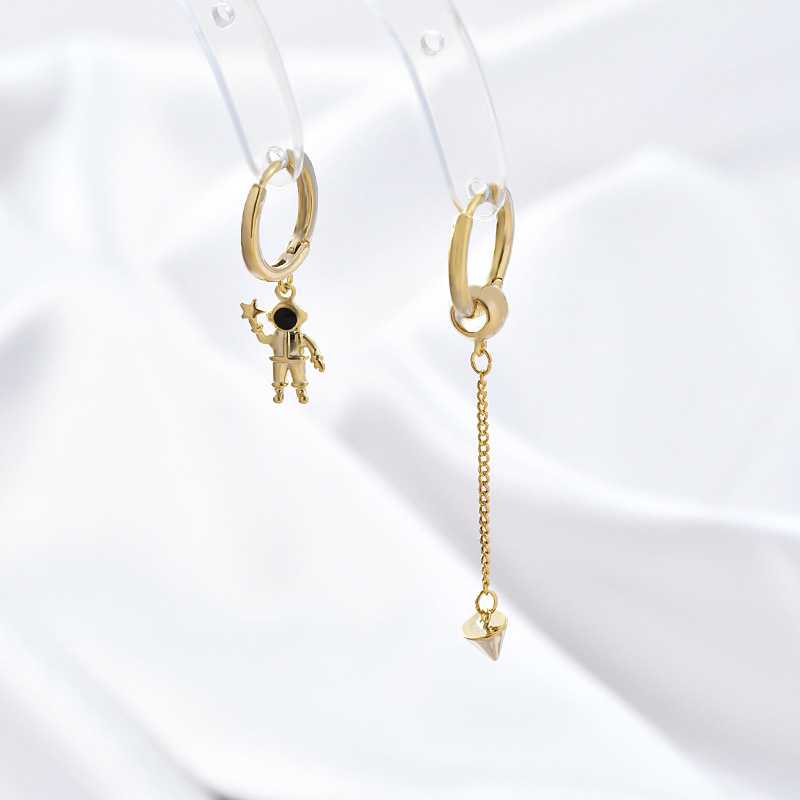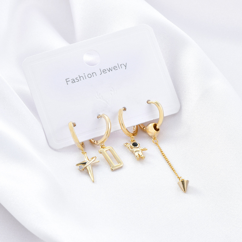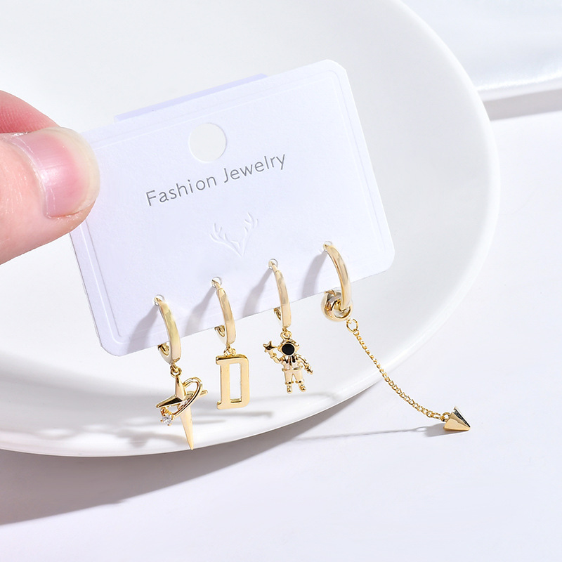日韩时尚一卡两对耳环套装简约精致锆石微镶太空人耳钉耳扣女耳饰