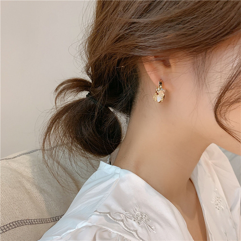 韩国复古S925银针贝壳花朵耳钉 手工花瓣镀金撞色显瘦耳环耳饰女 English | 投诉