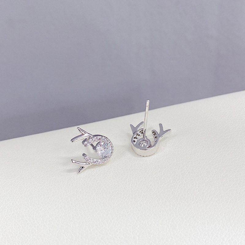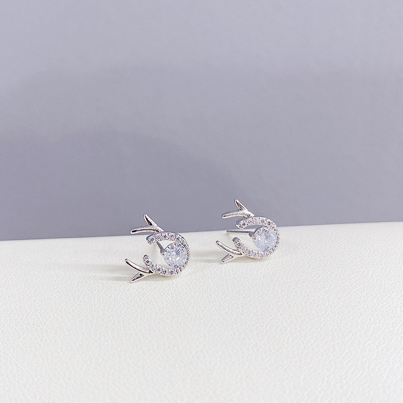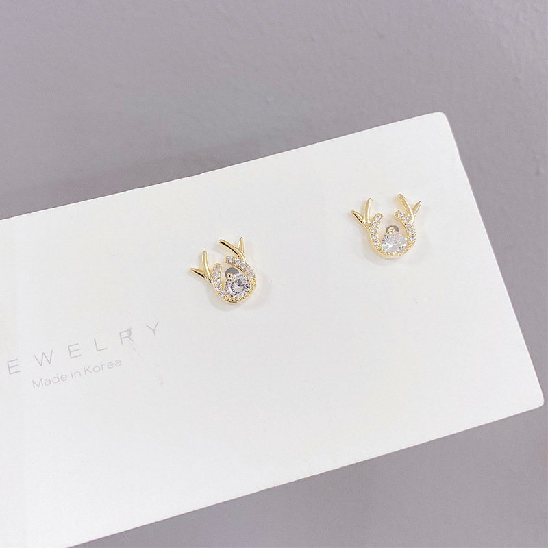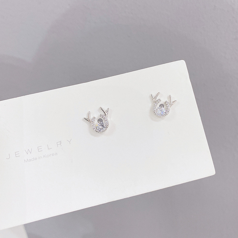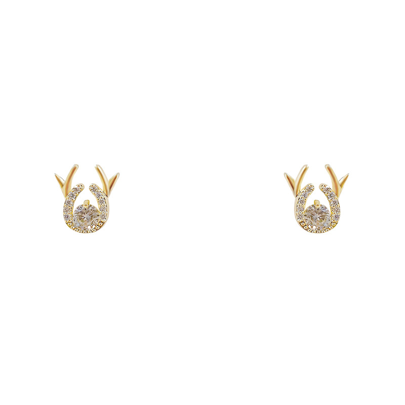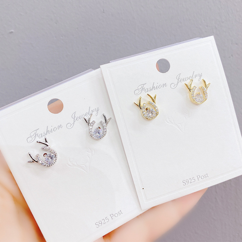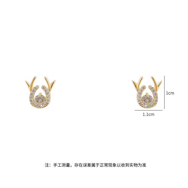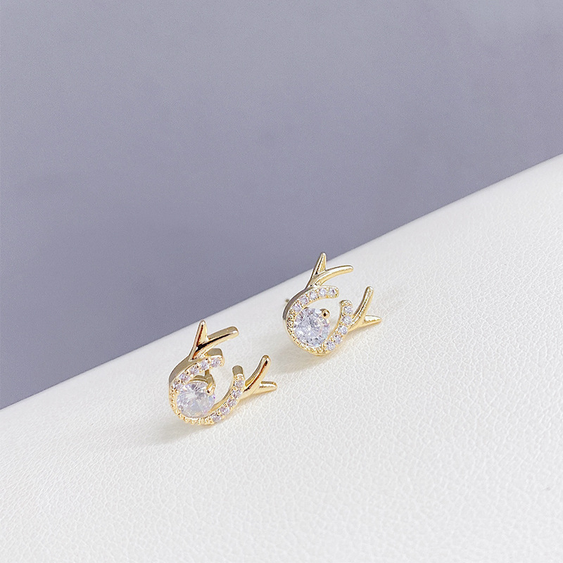 新款鹿角耳钉S925银针简约锆石一鹿有你耳饰学生气质礼物源头工厂