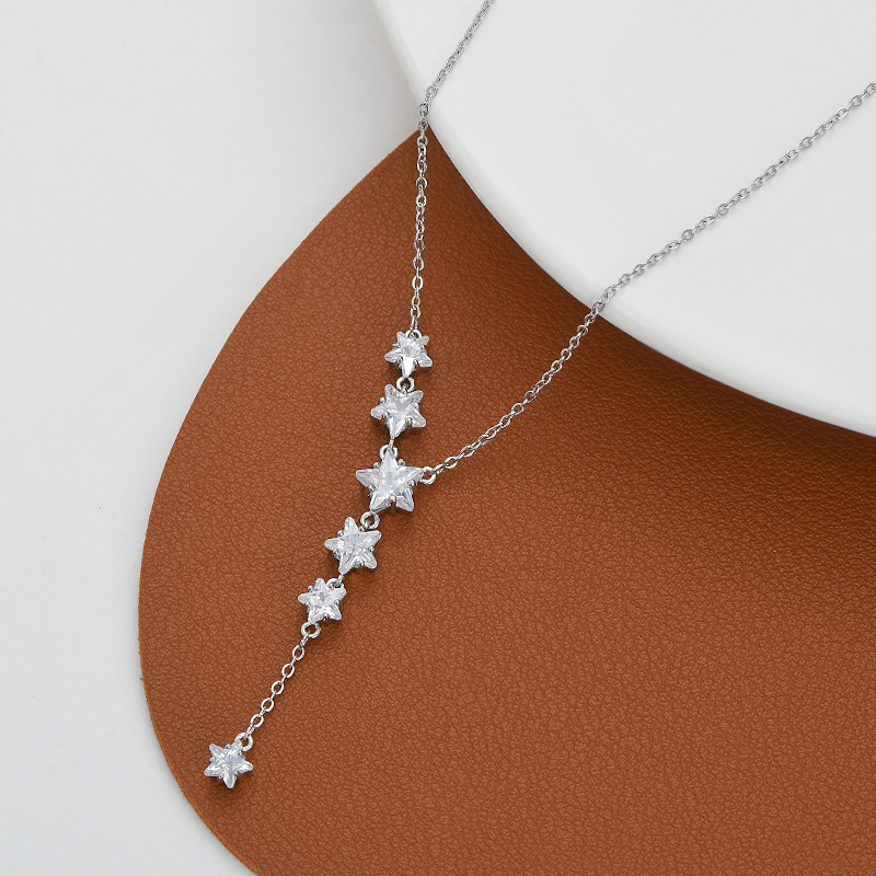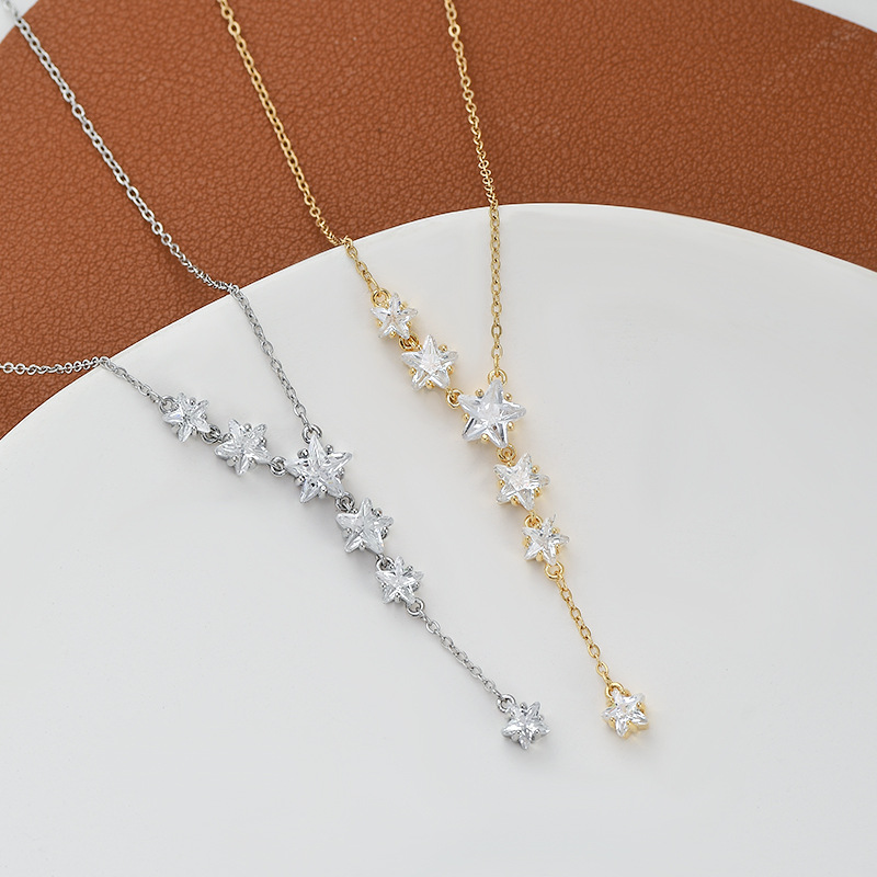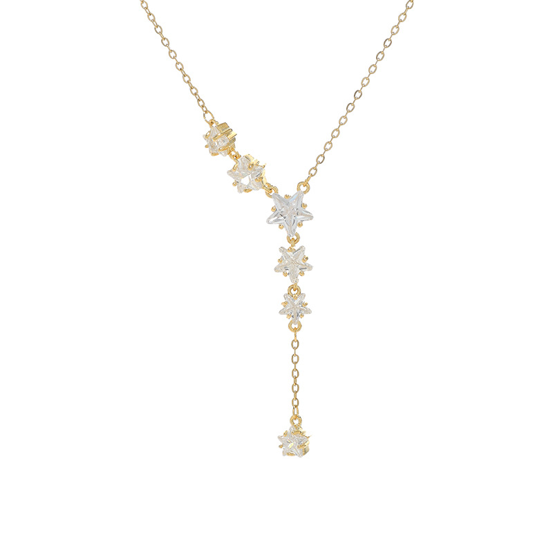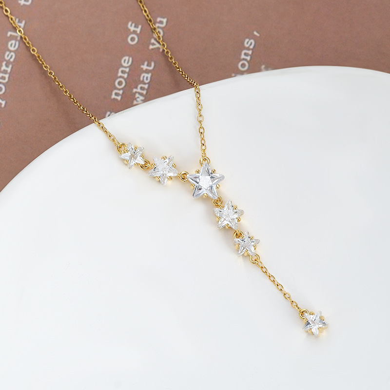 真金电镀微镶锆石气质锁骨链女小众设计感五角星项链星星流苏颈链 English | 投诉