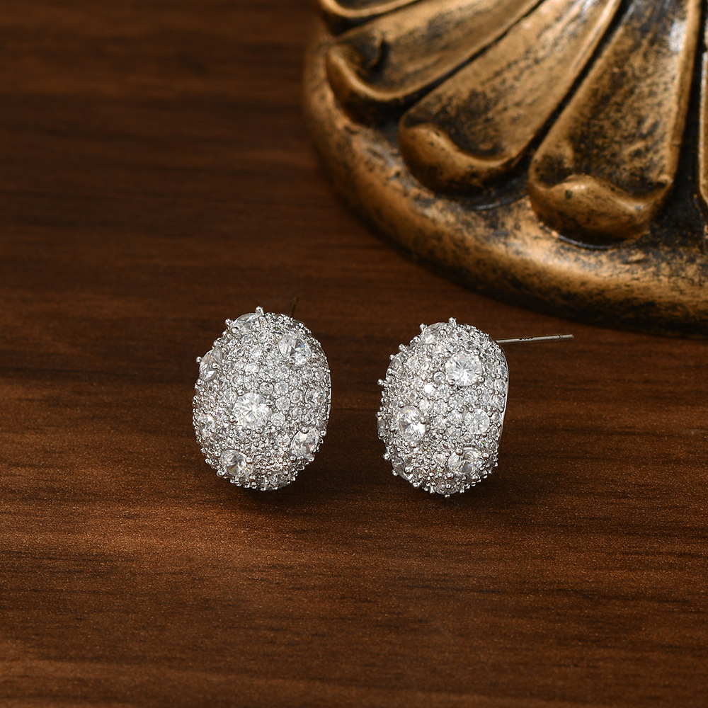 韩国时尚设计感S925银针锆石小元宝耳钉女小众设计感椭圆耳饰耳坠