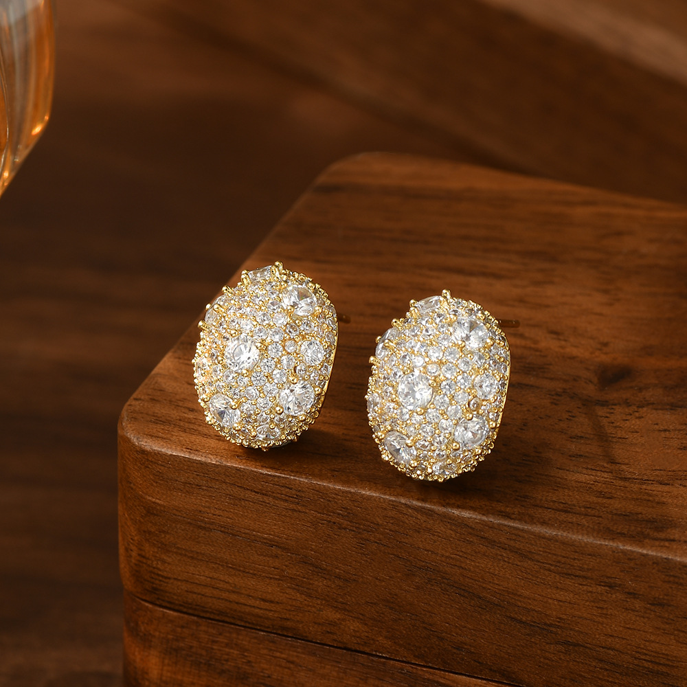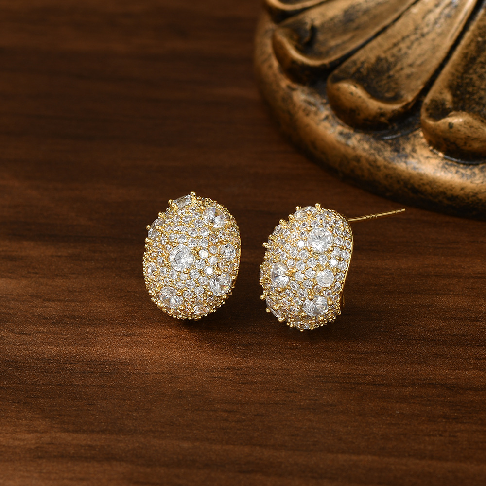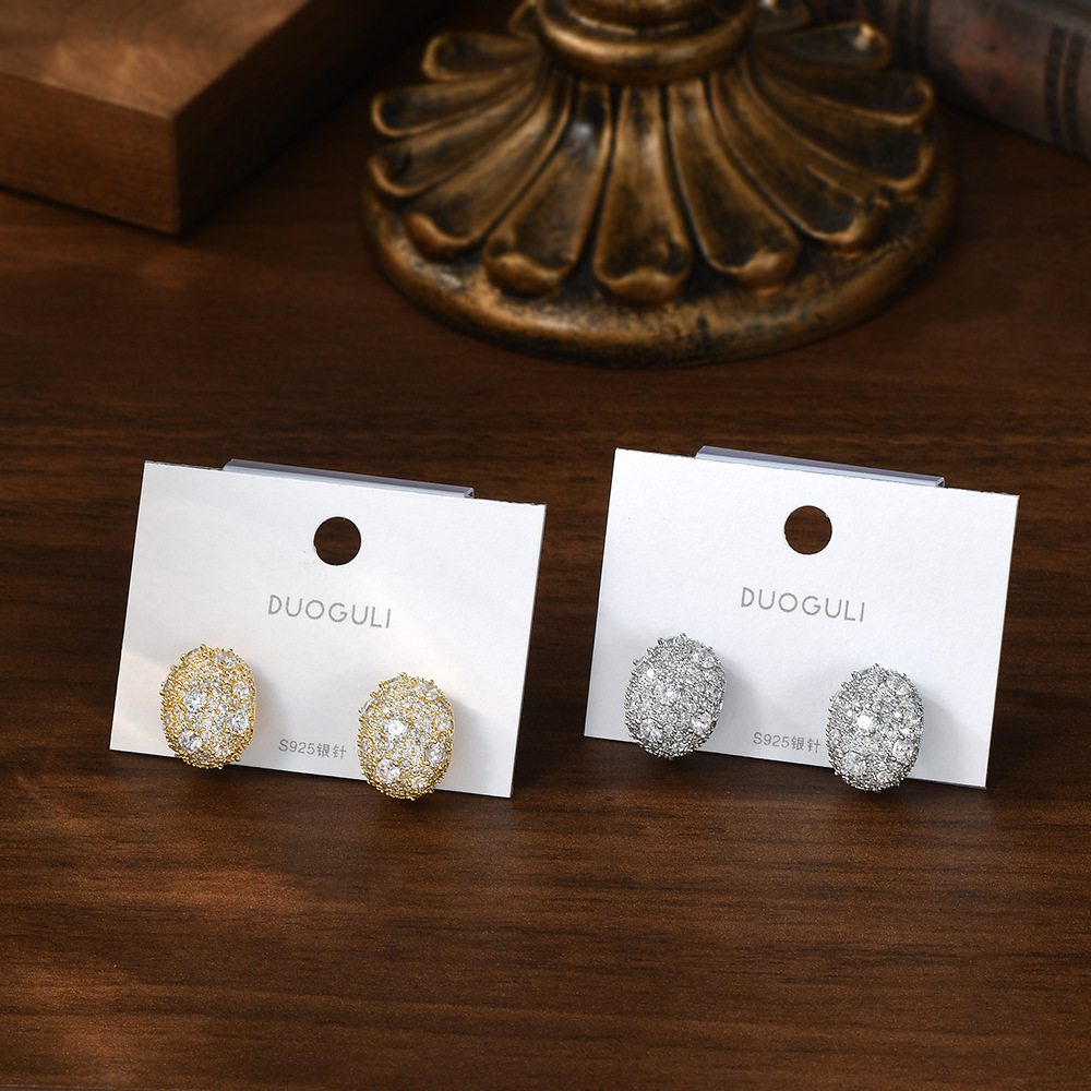 韩国时尚设计感S925银针锆石小元宝耳钉女小众设计感椭圆耳饰耳坠 English | 投诉