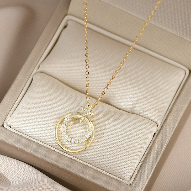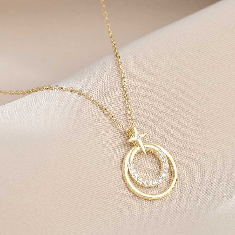 真金电镀微镶锆石气质锁骨链女小众设计感几何圆形四芒星项链批发 English | 投诉