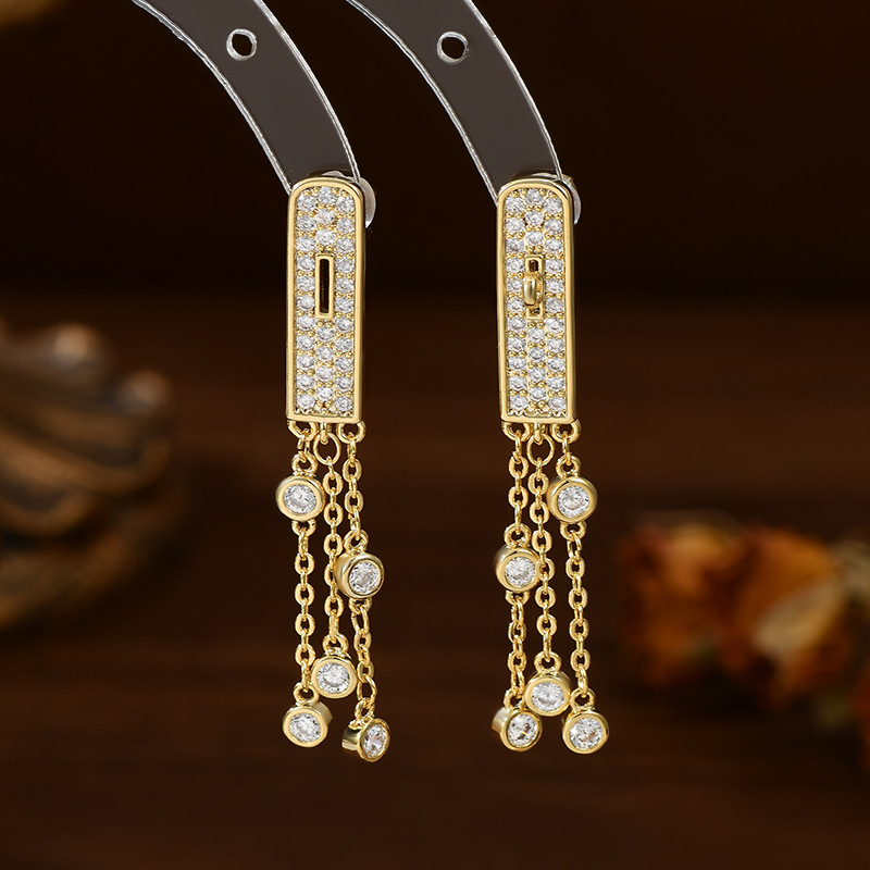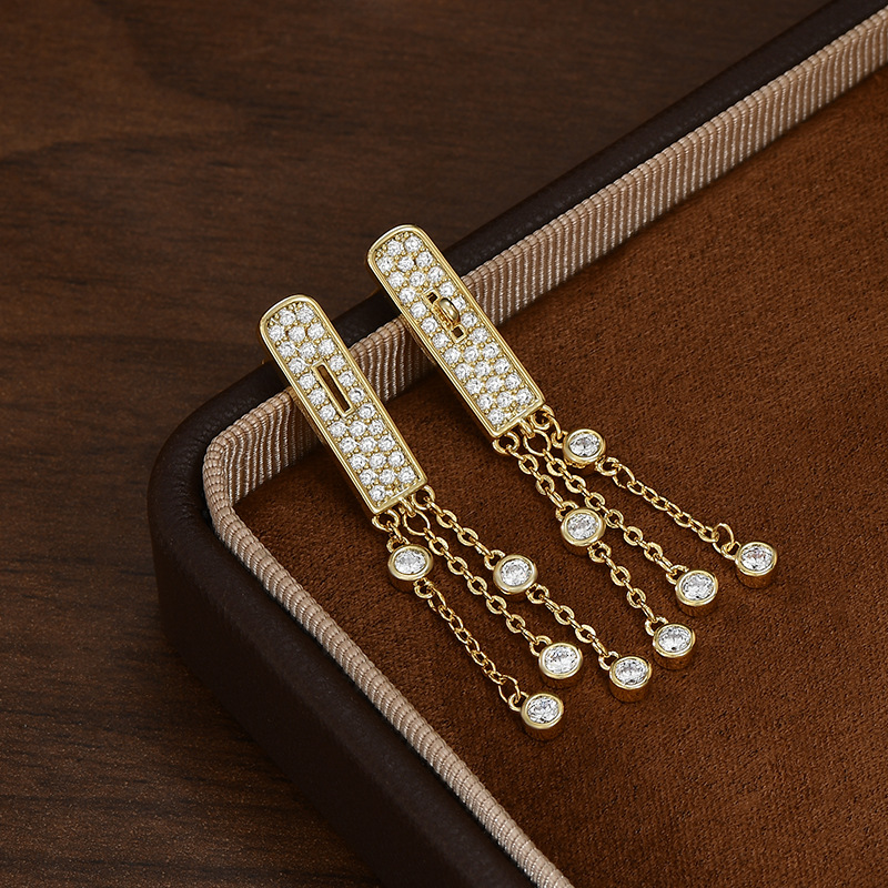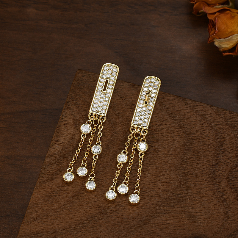 S925银针韩国时尚设计感几何耳环女网红轻奢风流苏耳钉显脸瘦耳饰 English | 投诉
