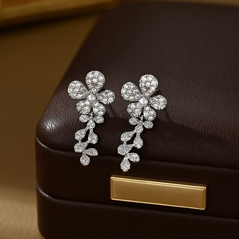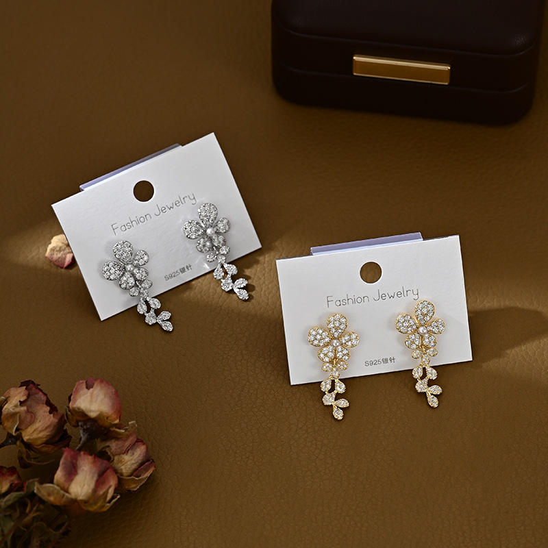 S925银针韩版时尚个性小雏菊耳钉女高级感锆石花瓣耳饰品流苏耳环 English | 投诉