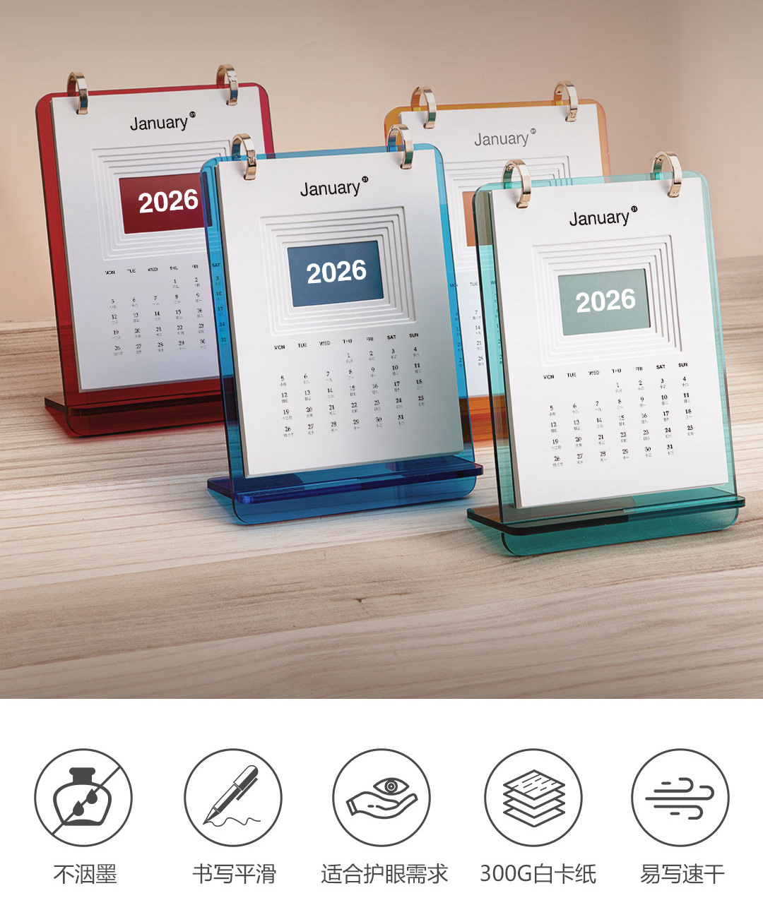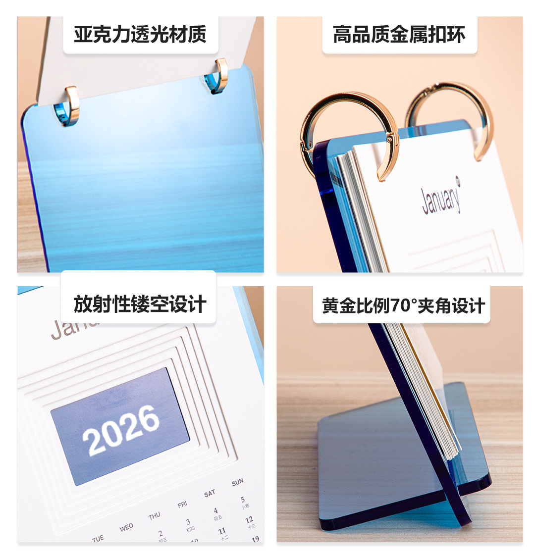 新款简约ins风2026年亚克力台历日历办公桌面摆件可定logo高颜值 投诉