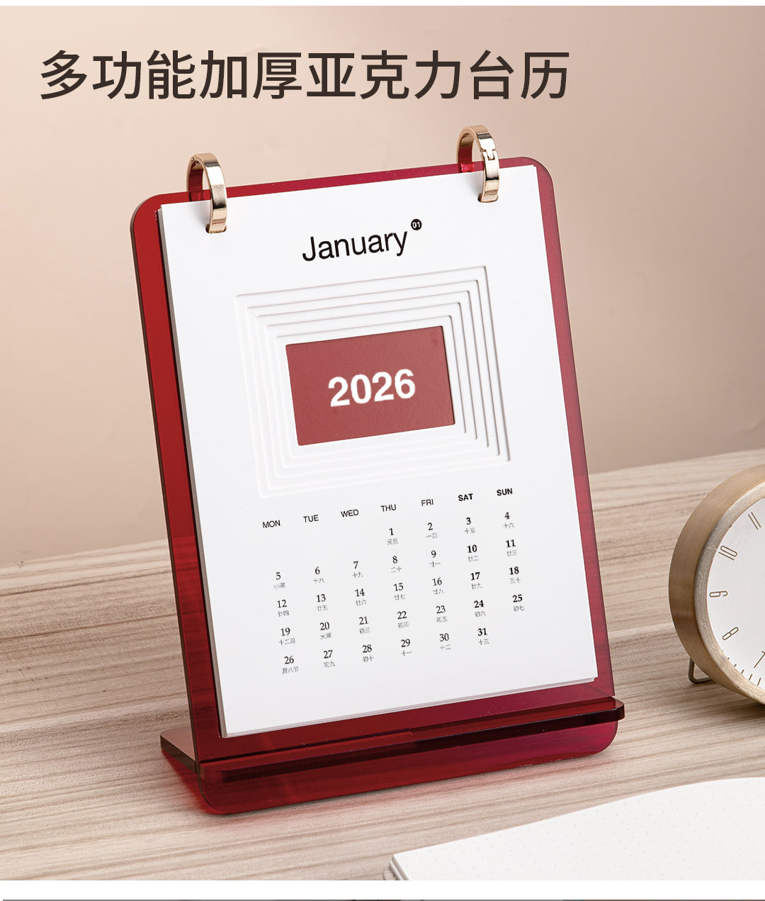 新款简约ins风2026年亚克力台历日历办公桌面摆件可定logo高颜值