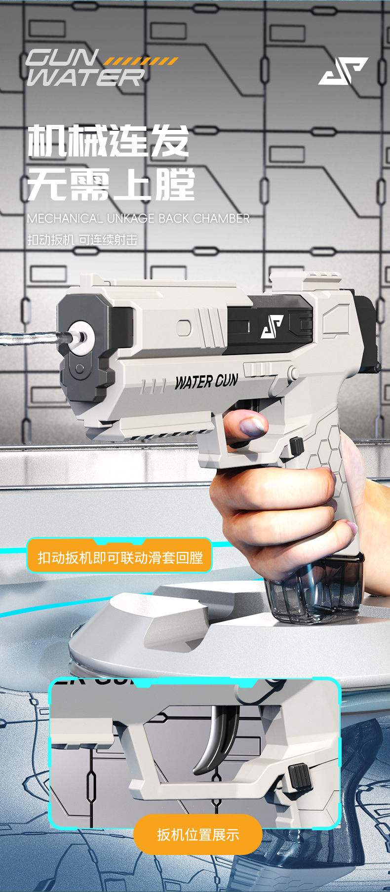 儿童玩具水枪机械连发回膛手动壁虎弹夹水仓夏天戏水水枪跨境专供
