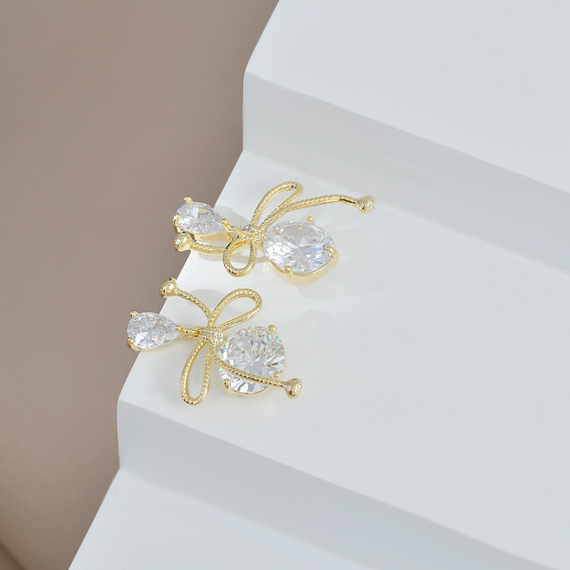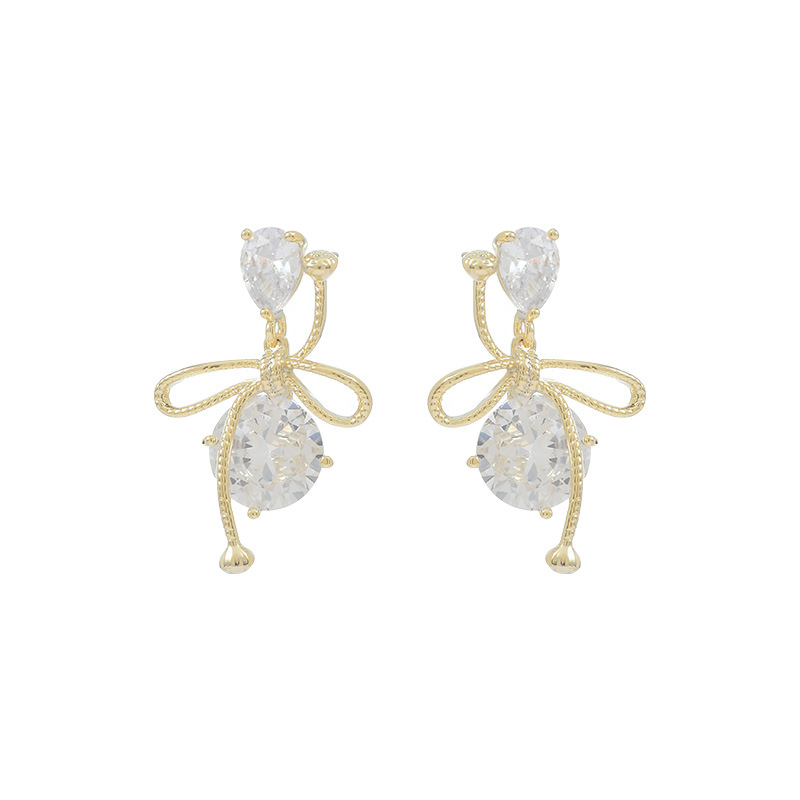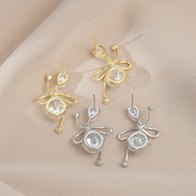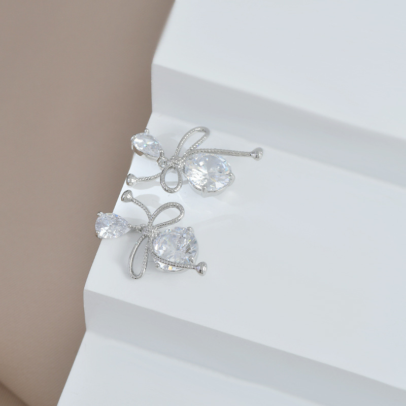 跨境货源镶锆石气质耳钉女S925银针高级感蝴蝶结耳饰个性夸张耳环 English | 投诉