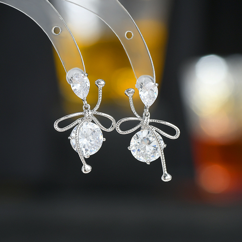 跨境货源镶锆石气质耳钉女S925银针高级感蝴蝶结耳饰个性夸张耳环