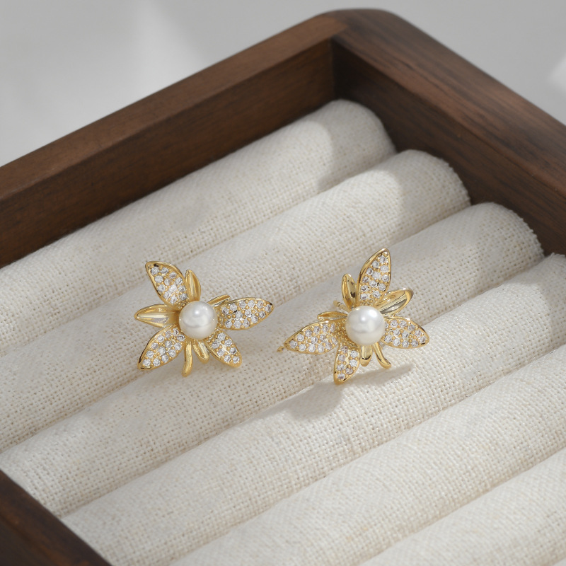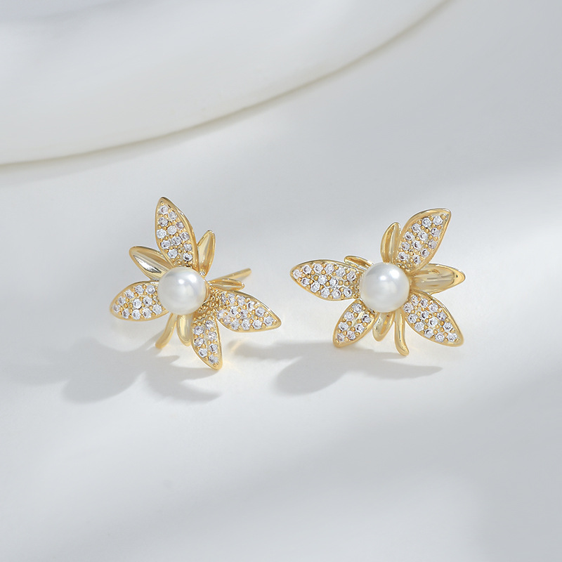 S925银针抖音同款小众设计感珍珠枫叶耳环女气质网红名媛耳钉耳饰 English | 投诉