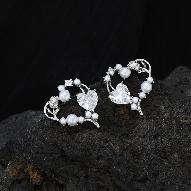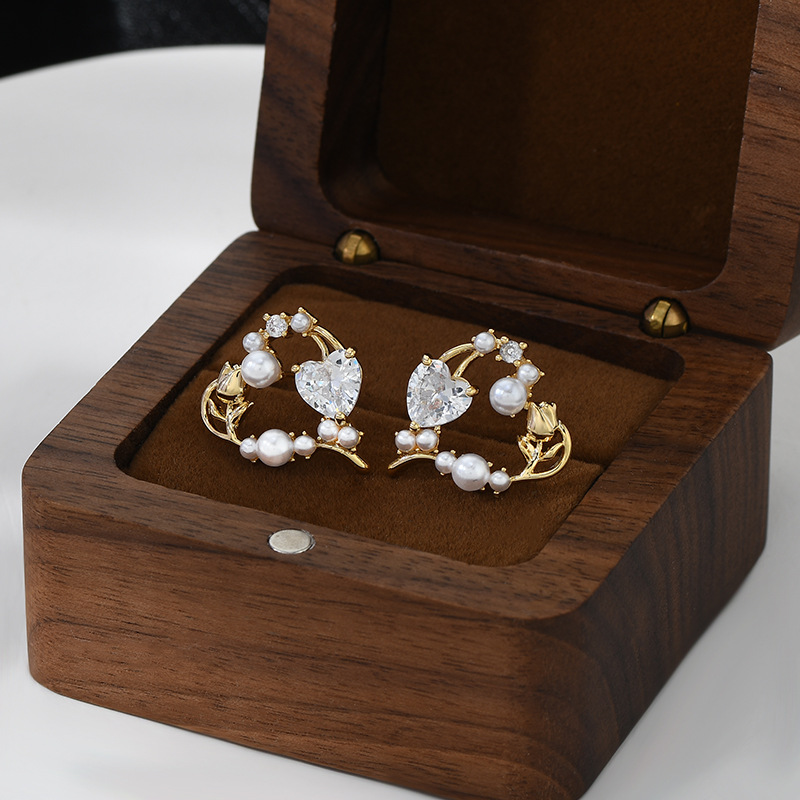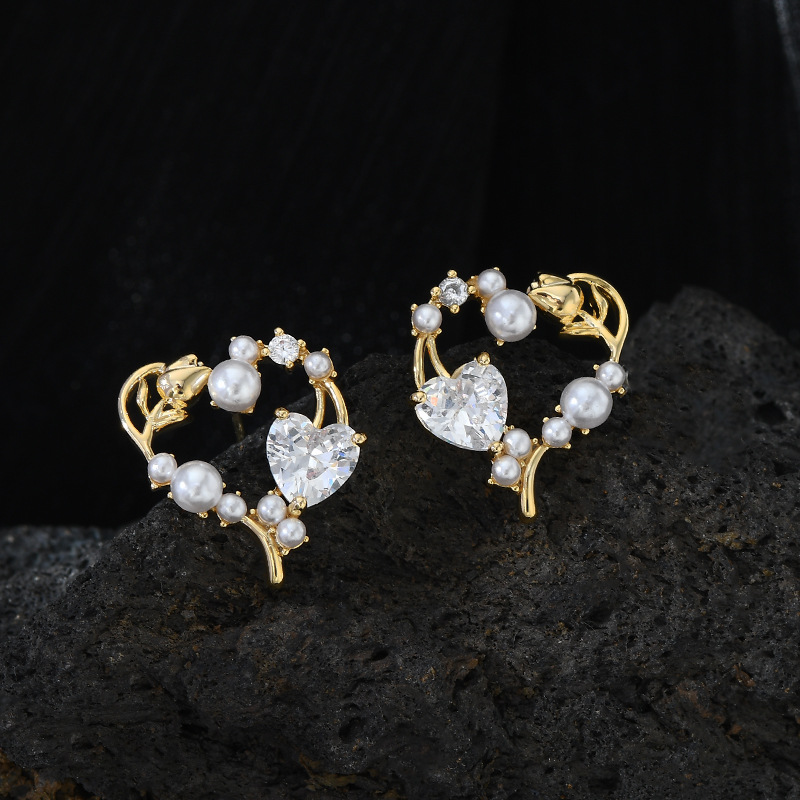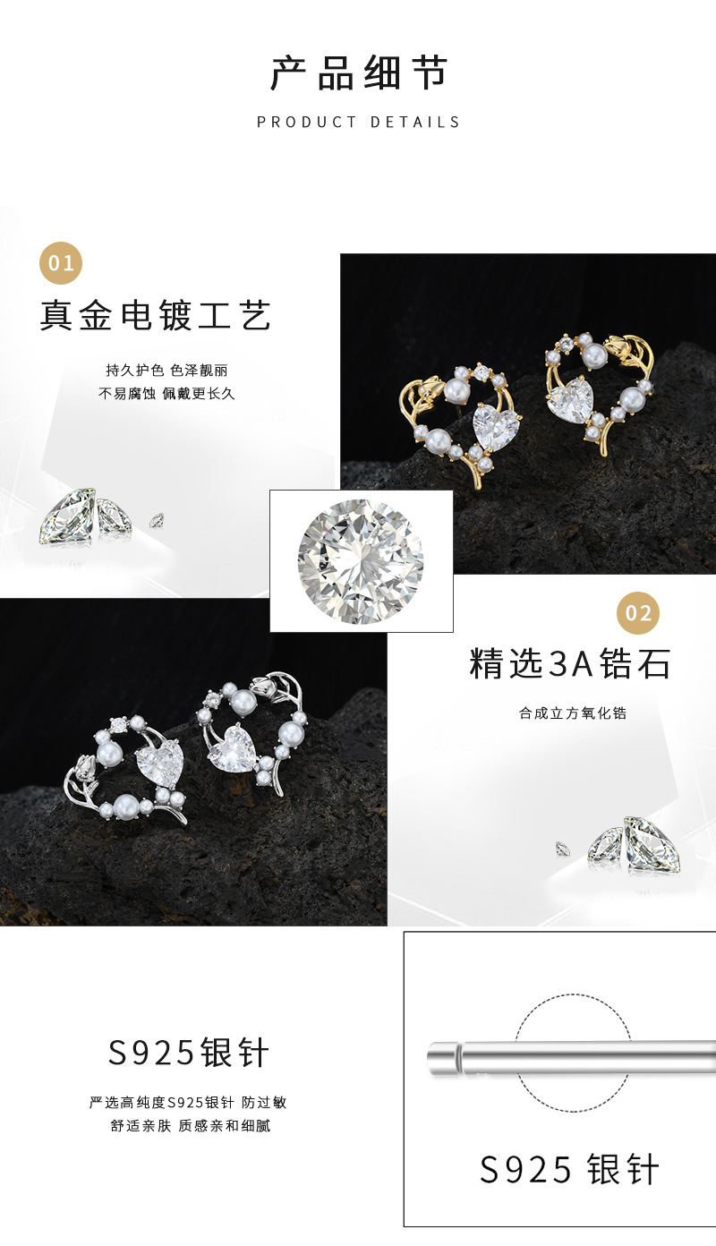 秋冬新款镶锆石气质耳钉女S925银针高级感玫瑰花耳饰百搭珍珠耳环 English | 投诉
