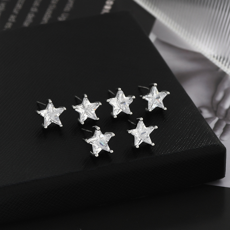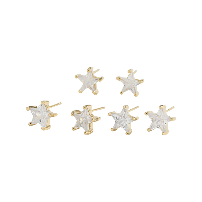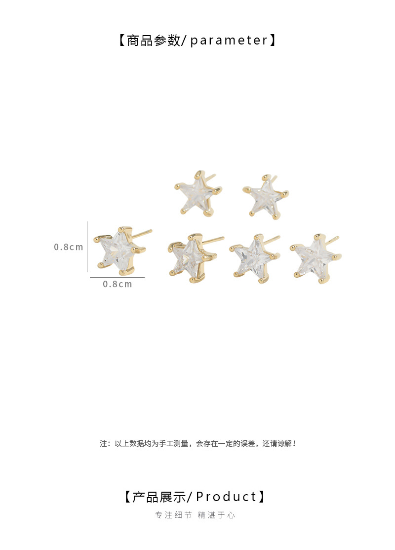 S925银针一卡三对套装耳钉女睡觉不用摘五角星耳饰品精致学生耳坠 English | 投诉