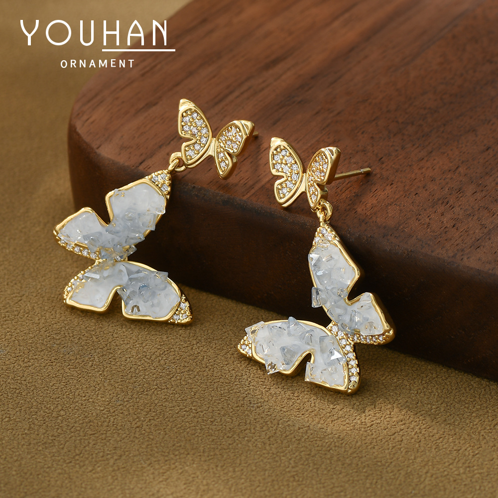 抖音直播热卖S925银针高级感水晶蝴蝶耳钉女精致轻奢网红耳环耳饰 English | 投诉