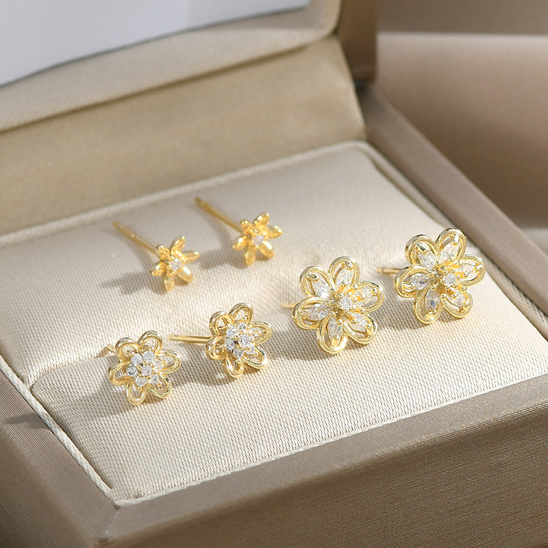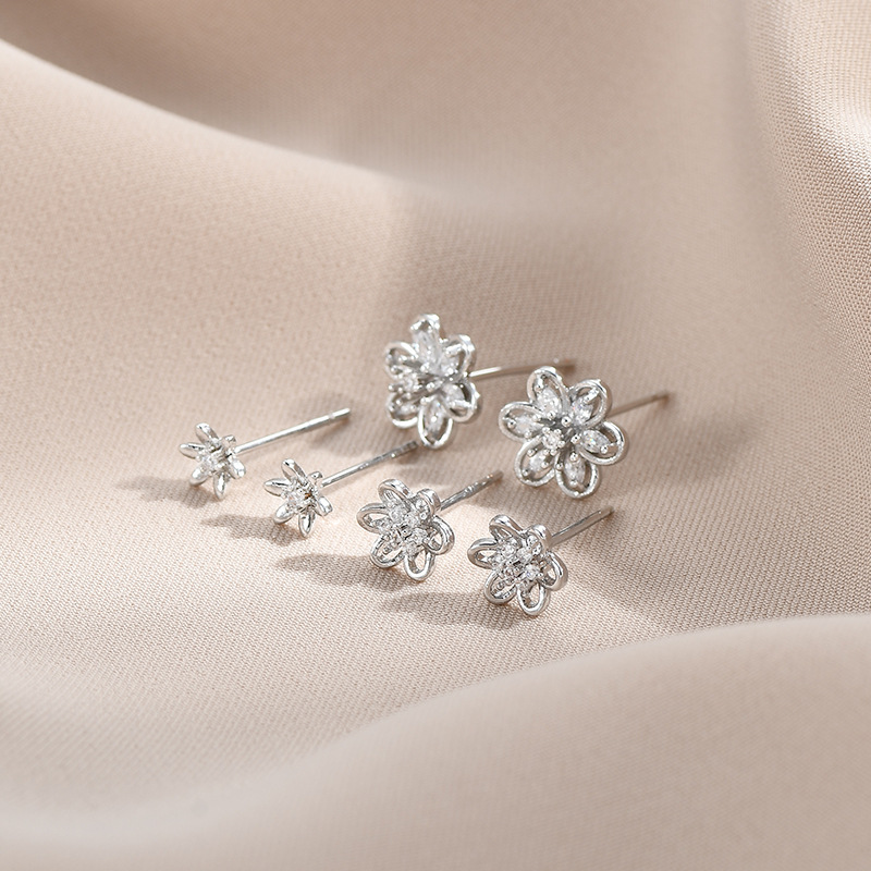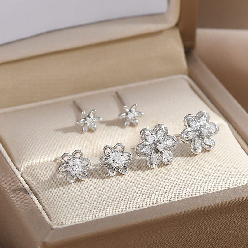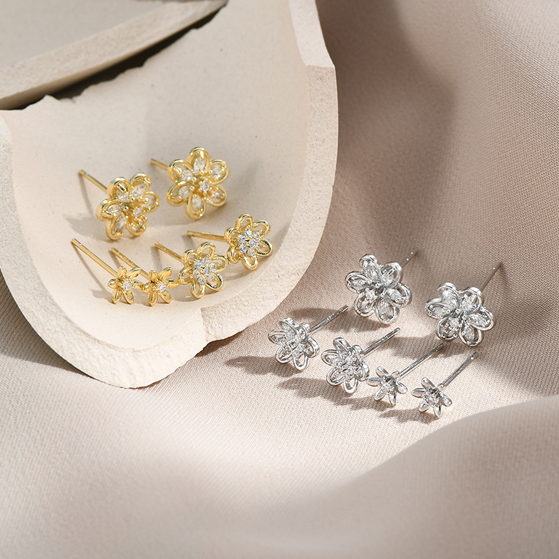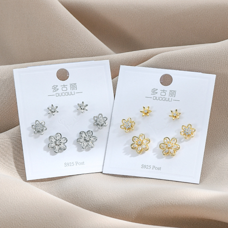 s925银针微镶锆石花瓣三件套耳钉小巧个性一卡三对组合耳环耳饰女 English | 投诉