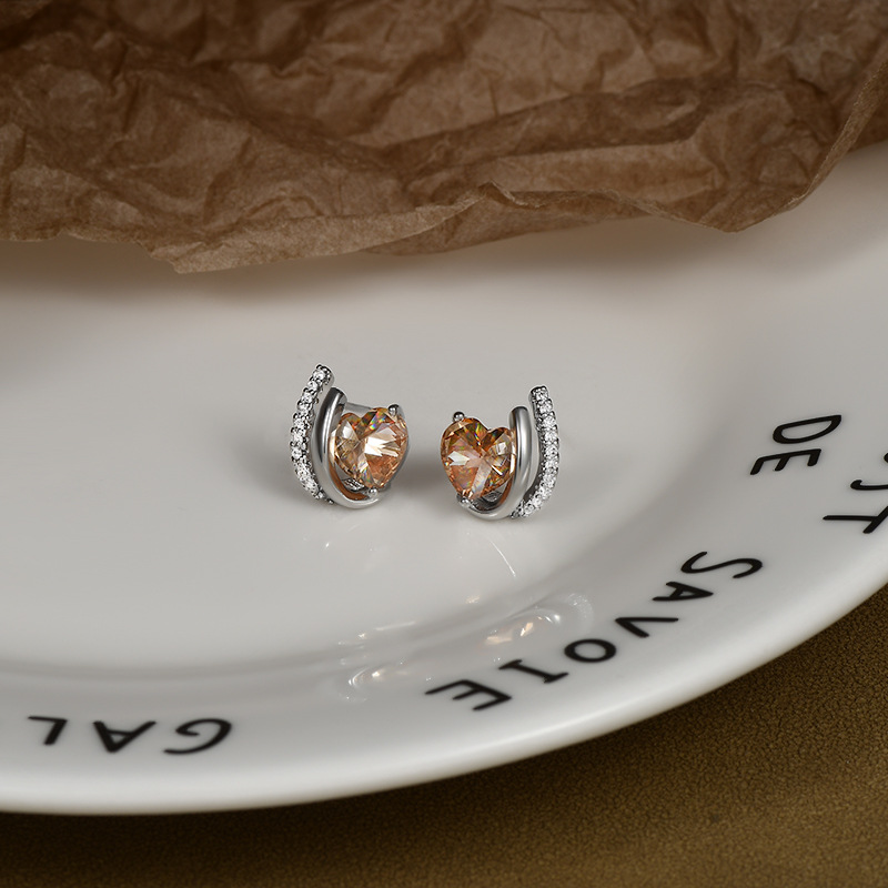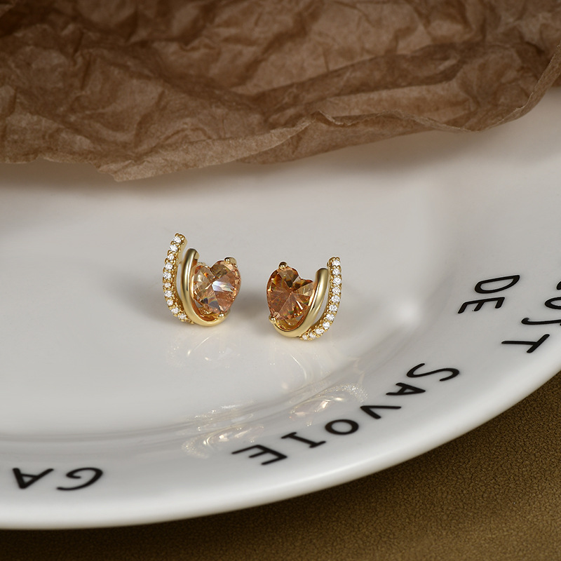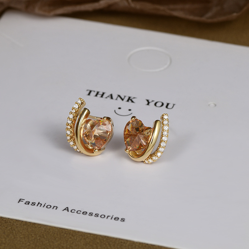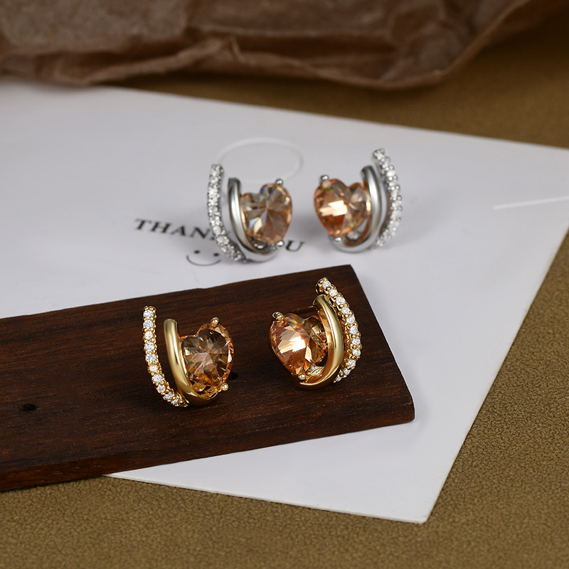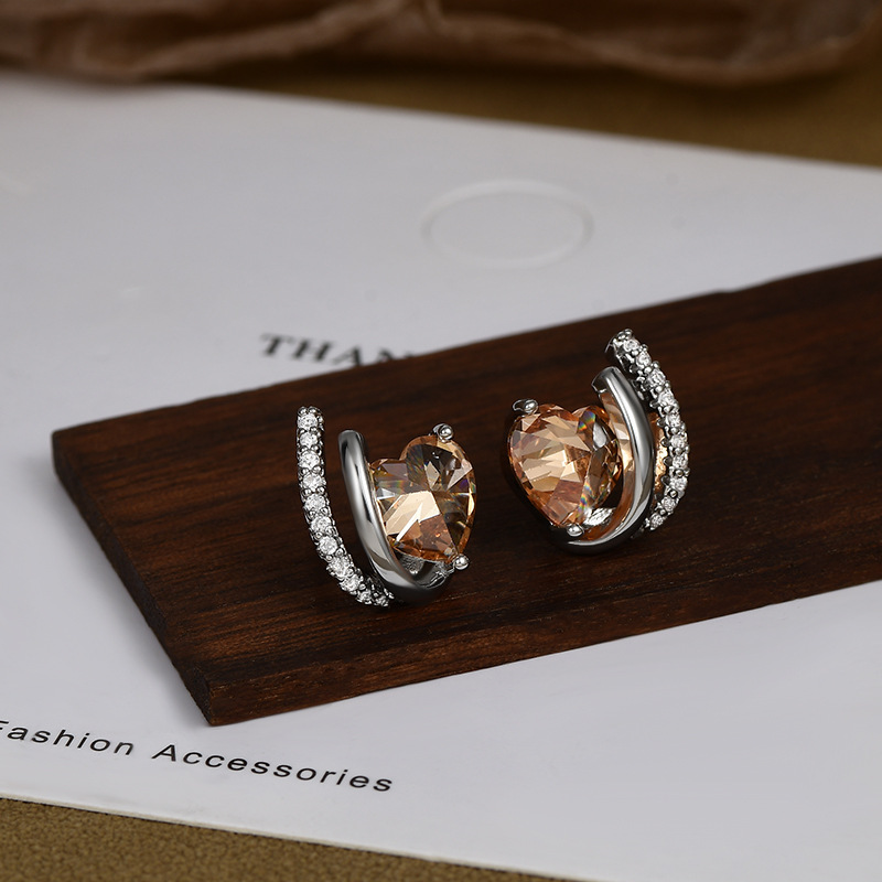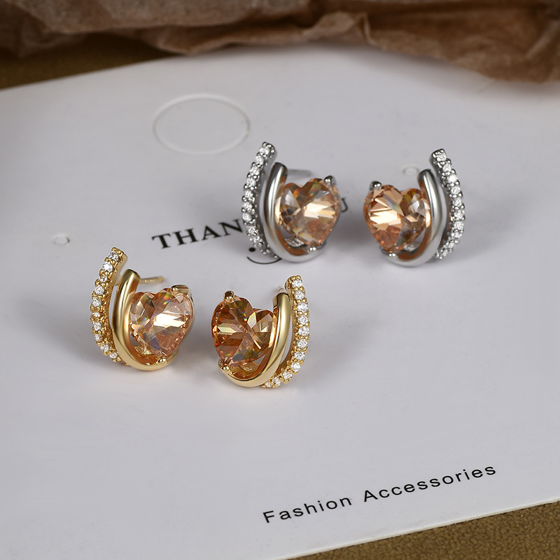 S925银针高级感气质几何爱心锆石耳钉女韩式复古简约时尚个性耳环 English | 投诉