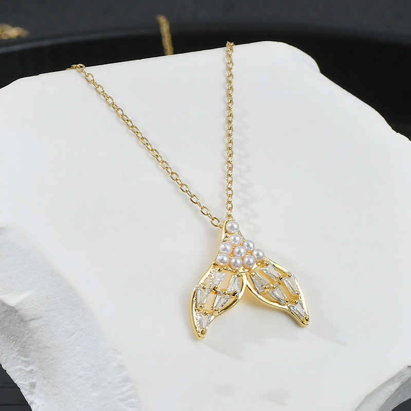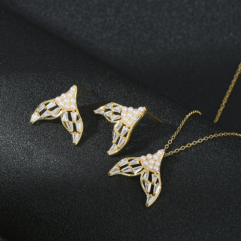 2023年新款潮珍珠鱼尾锁骨链戒指耳钉套装小众设计高级感轻奢饰品 English | 投诉