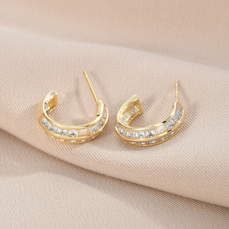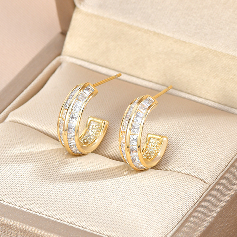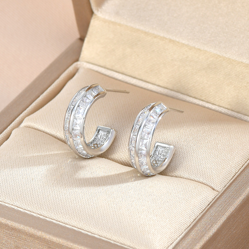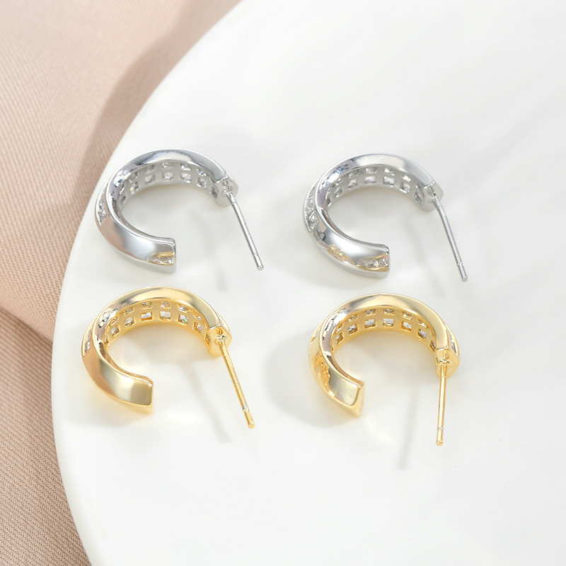 S925银针韩版时尚气质耳钉女小众设计感几何C形耳饰个性时尚耳坠 English | 投诉