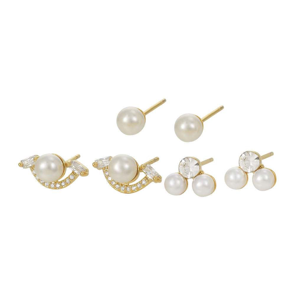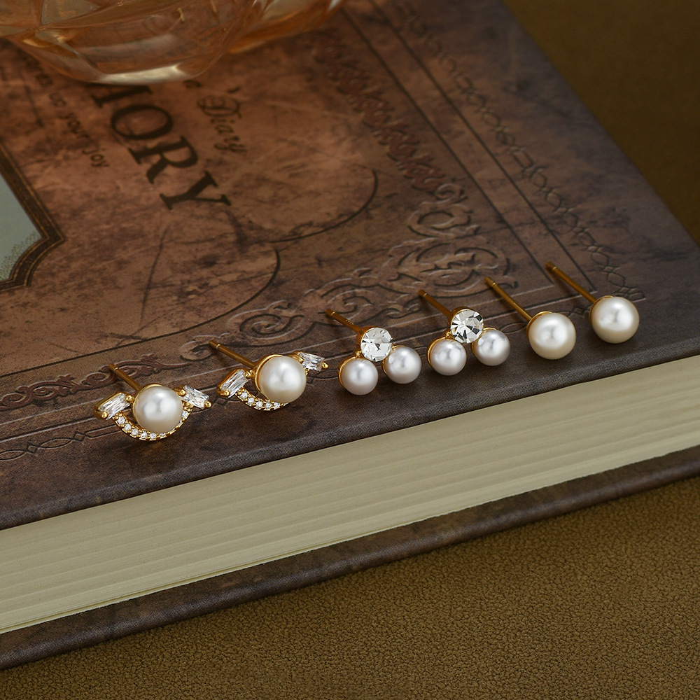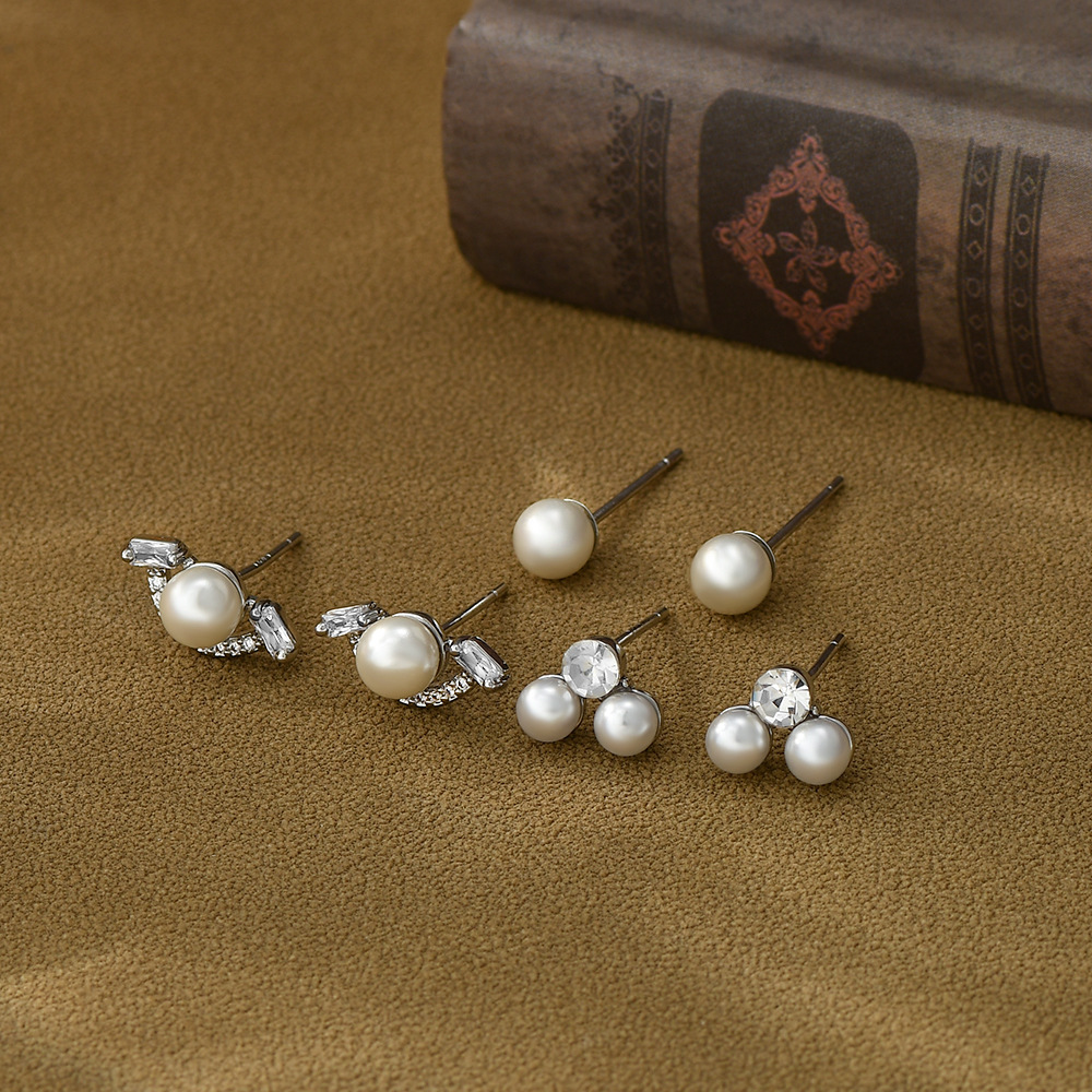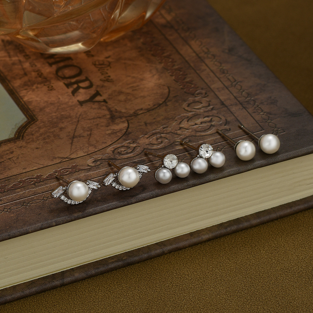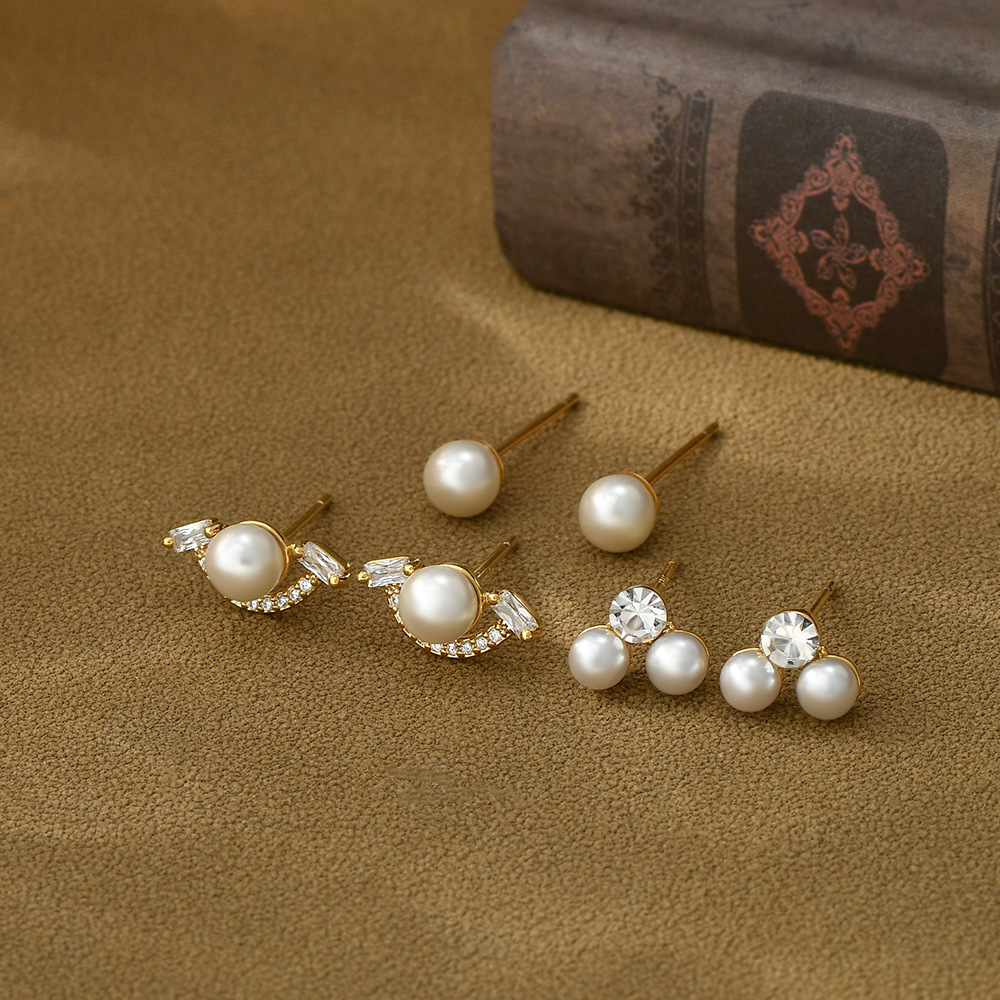 S925银针一卡三对套装耳钉女养耳复古法式珍珠耳环ins风学生耳坠 English | 投诉