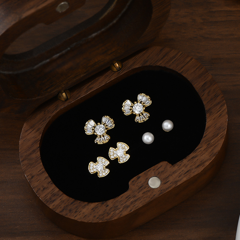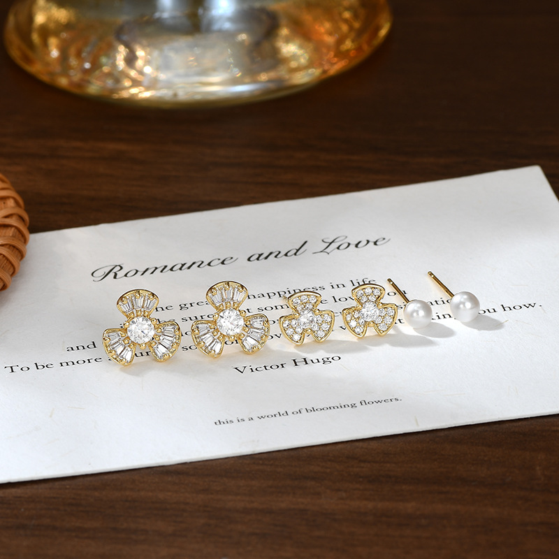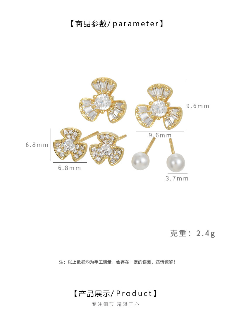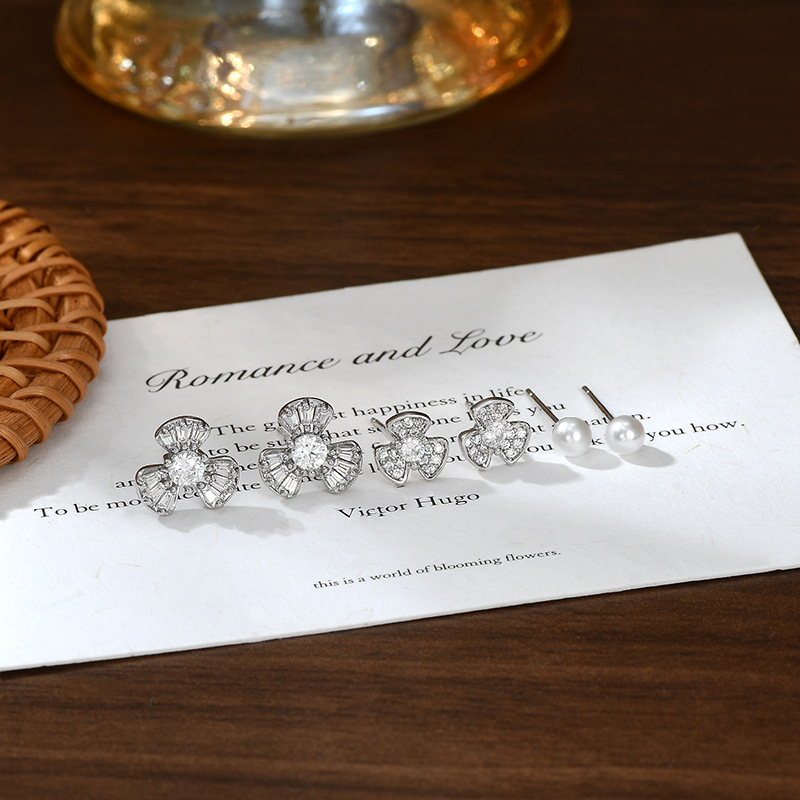 S925银针一卡三对套装耳钉女精致珍珠花瓣耳饰品简约百搭学生耳坠 English | 投诉