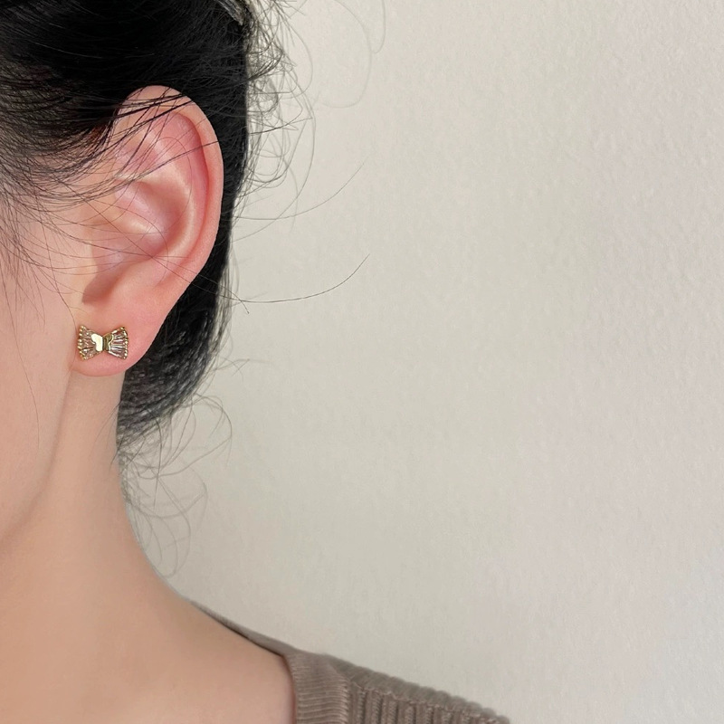 S925银针小巧蝴蝶结耳钉女小众设计感学生甜美蝴蝶耳饰简约耳坠 English | 投诉
