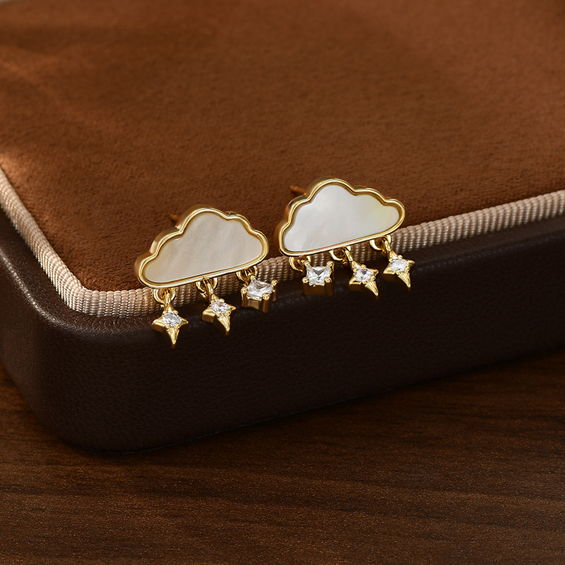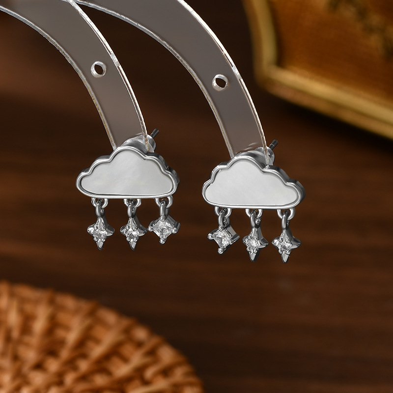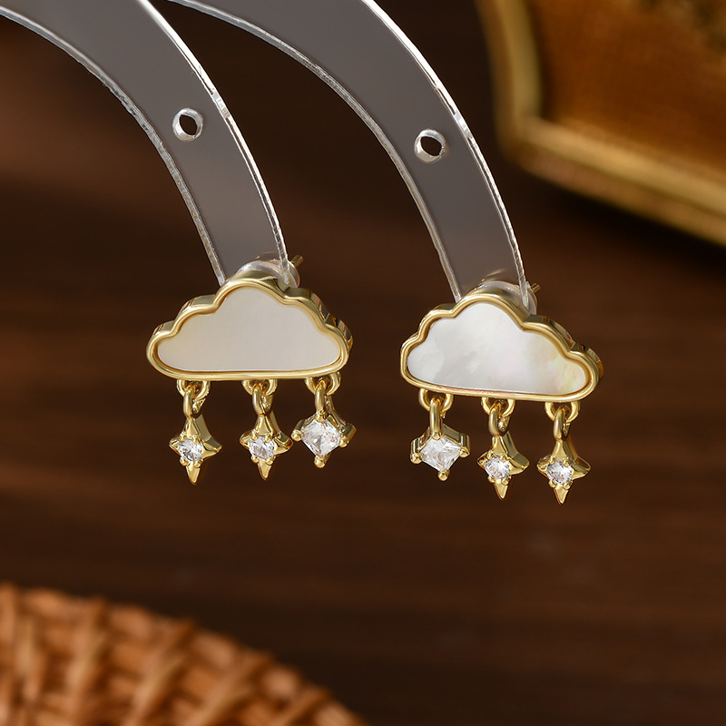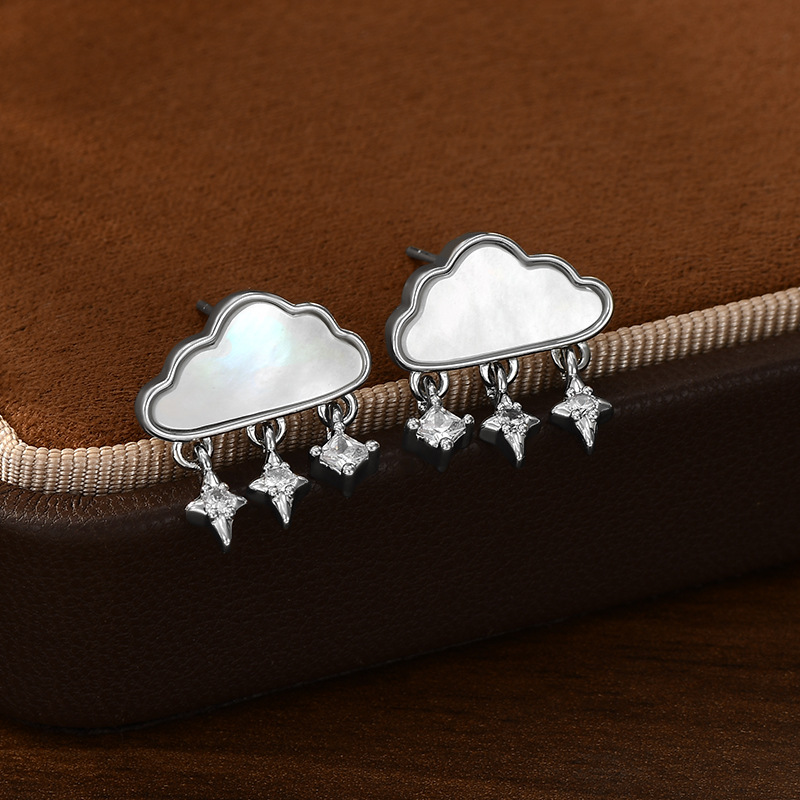 可爱甜美S925银针天然白贝母云朵耳钉女小清新流苏耳环百搭耳饰品 English | 投诉