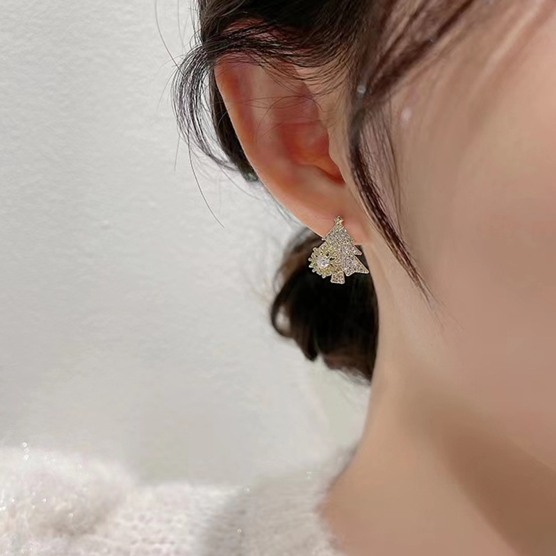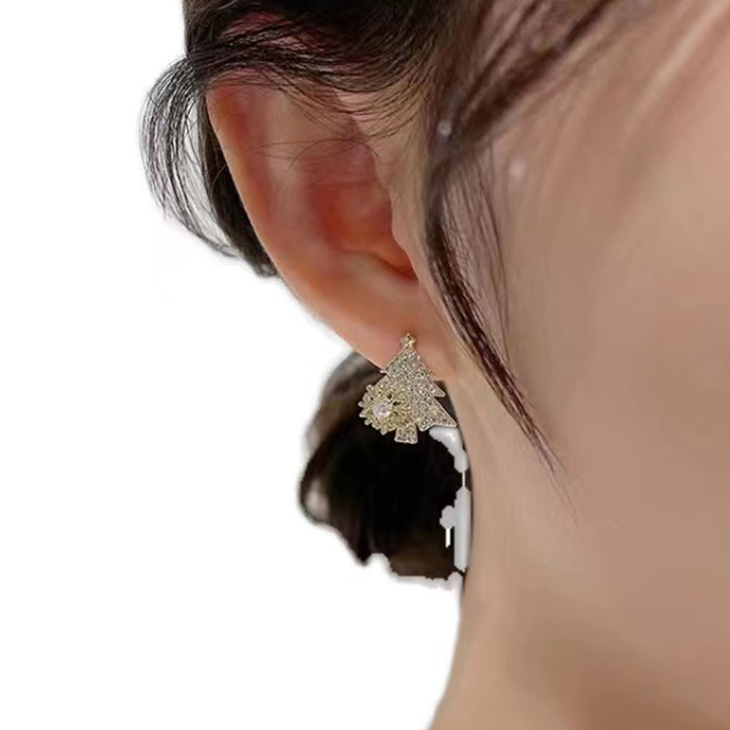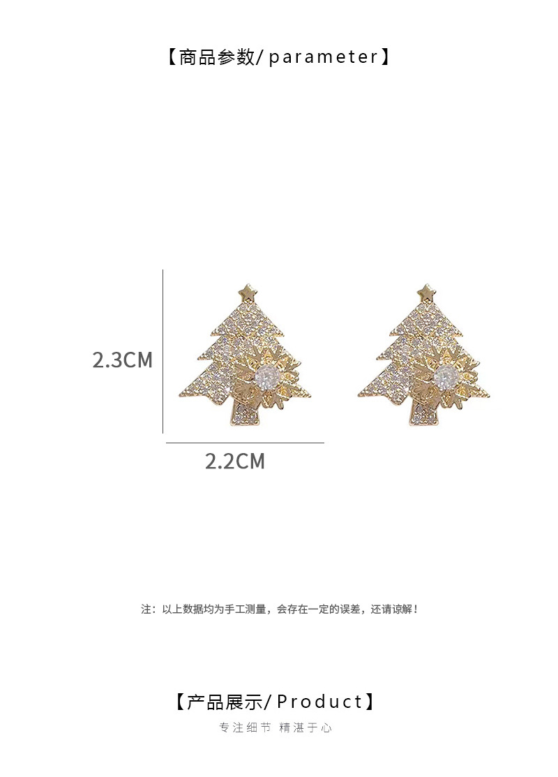 S925银针可旋转雪花锆石圣诞树耳环甜美少女心时尚耳钉圣诞耳饰品 English | 投诉