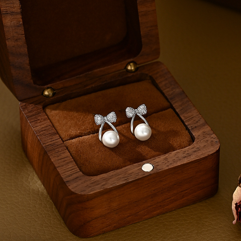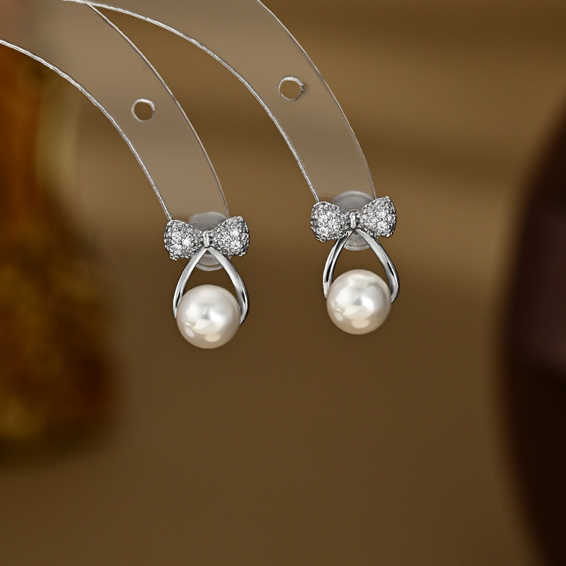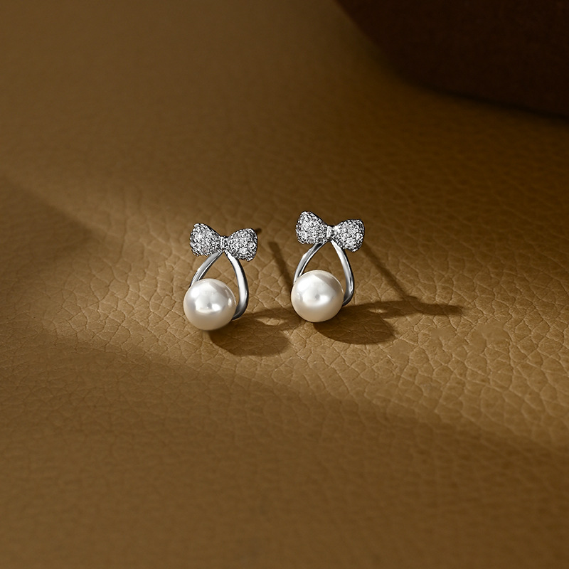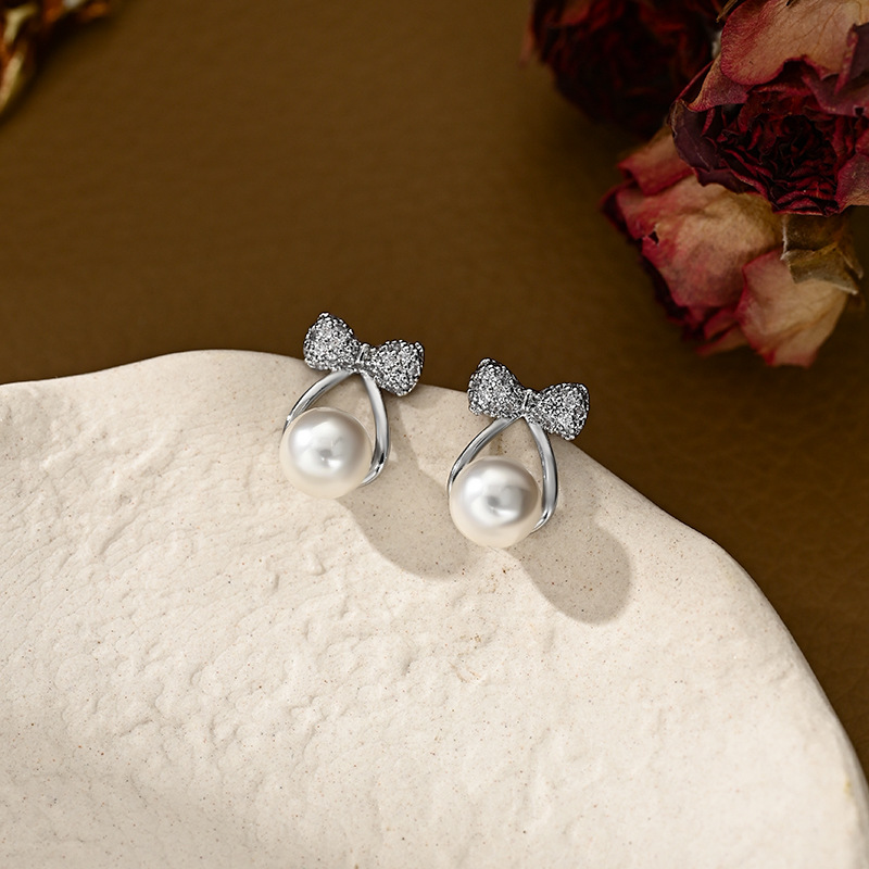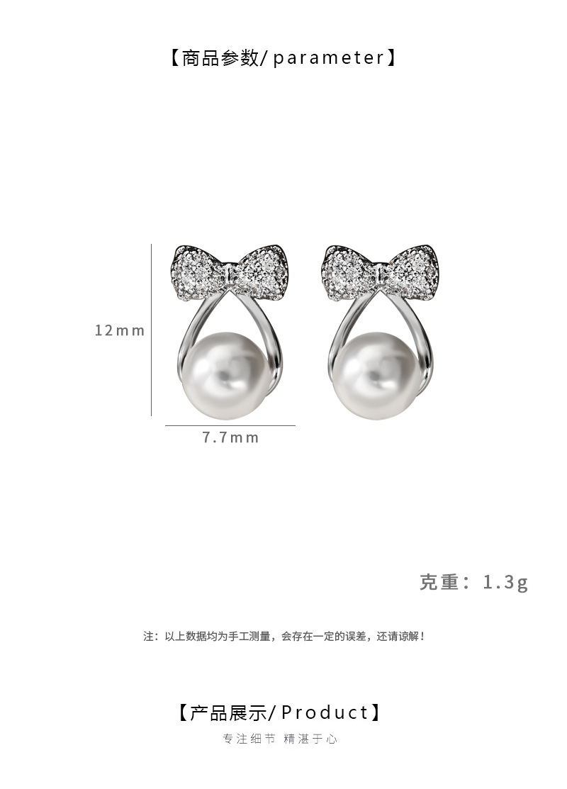 春夏新款S925银针韩国时尚设计感蝴蝶结耳钉精致通勤珍珠耳环耳饰 English | 投诉