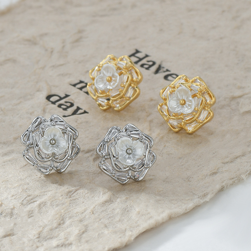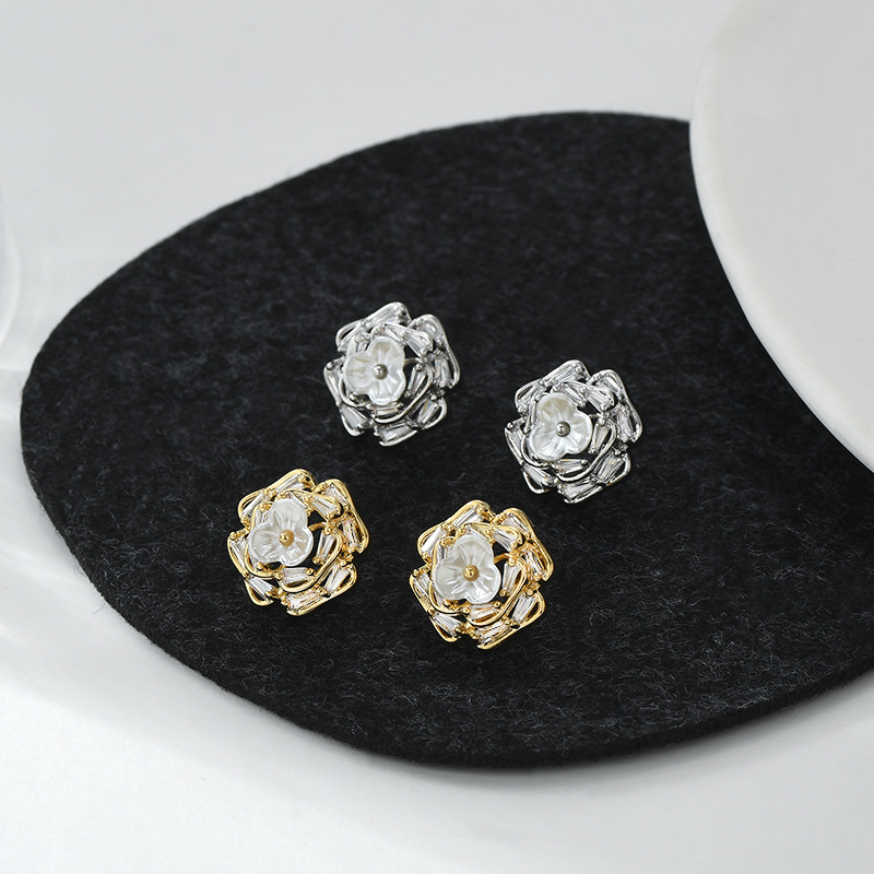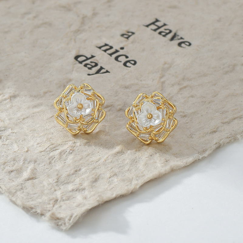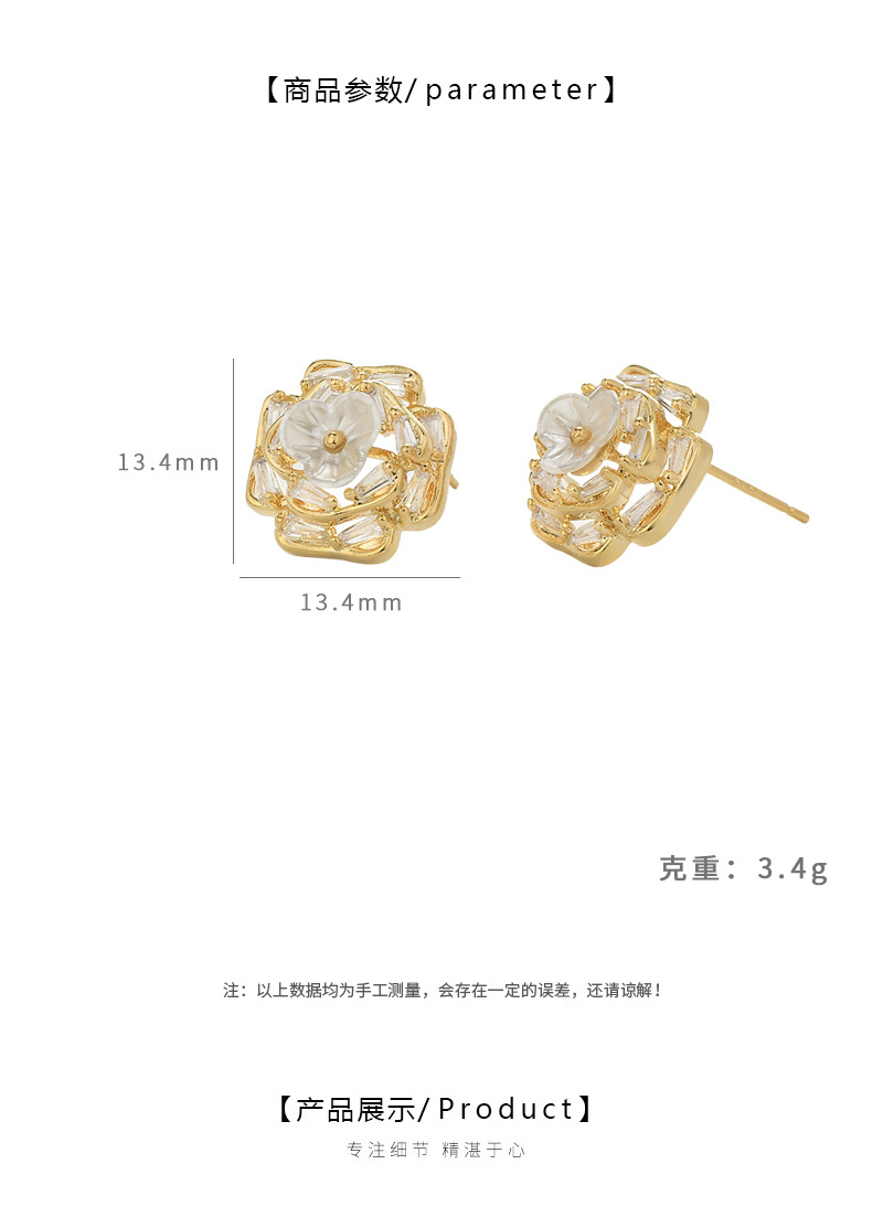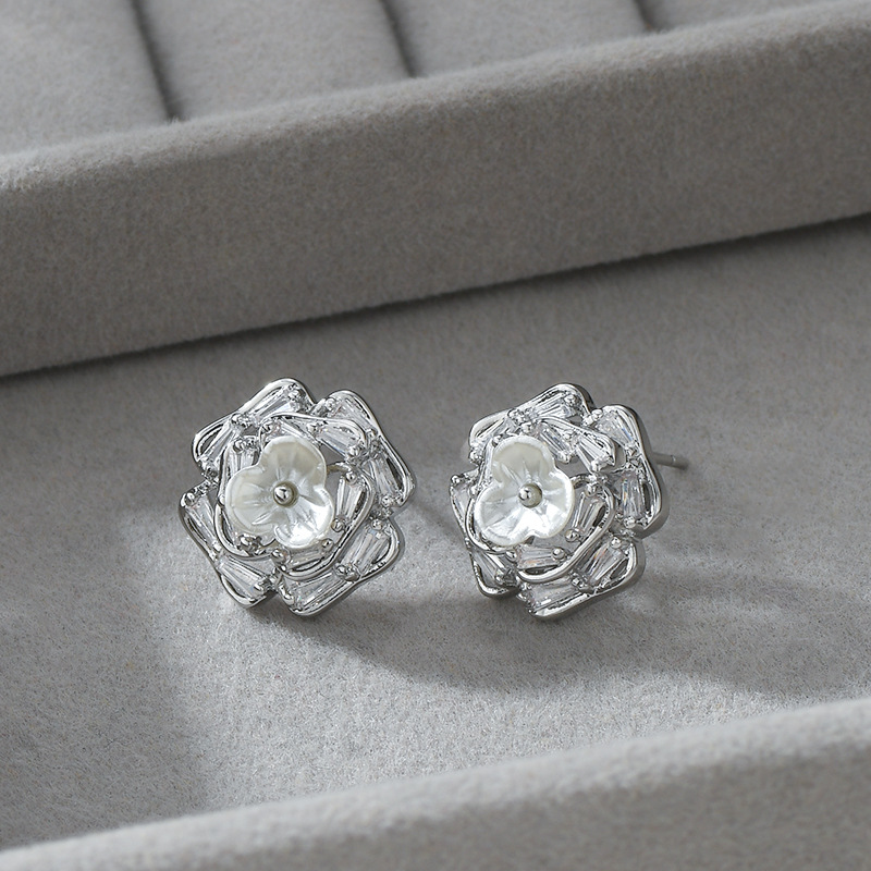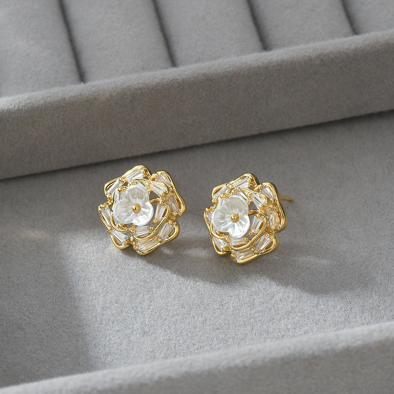春夏新款微镶锆石个性耳钉女S925银针高级感贝壳花瓣耳饰精致耳坠 English | 投诉