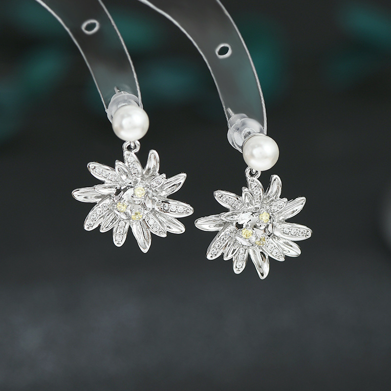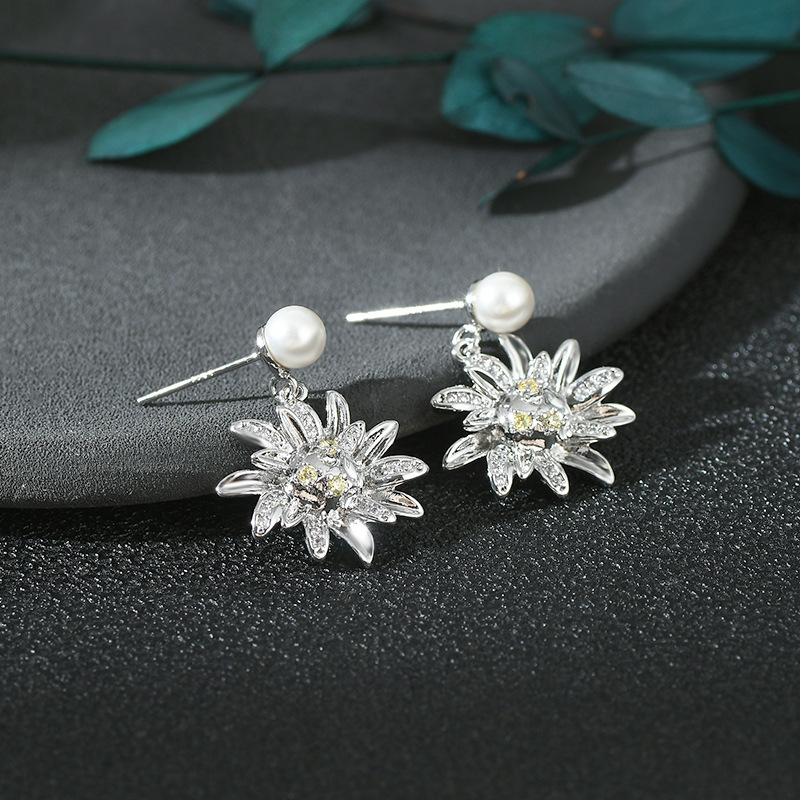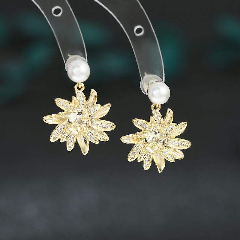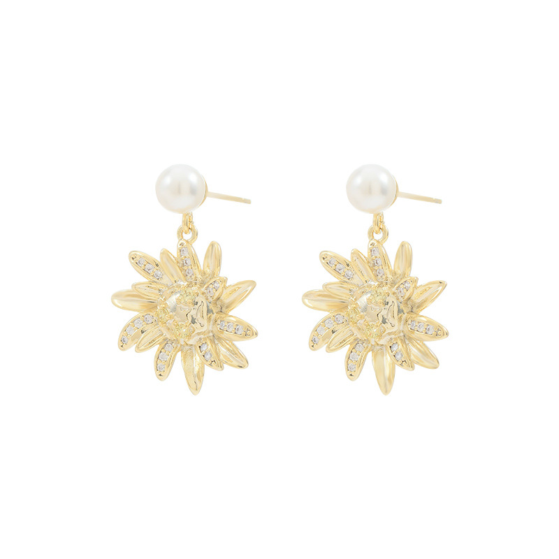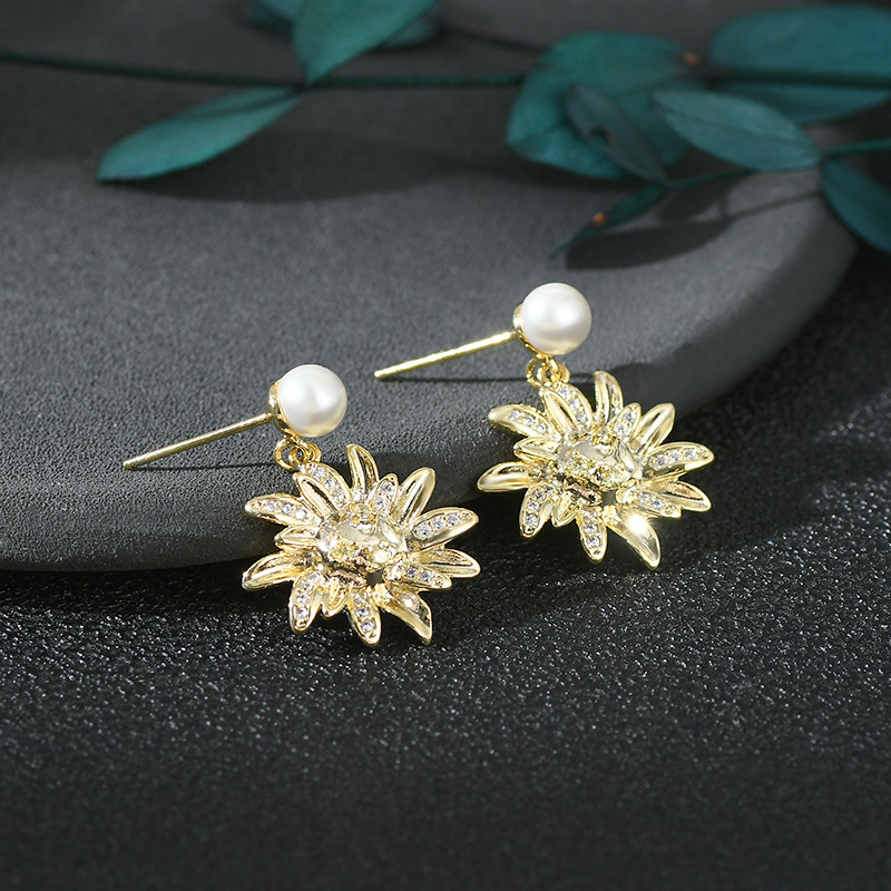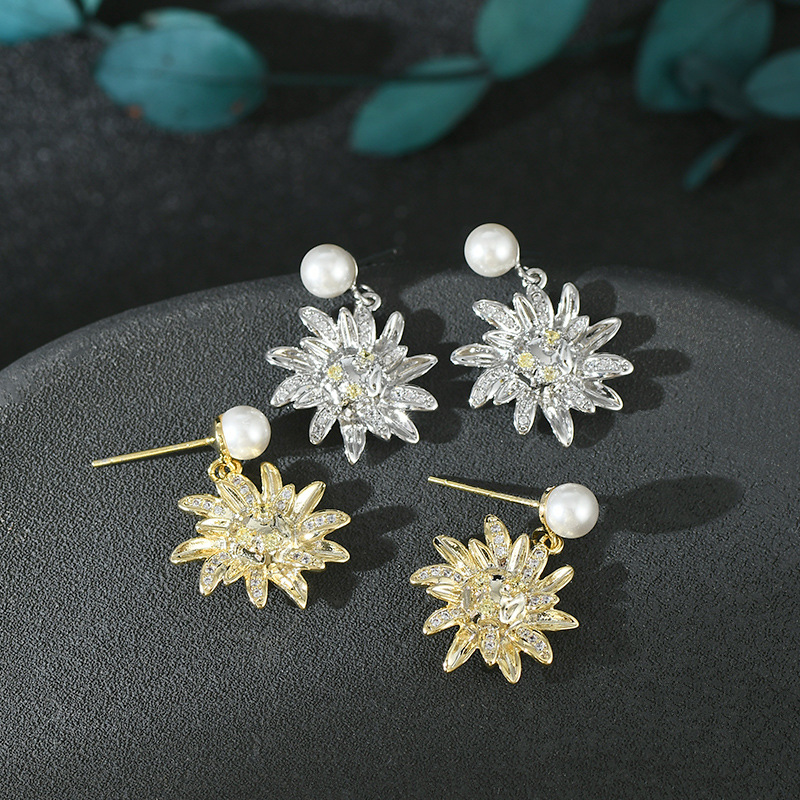 秋冬新款气质耳钉女S925银针高级感锆石太阳花瓣耳饰百搭珍珠耳环 English | 投诉