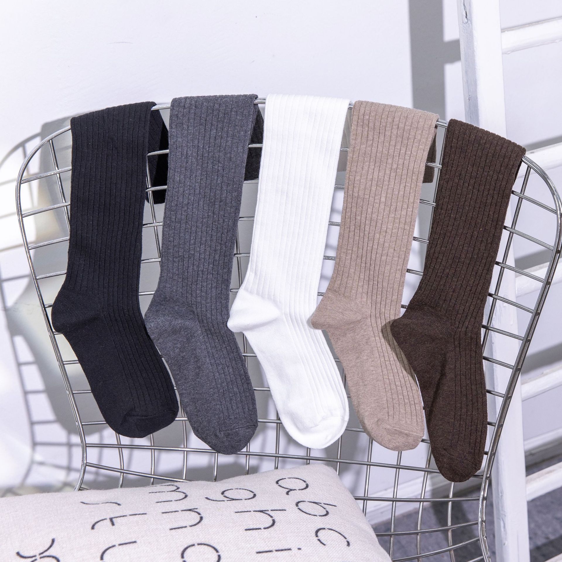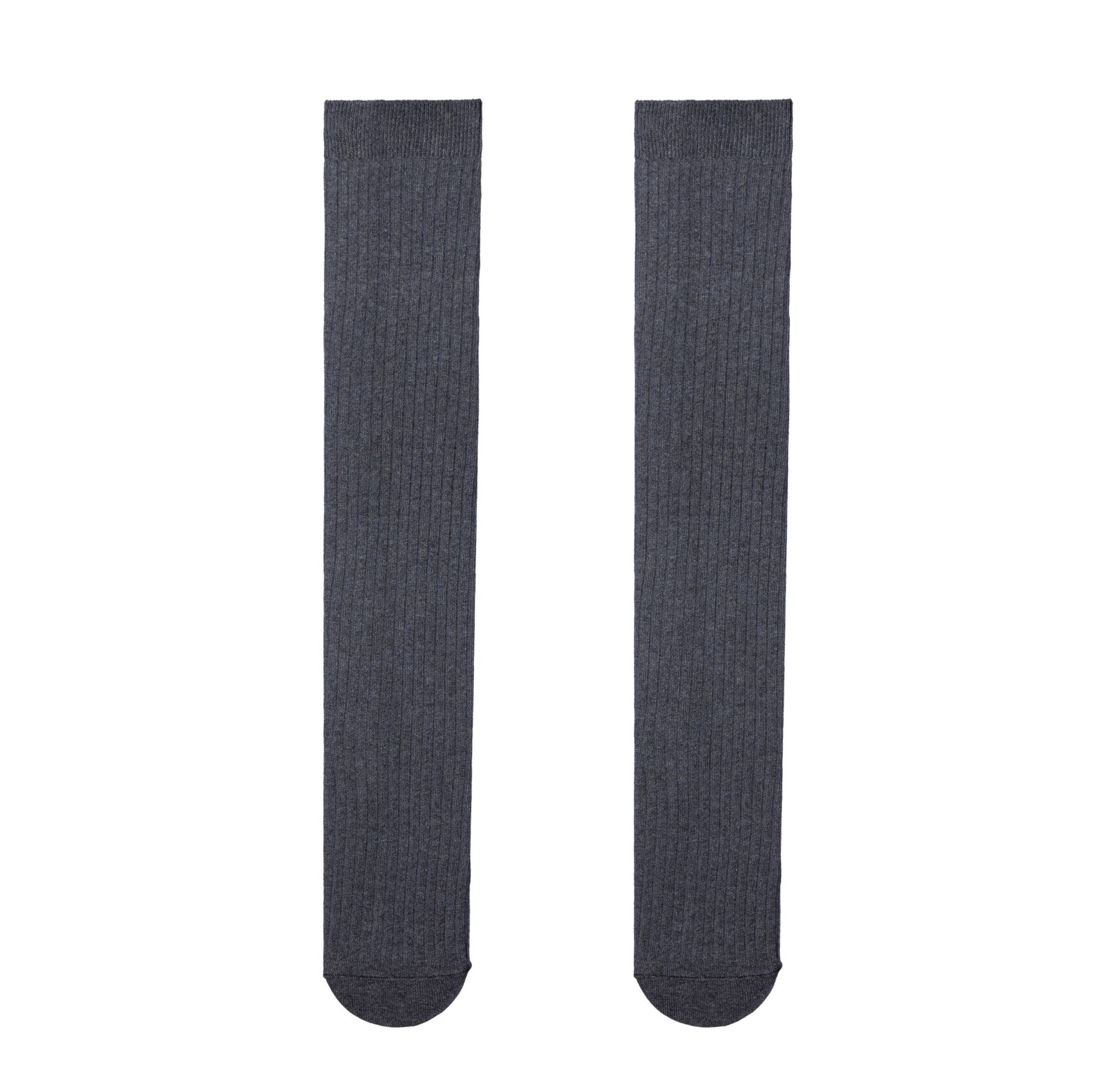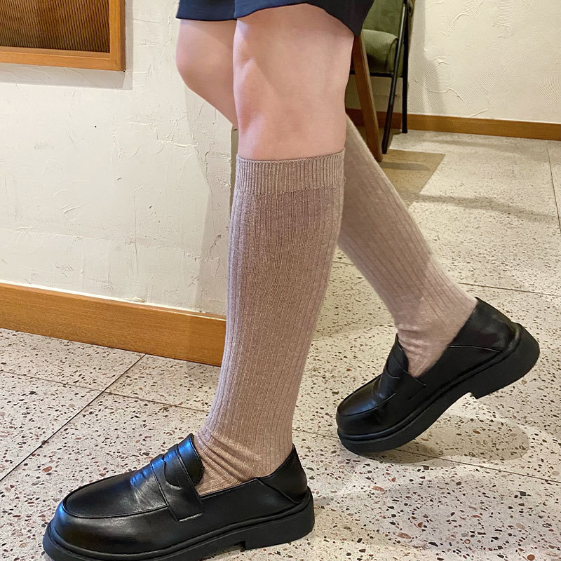 韩国纯色小腿袜子女ins长筒及膝双针黑白纯棉长袜子百搭潮袜批发