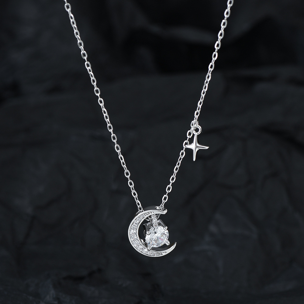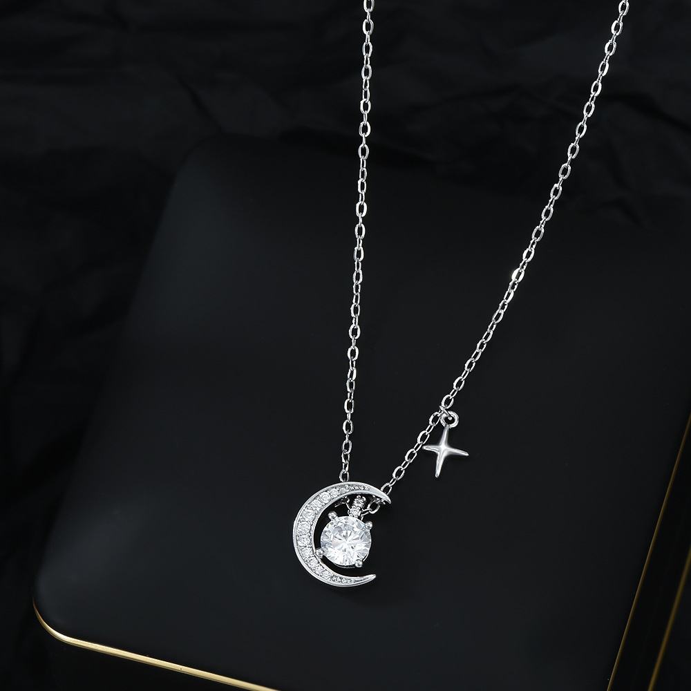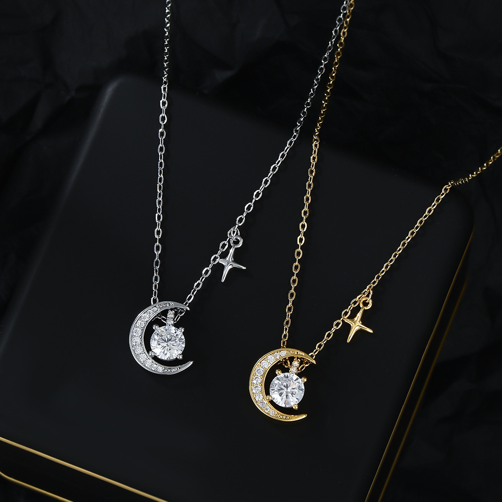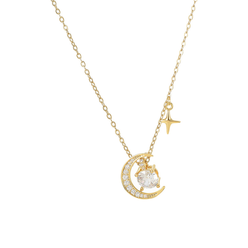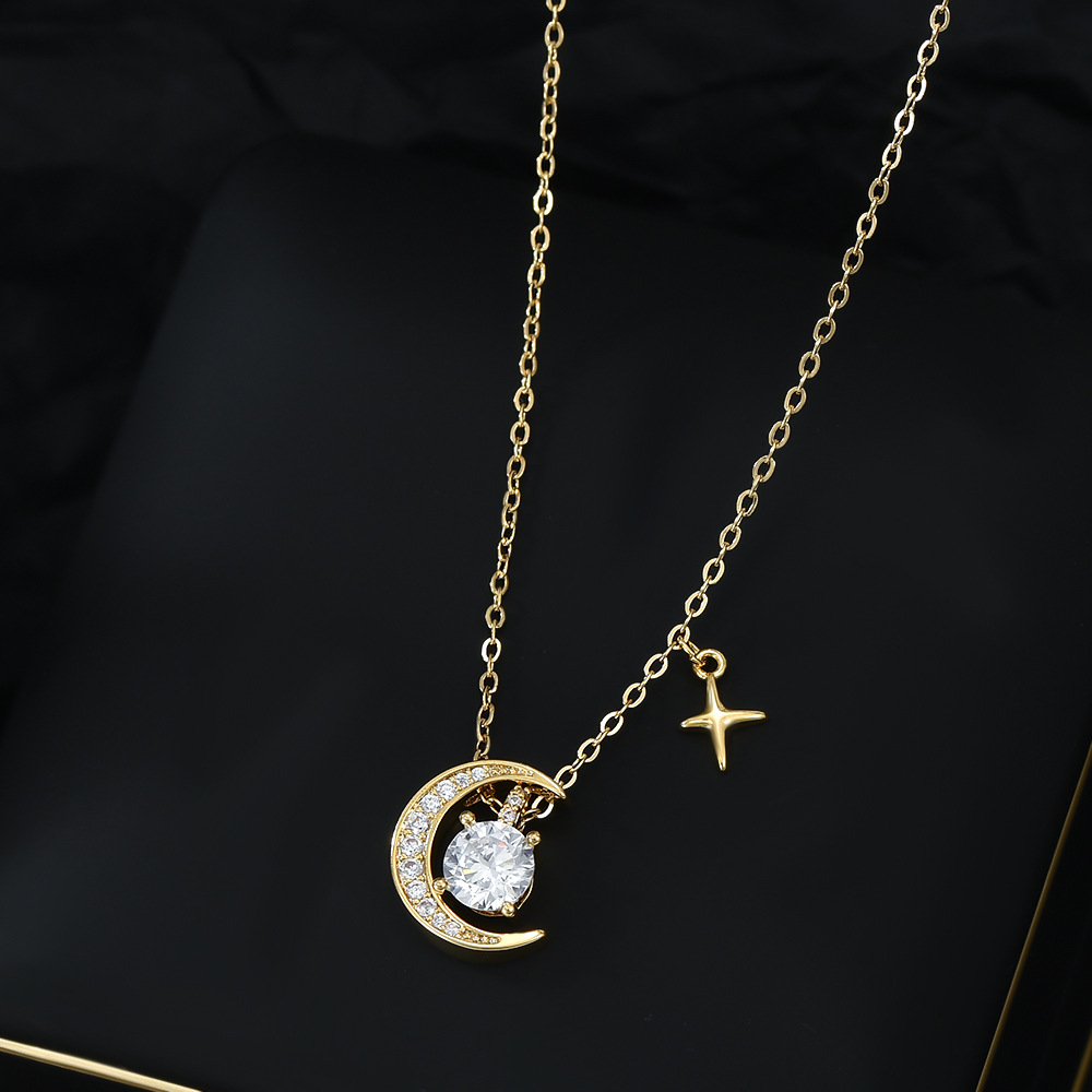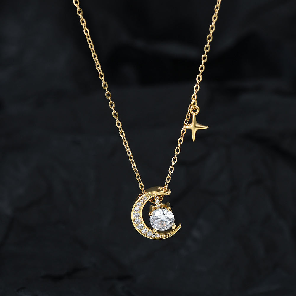 真金电镀微镶锆石气质锁骨链女小众设计感月亮四芒星项链百搭颈链 English | 投诉