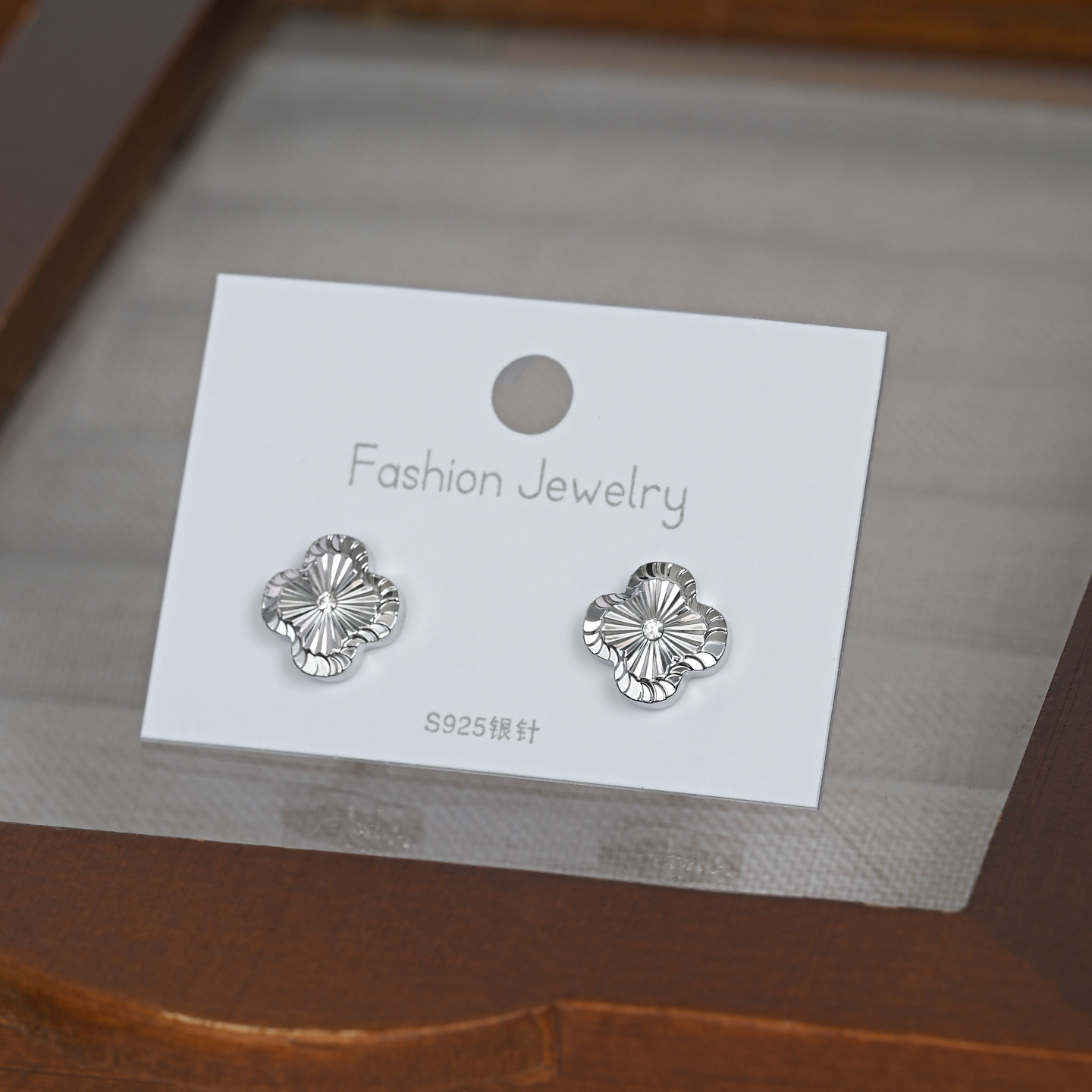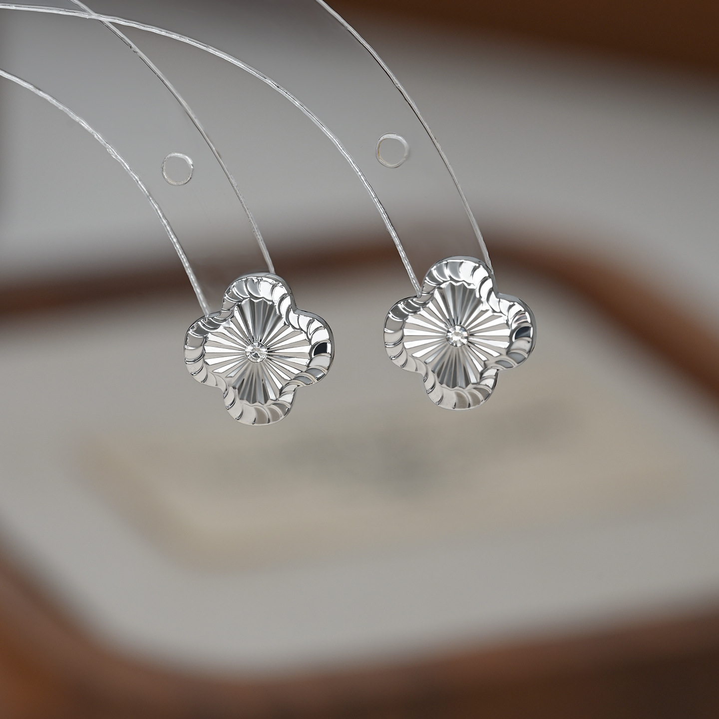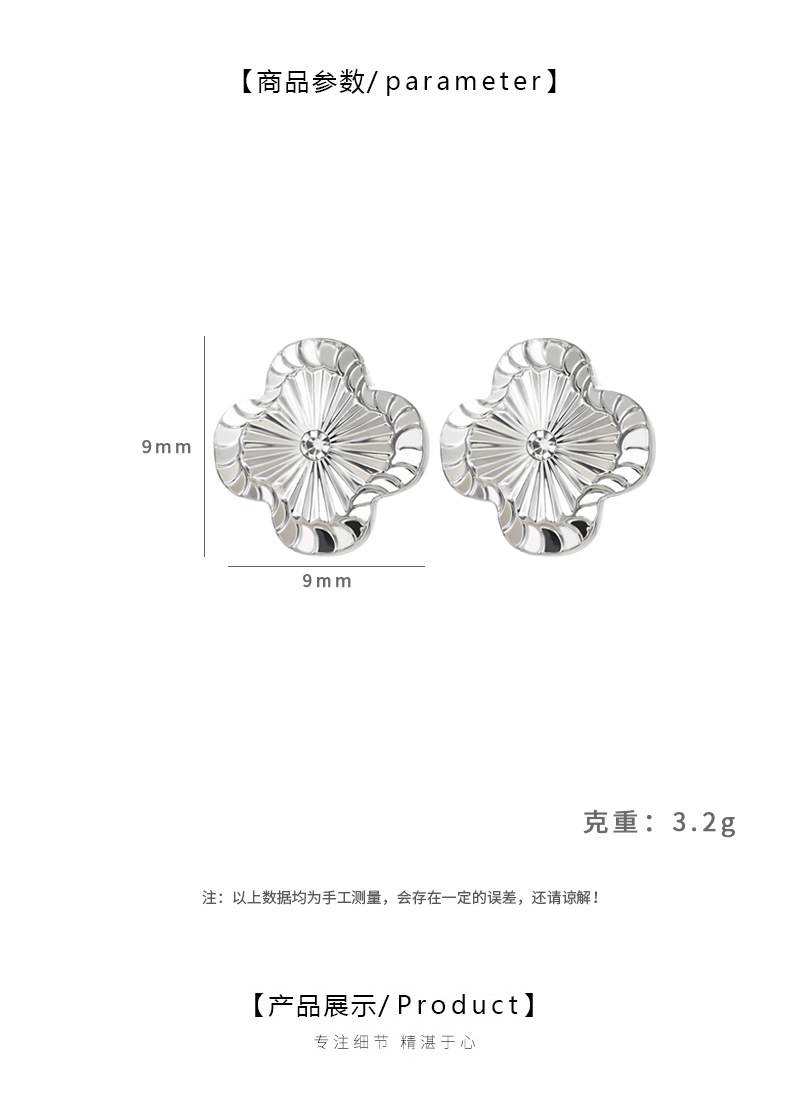 韩版时尚新款金属拉丝幸运四叶草耳钉女S925银针简约个性气质耳饰 English | 投诉