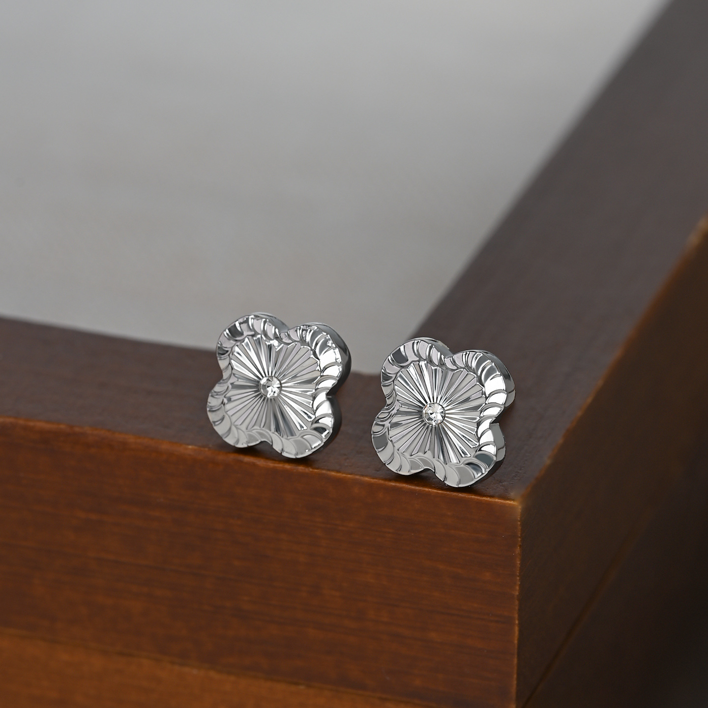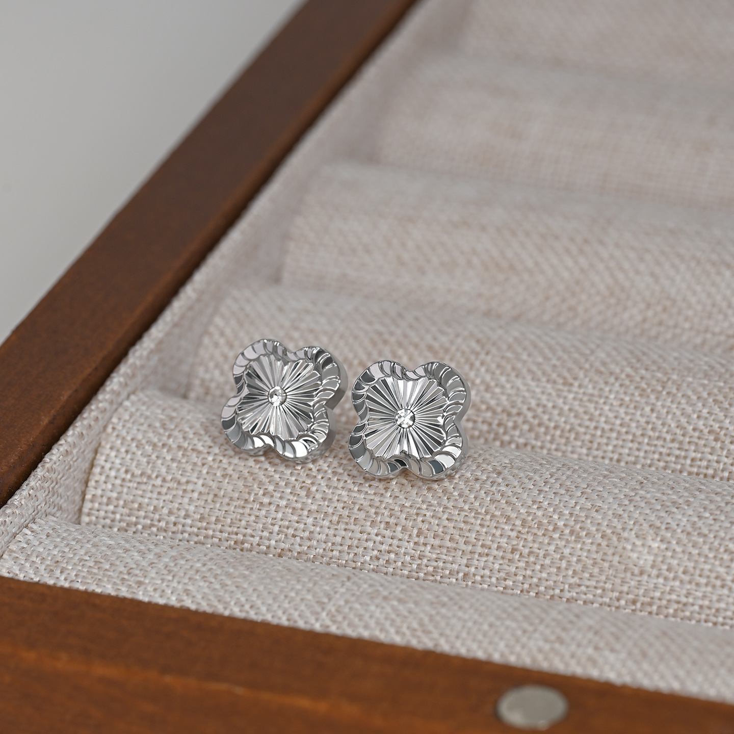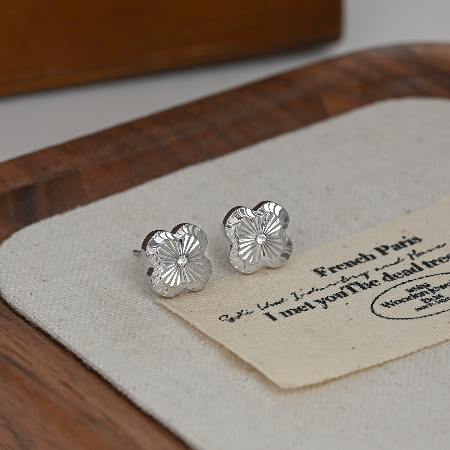韩版时尚新款金属拉丝幸运四叶草耳钉女S925银针简约个性气质耳饰 English | 投诉