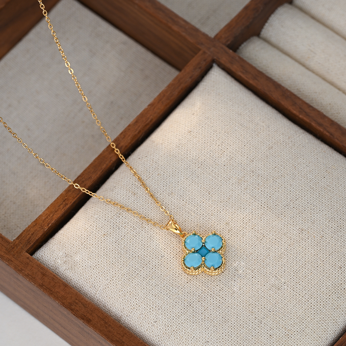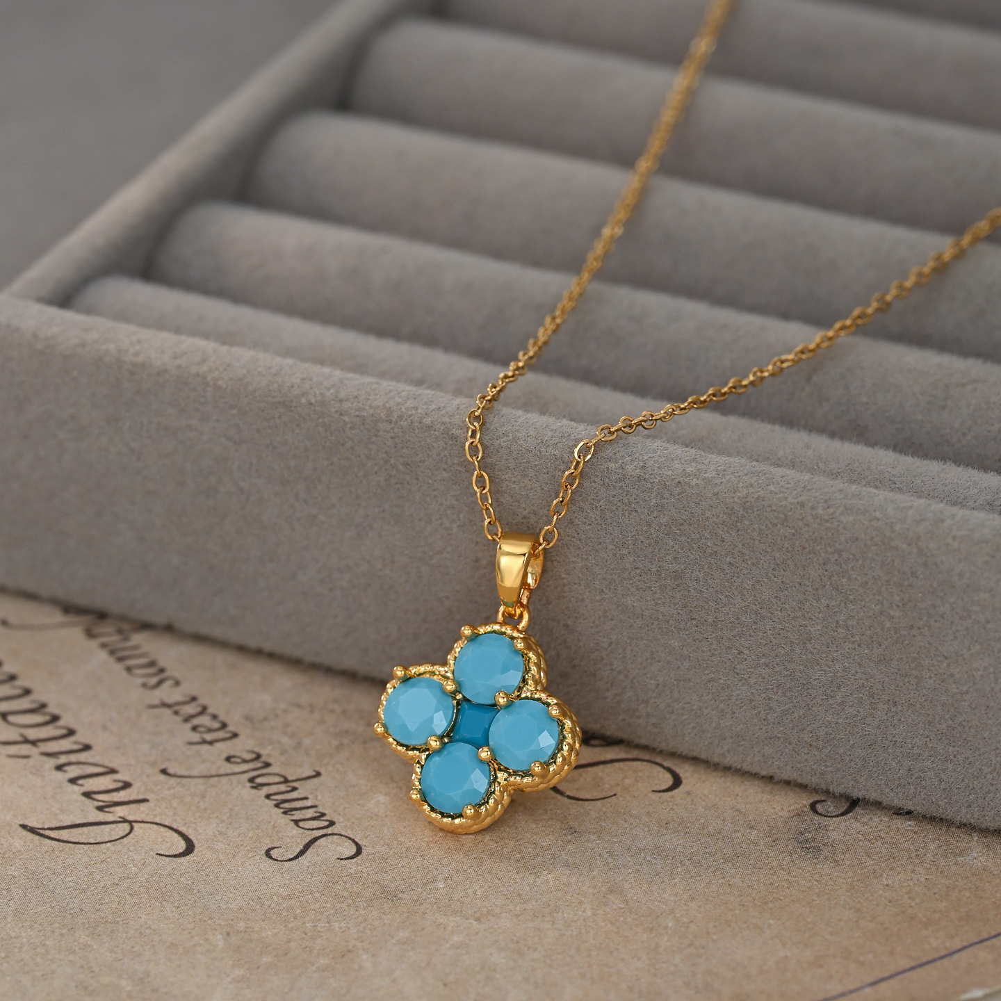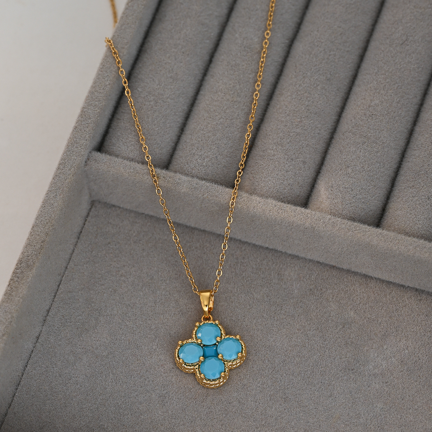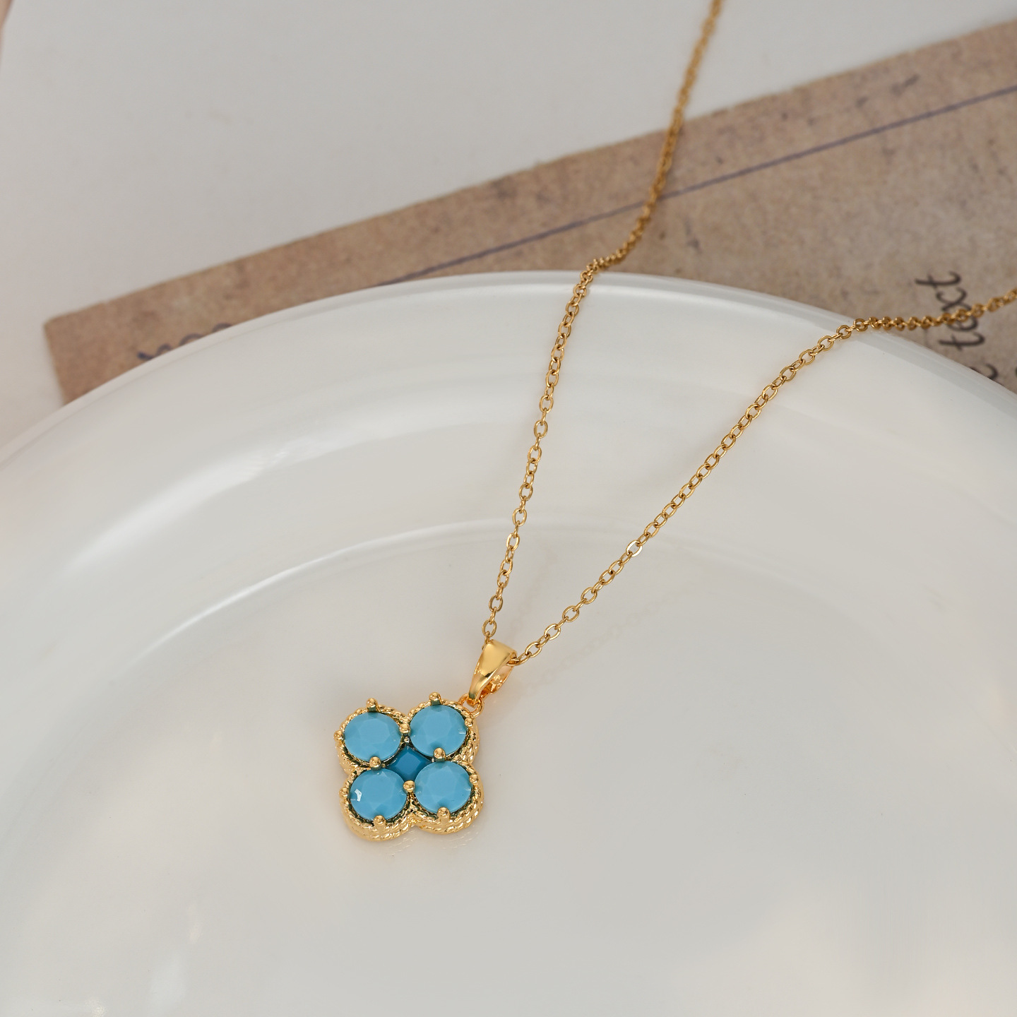真金电镀微镶锆石气质锁骨链女高级感蓝松石四叶草项链轻奢毛衣链 English | 投诉