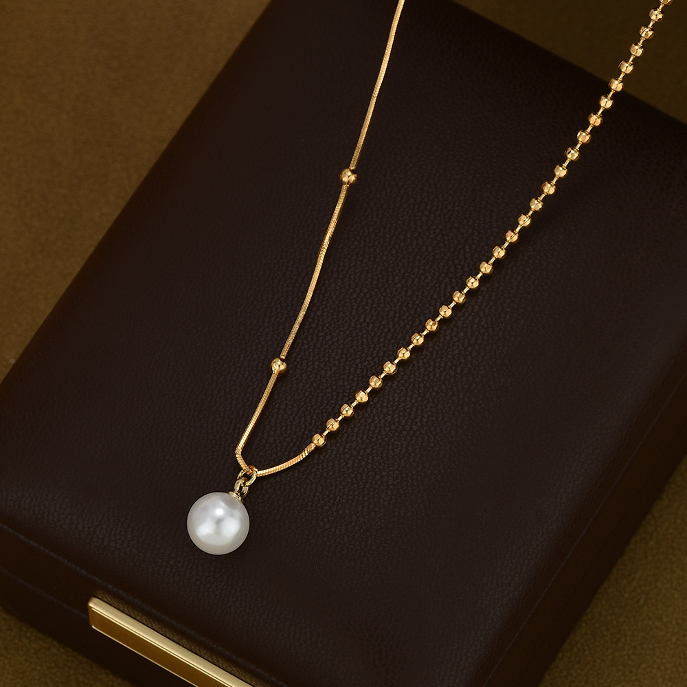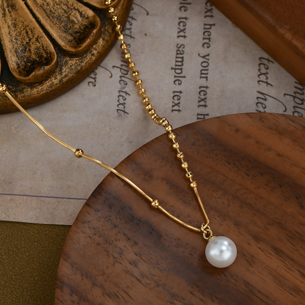 真金电镀复古法式珍珠项链女小众设计感2024年抖音直播网红锁骨链 English | 投诉
