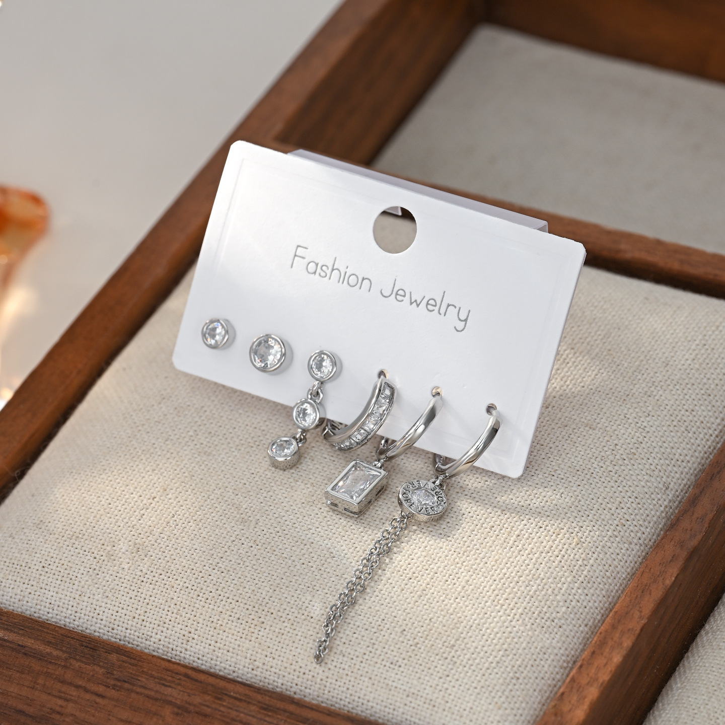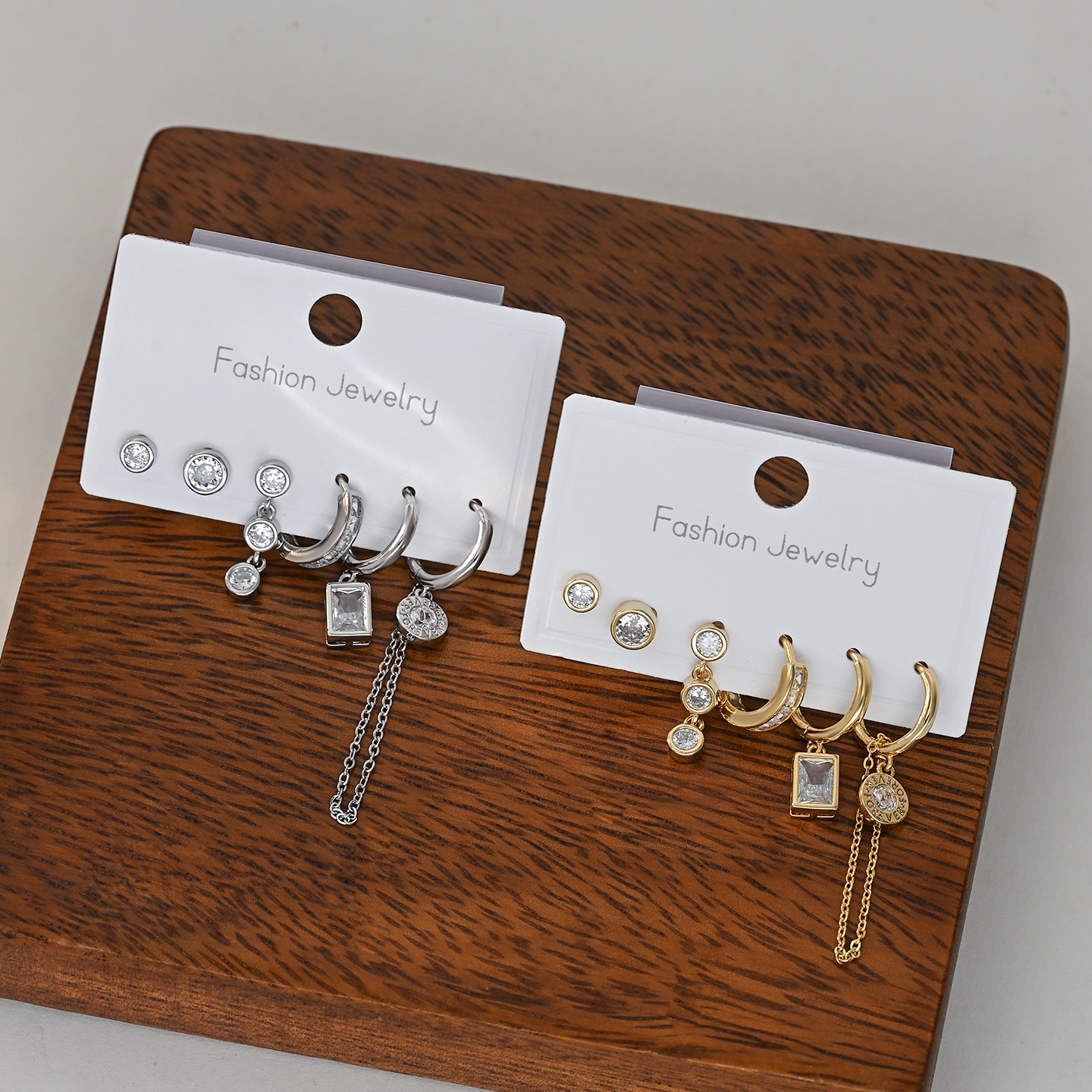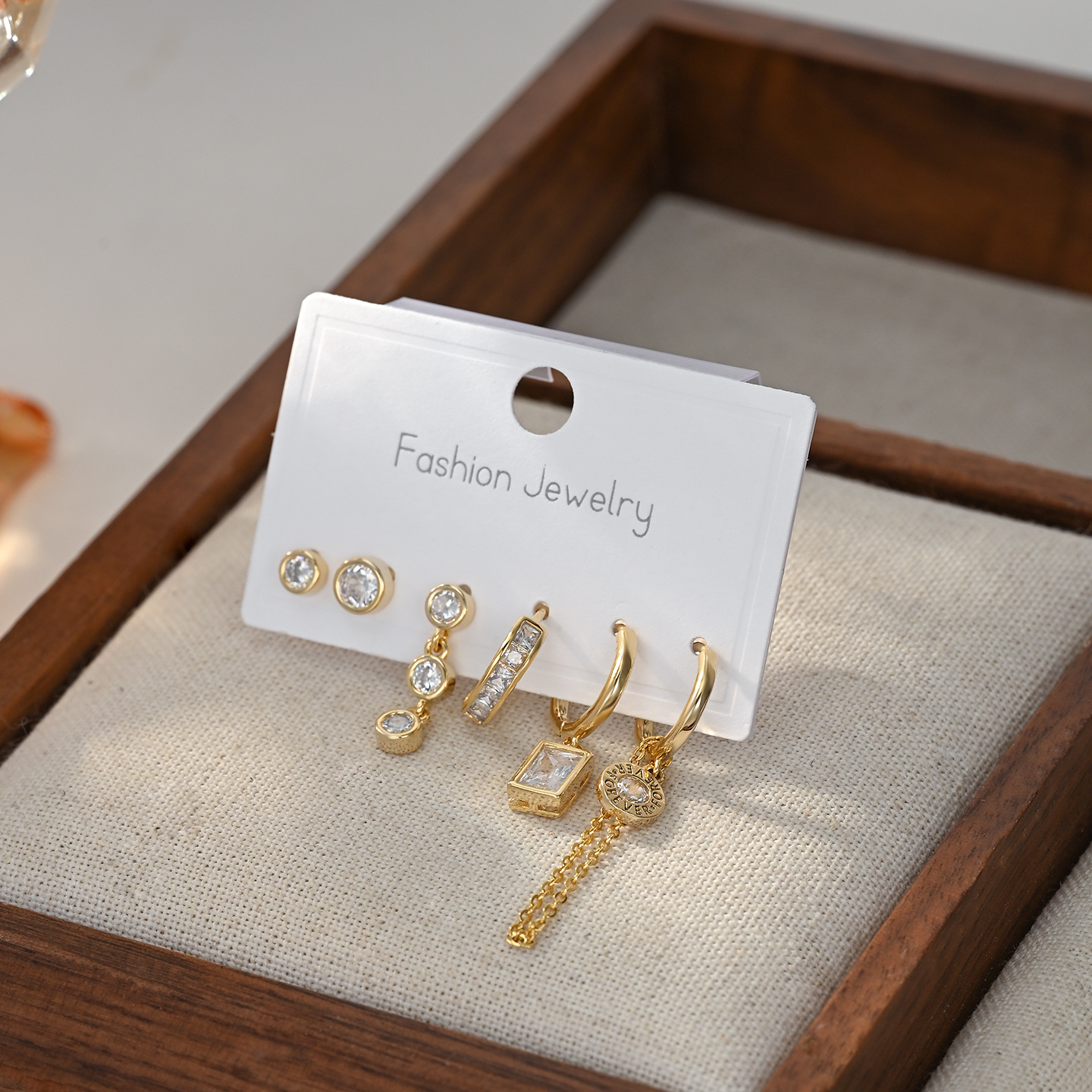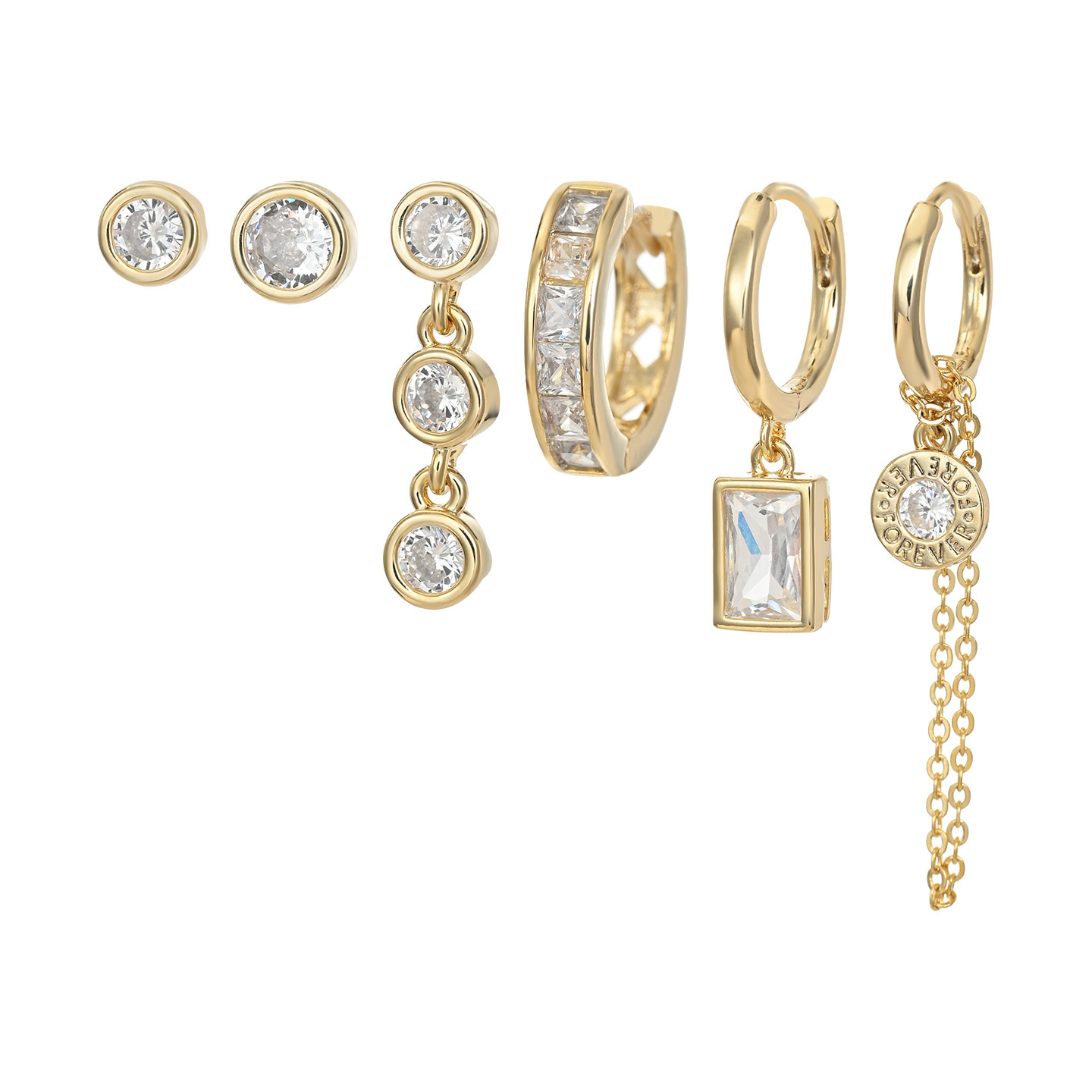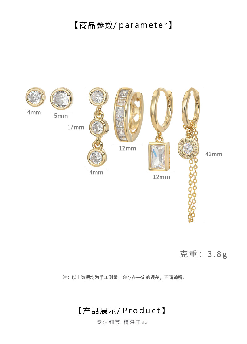 新款时尚微镶锆石个性气质耳环耳扣三件套ins潮轻奢百搭耳饰套装 English | 投诉