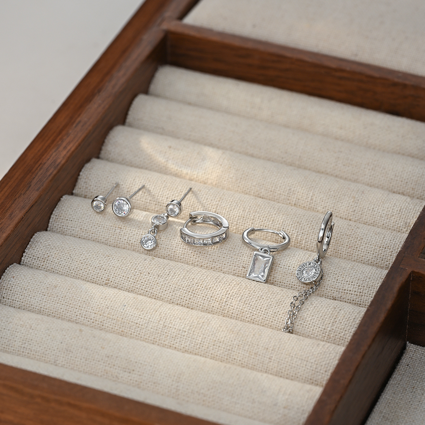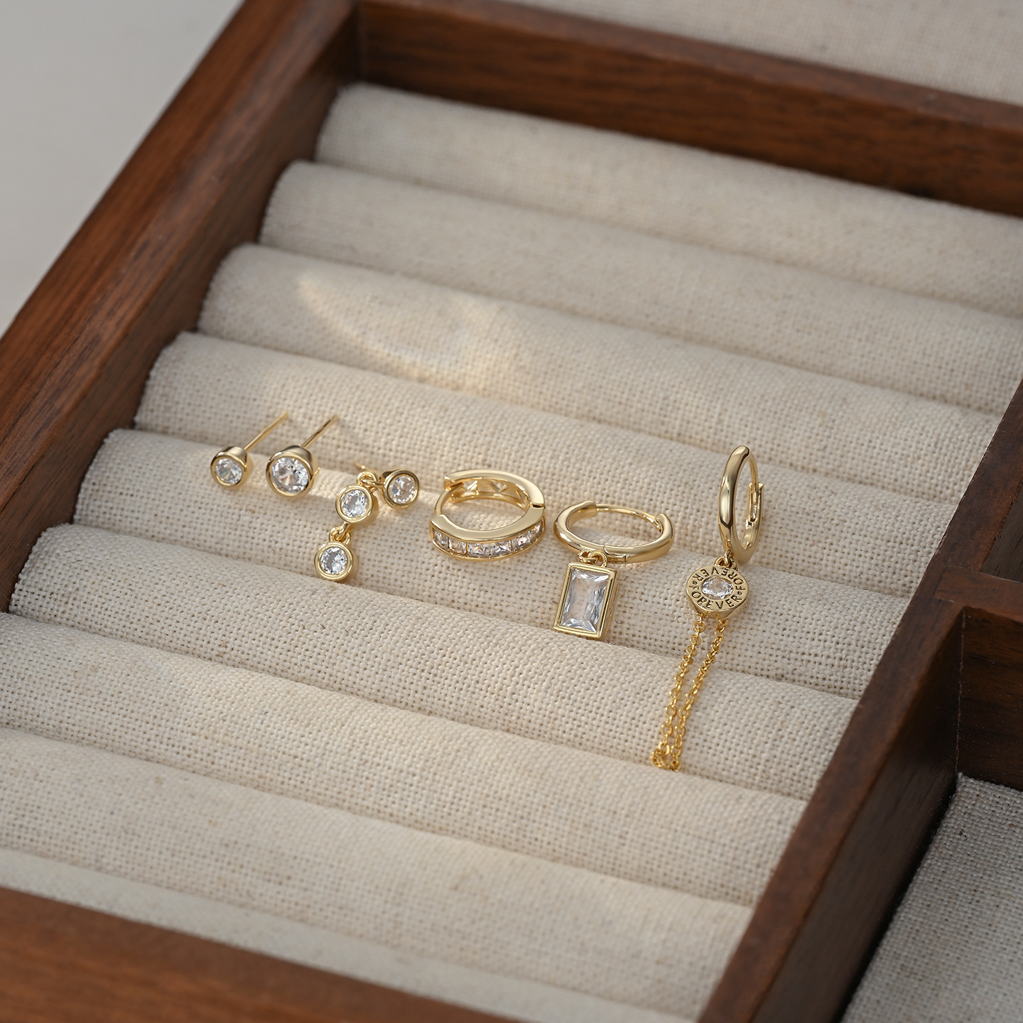 新款时尚微镶锆石个性气质耳环耳扣三件套ins潮轻奢百搭耳饰套装