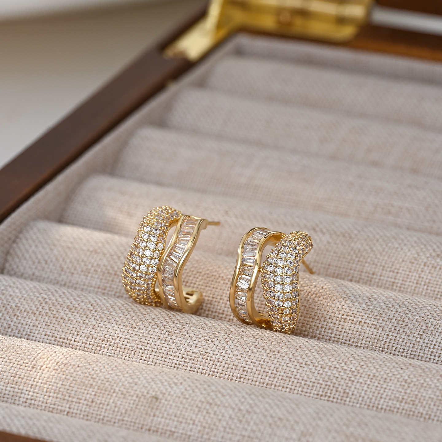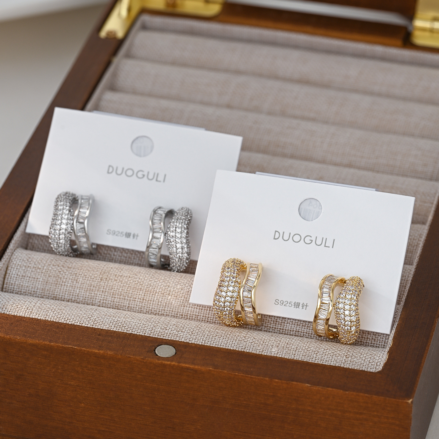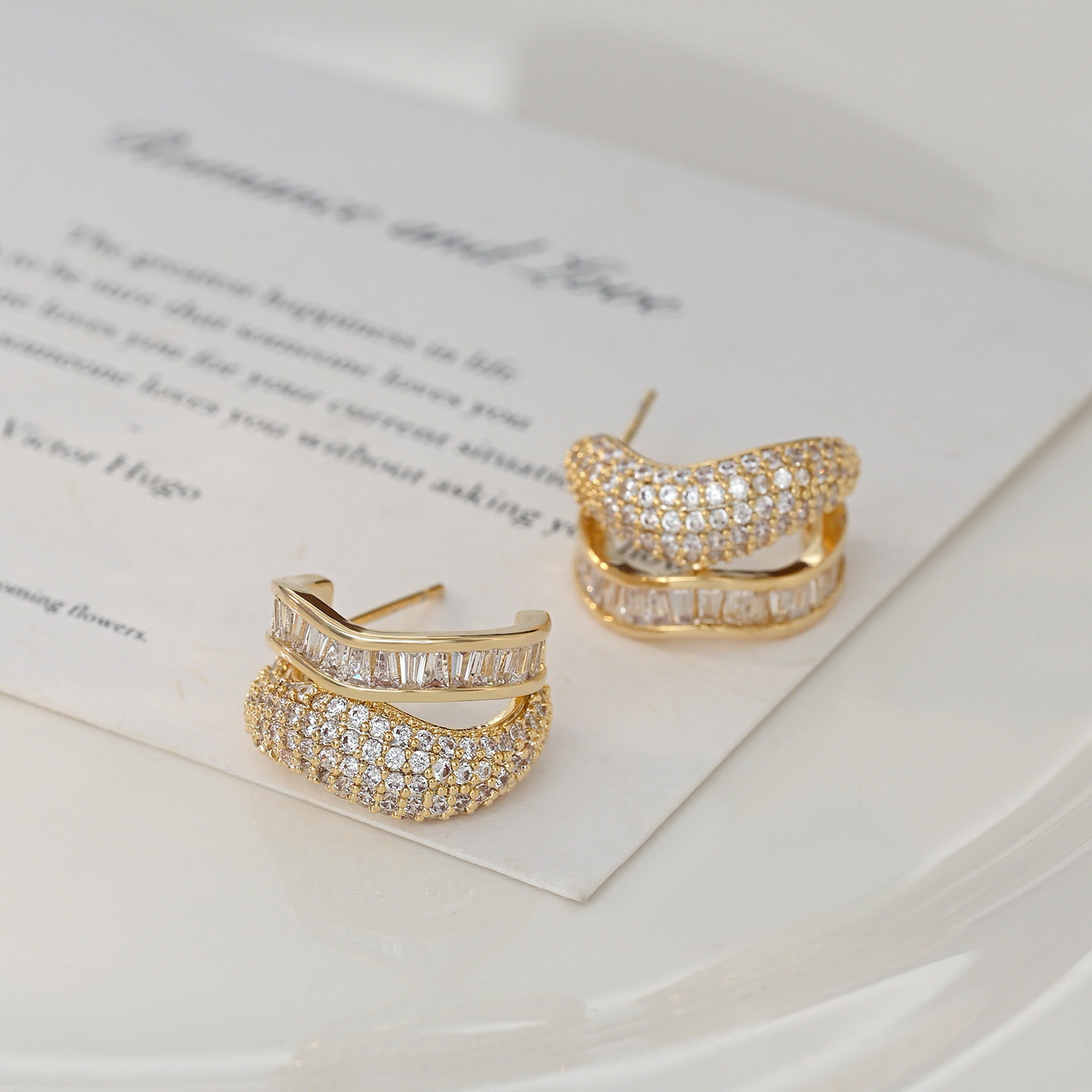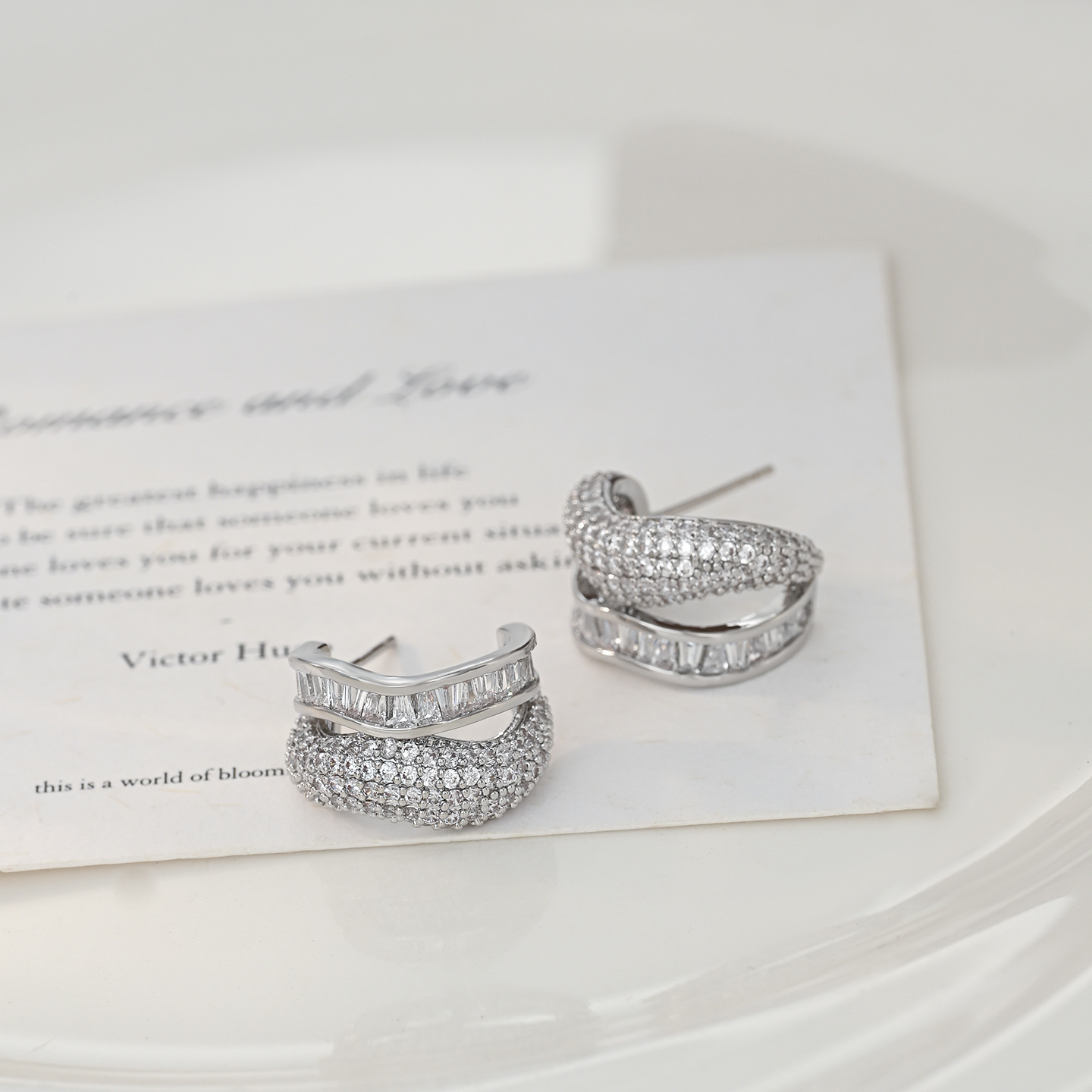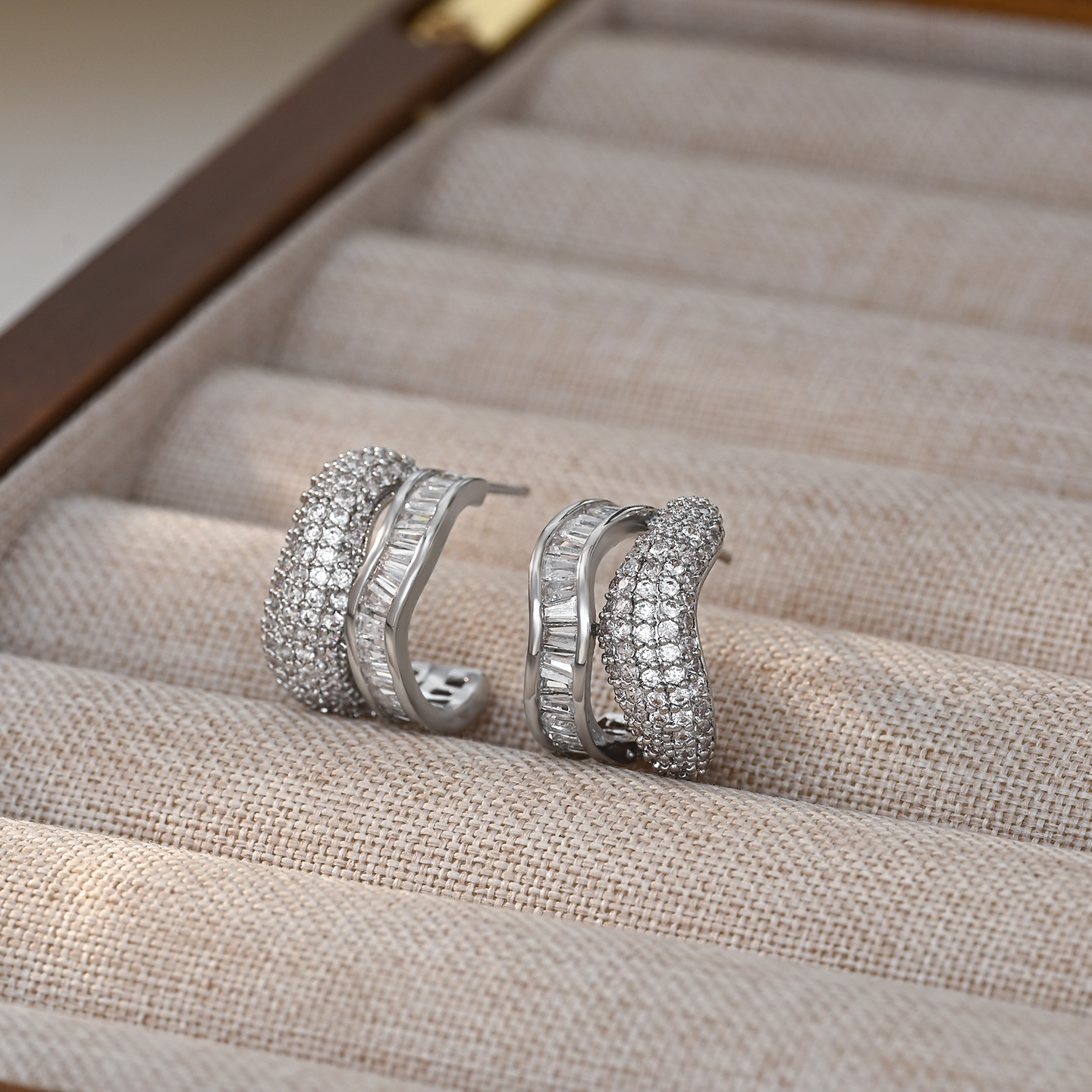 S925银针微镶锆石超闪不规则双层耳钉韩版时尚轻奢气质耳饰潮批发 English | 投诉