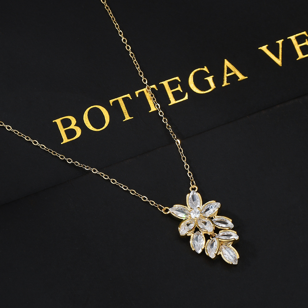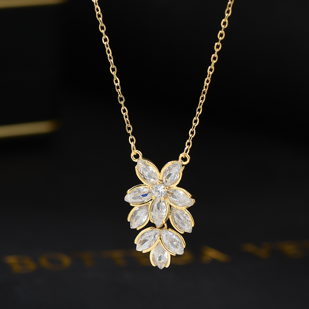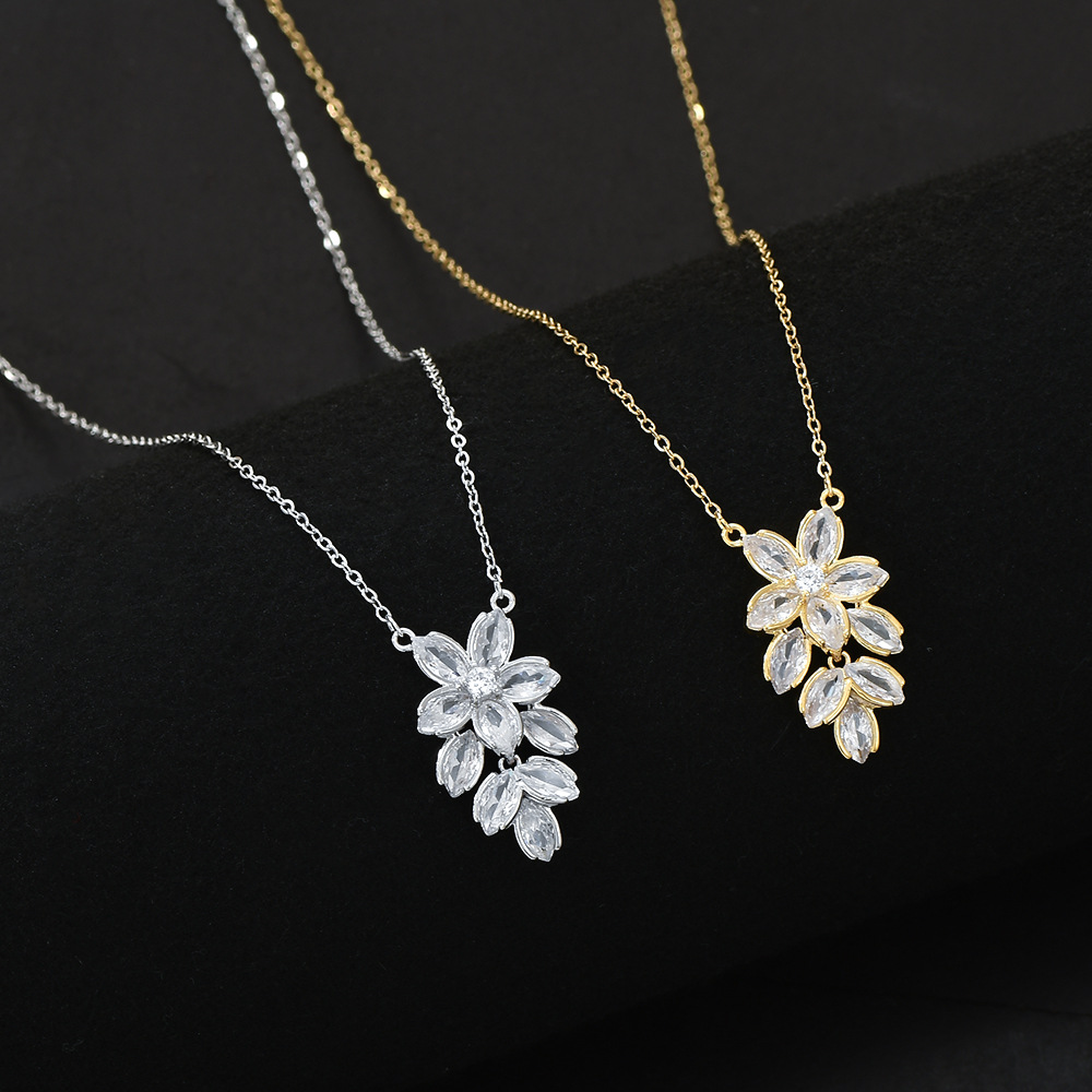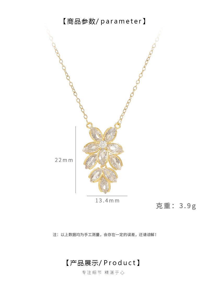 真金电镀微镶锆石气质锁骨链女小众设计感花瓣项链ins风精致颈链 English | 投诉