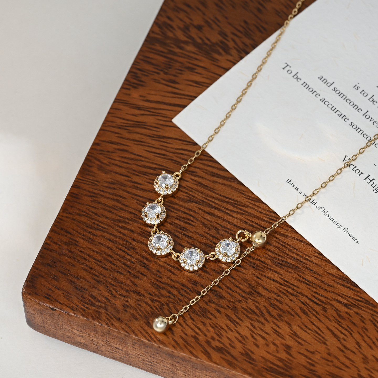 真金电镀微镶锆石气质锁骨链女高级感流苏项链精致百搭可调节颈链 English | 投诉