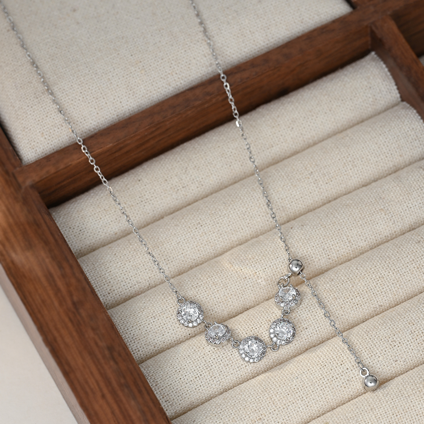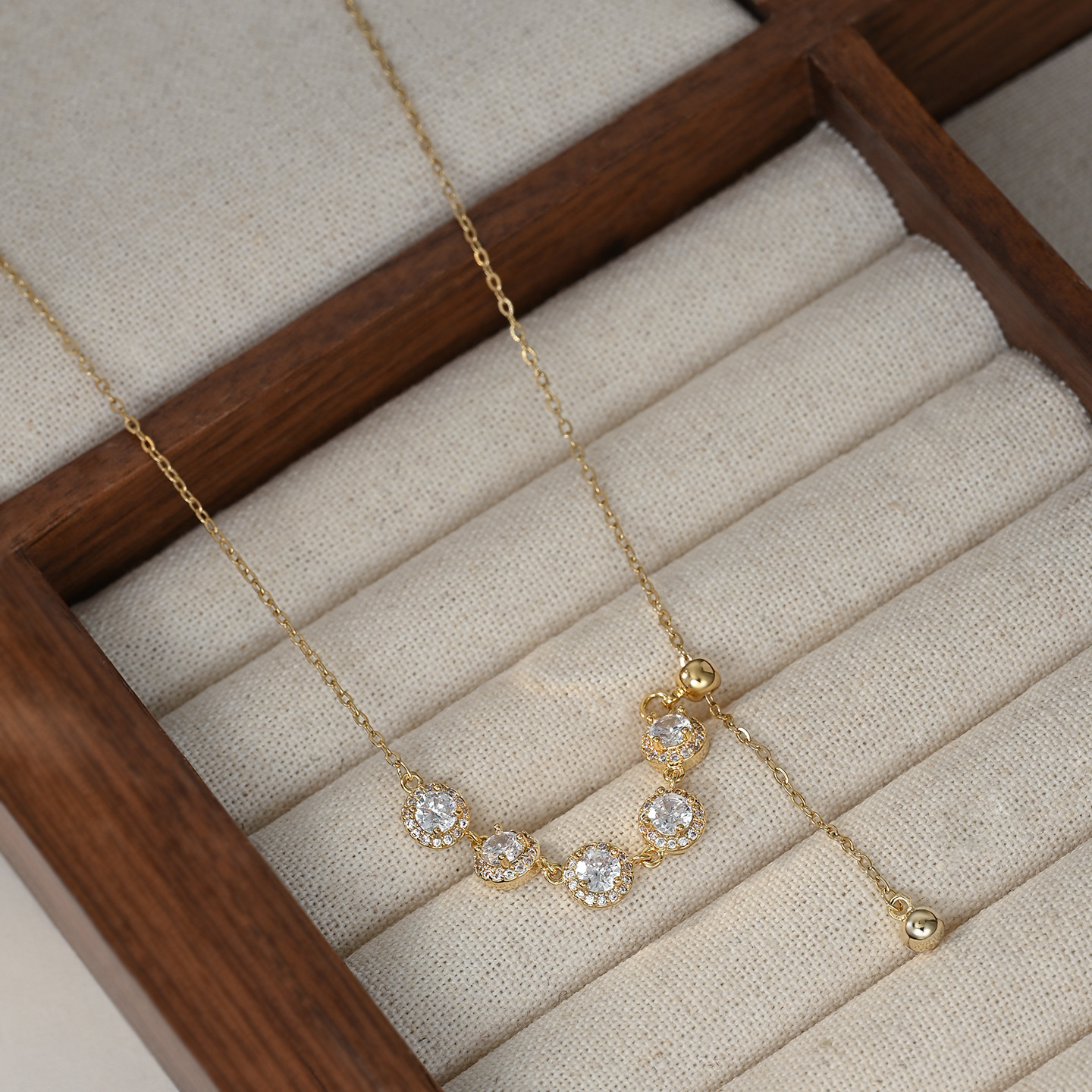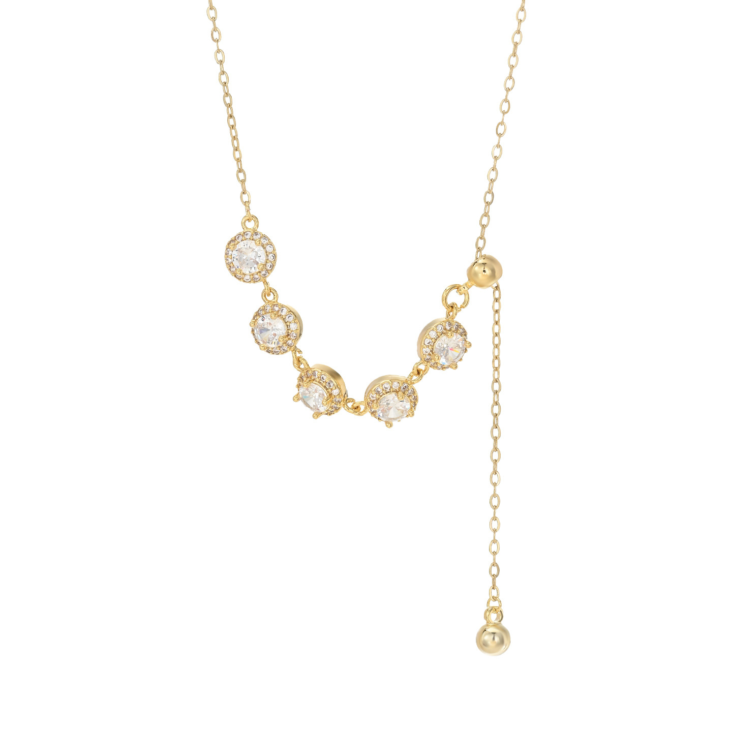 真金电镀微镶锆石气质锁骨链女高级感流苏项链精致百搭可调节颈链