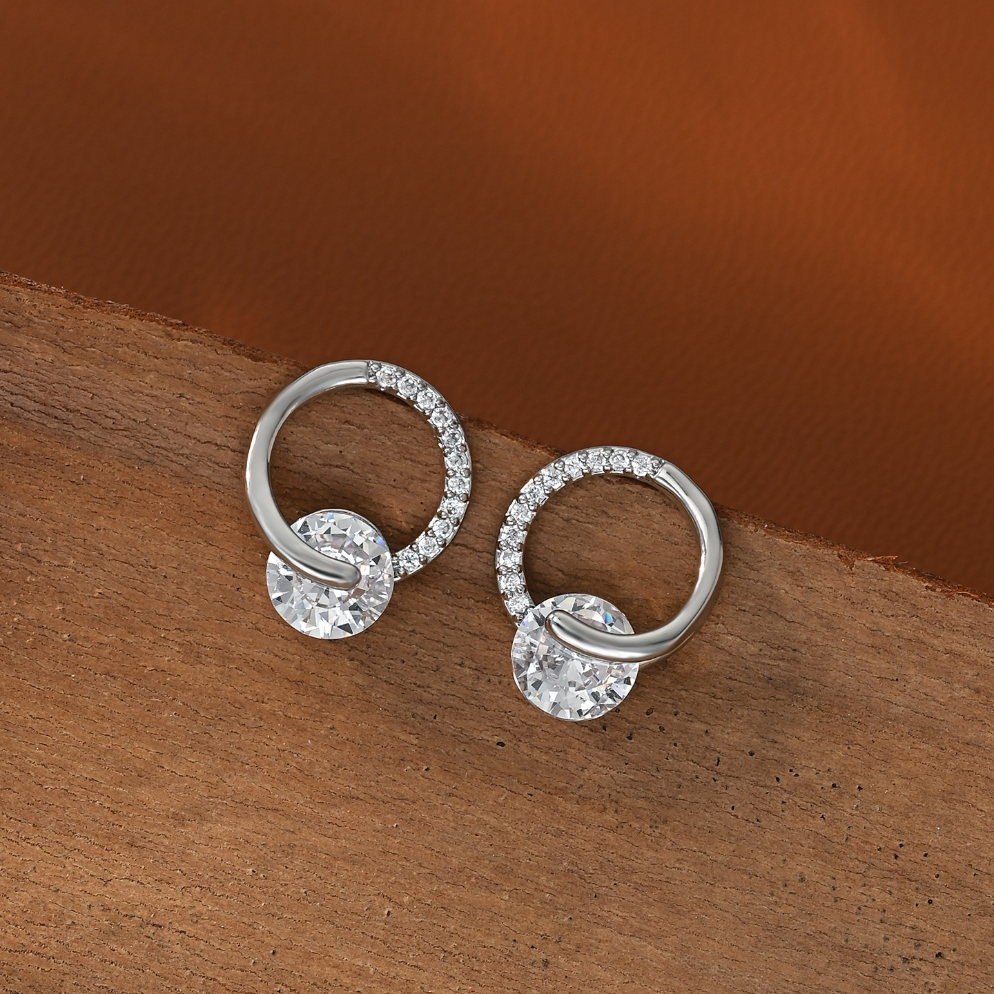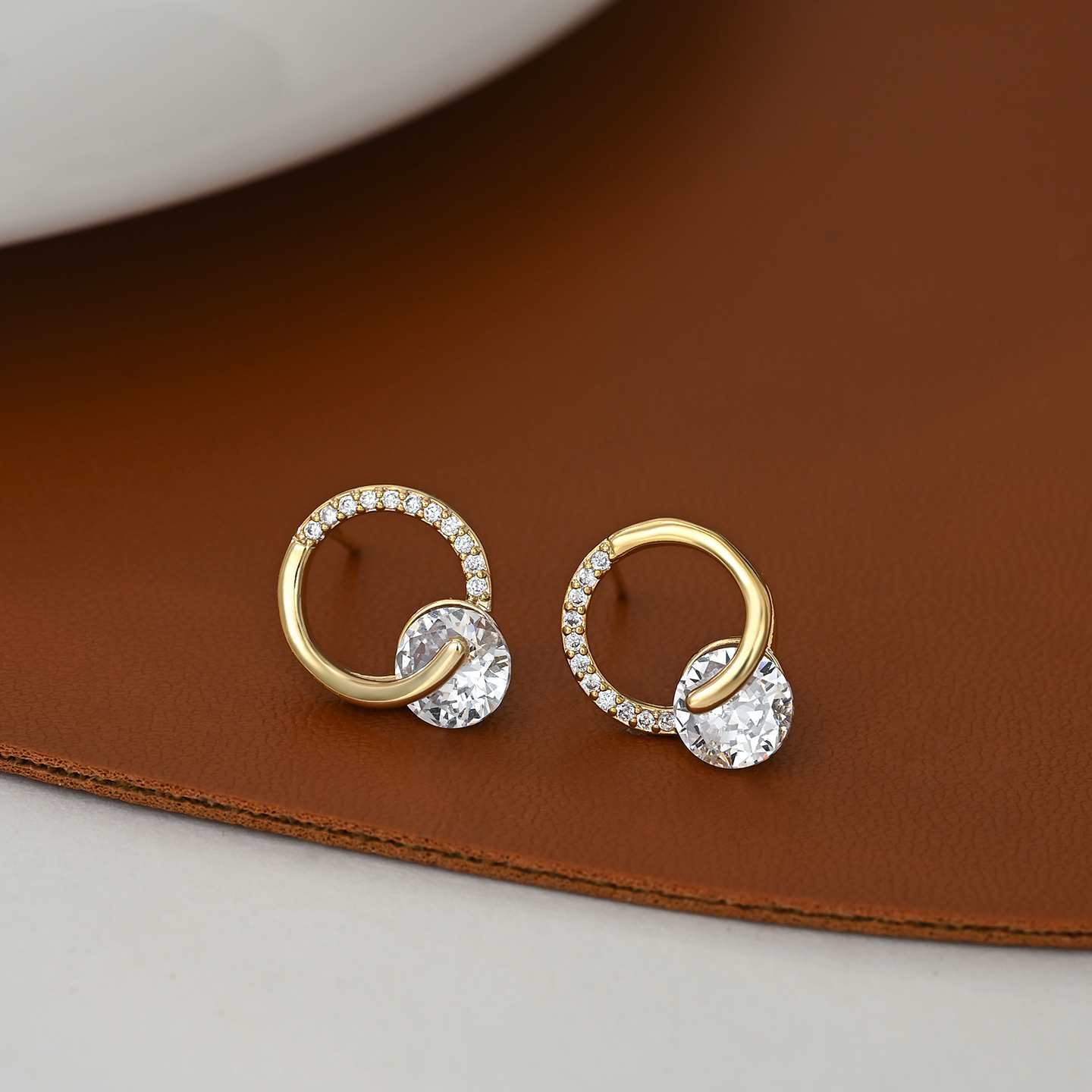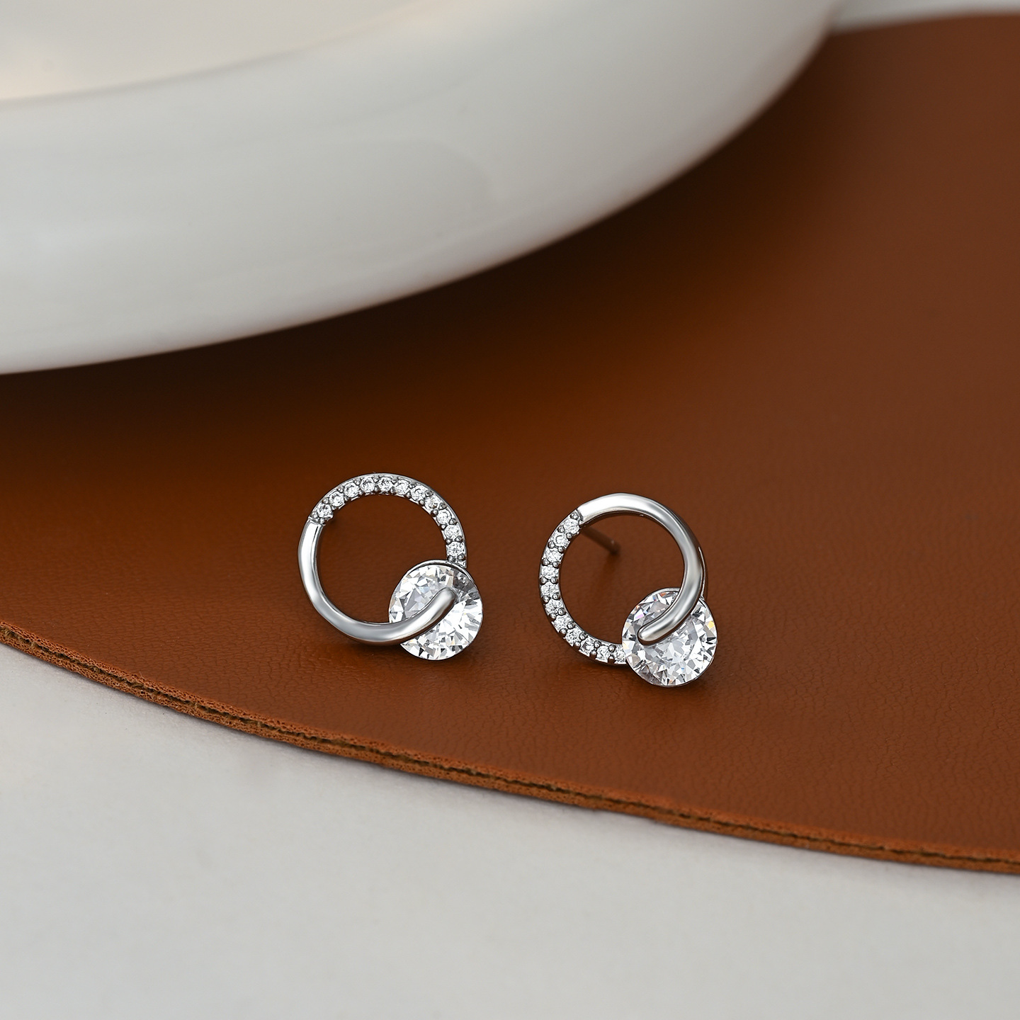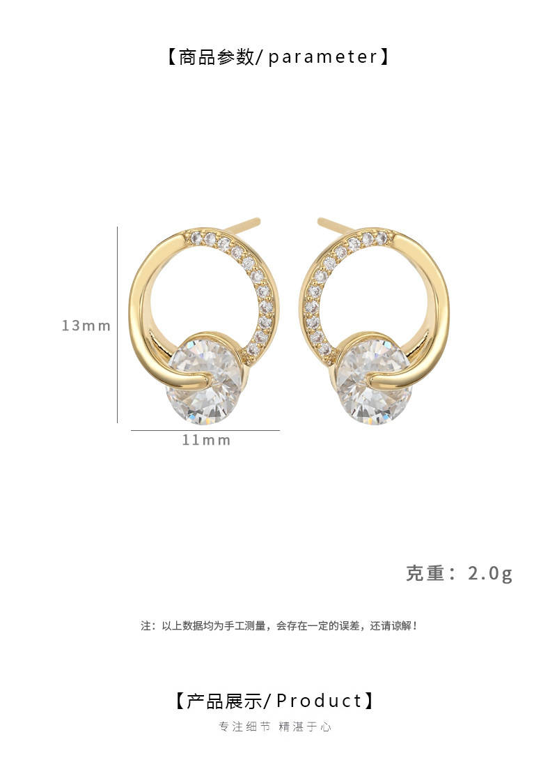 S925银针韩国时尚个性锆石耳钉女高级感环环相扣耳环精致百搭耳饰 English | 投诉