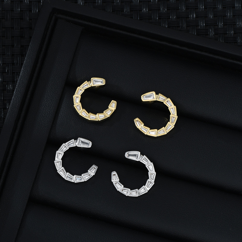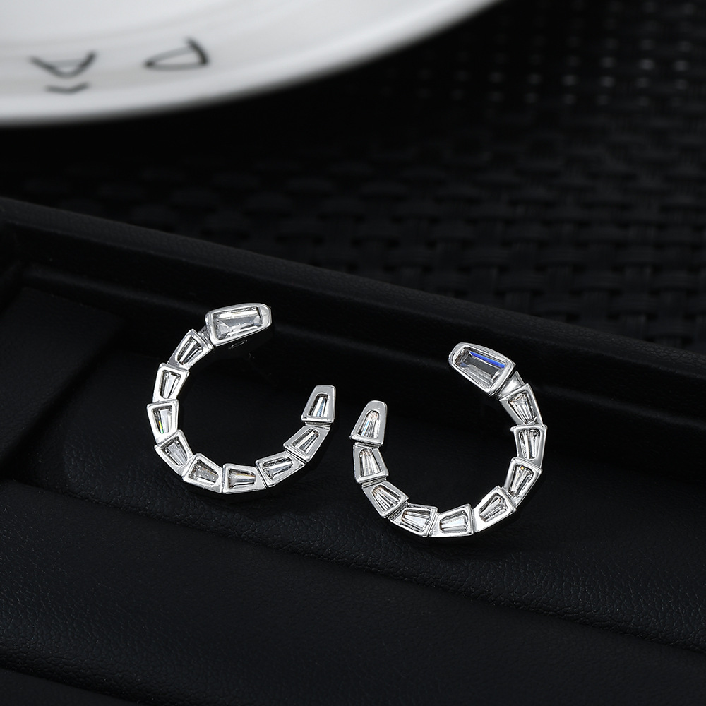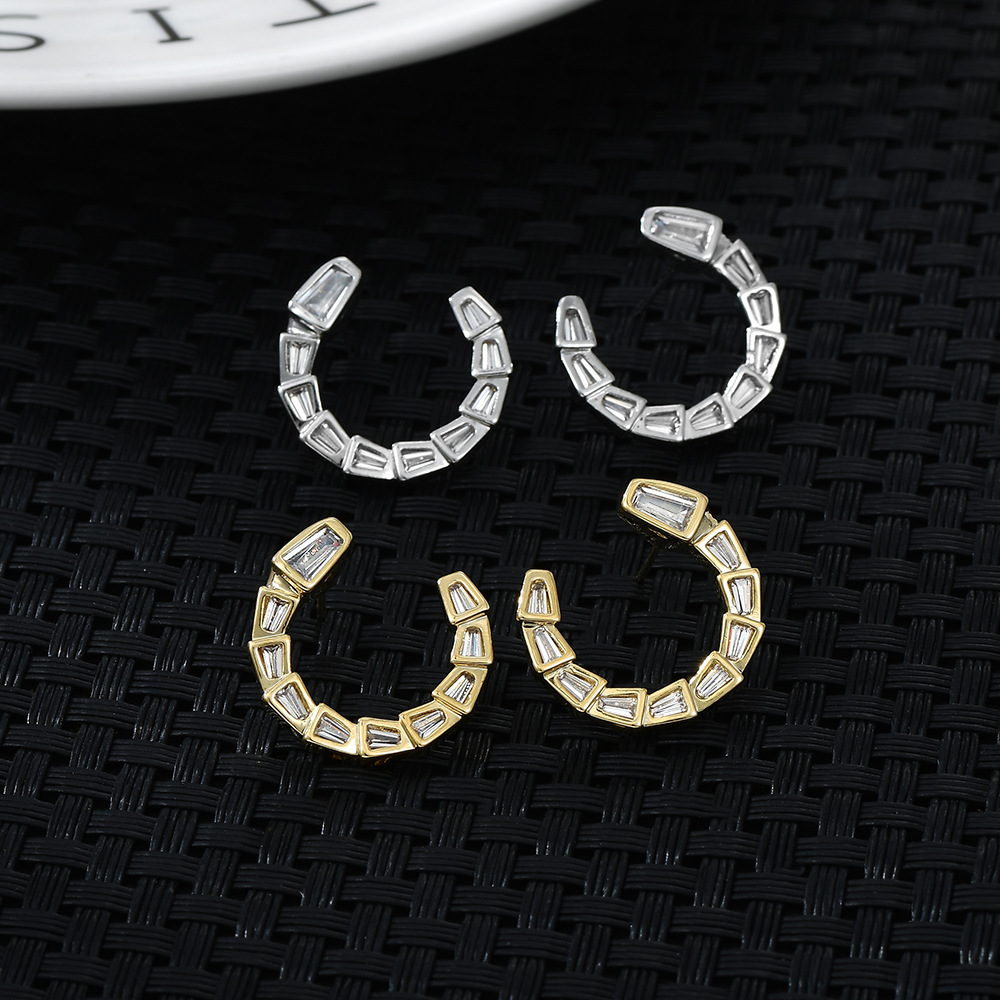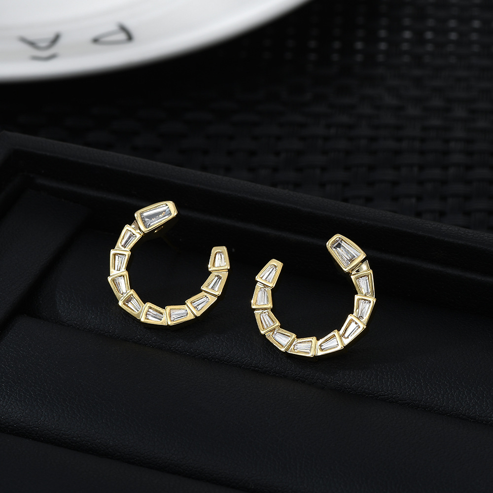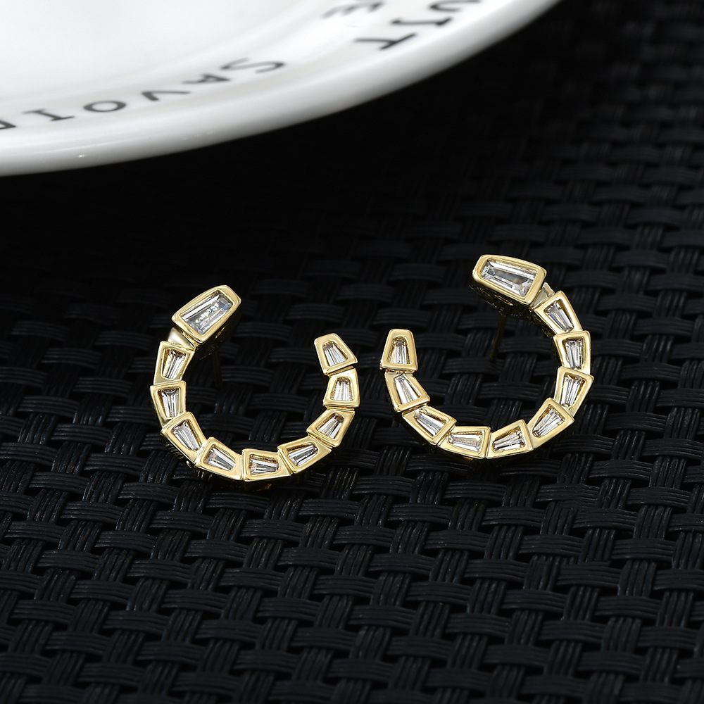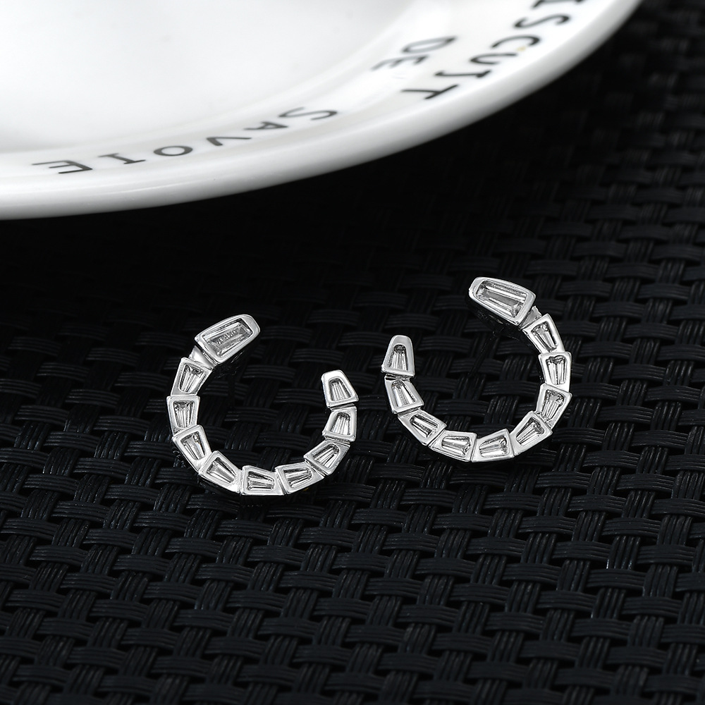 S925银针韩国时尚设计感锆石蛇骨耳钉女高级感几何C形耳饰品精致 English | 投诉