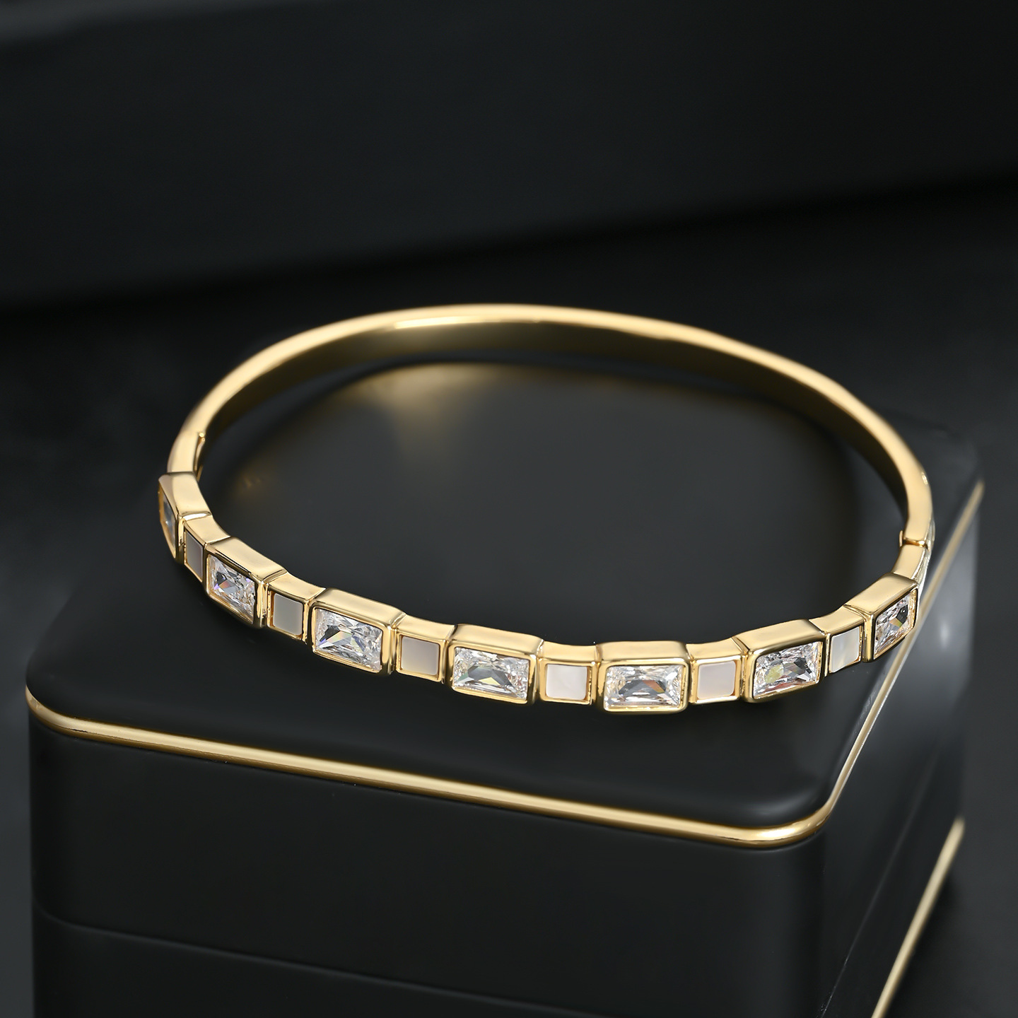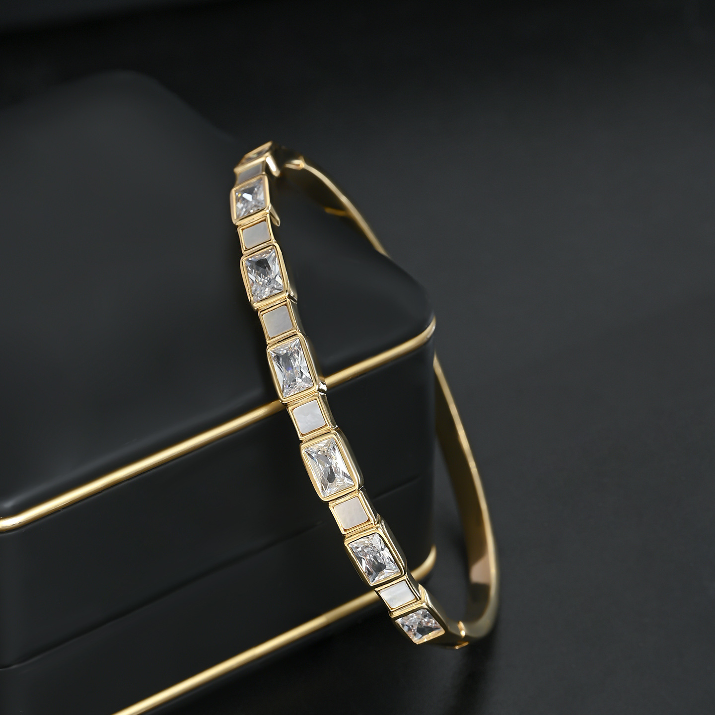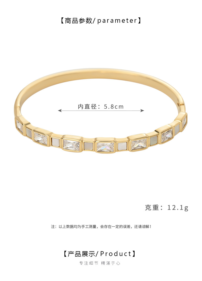 真金电镀微镶锆石轻奢风手镯高级感天然贝壳几何方糖手饰手环批发 English | 投诉