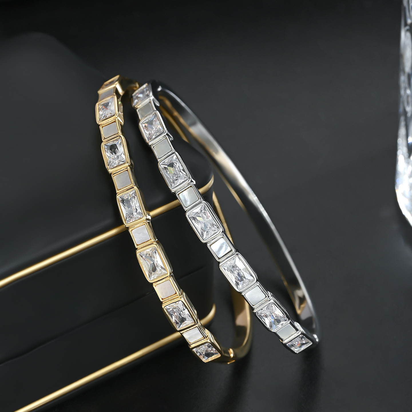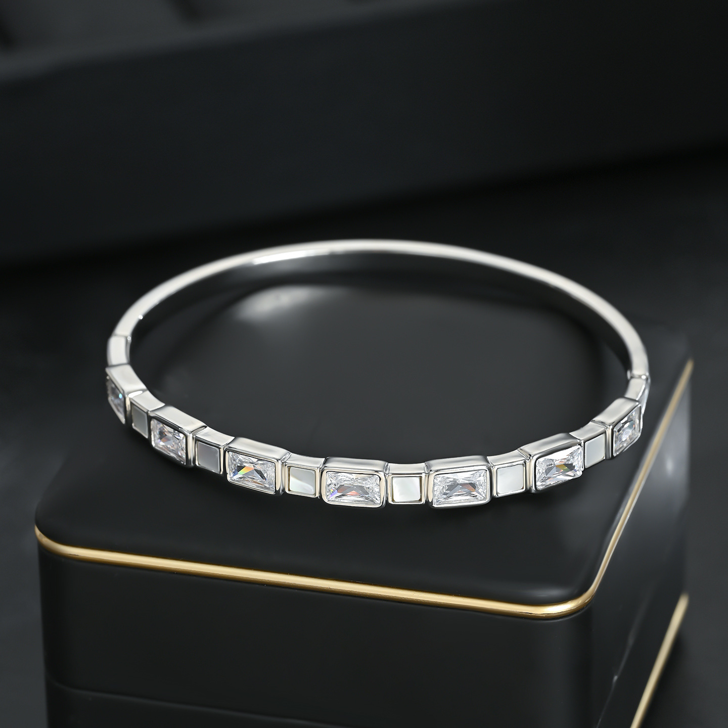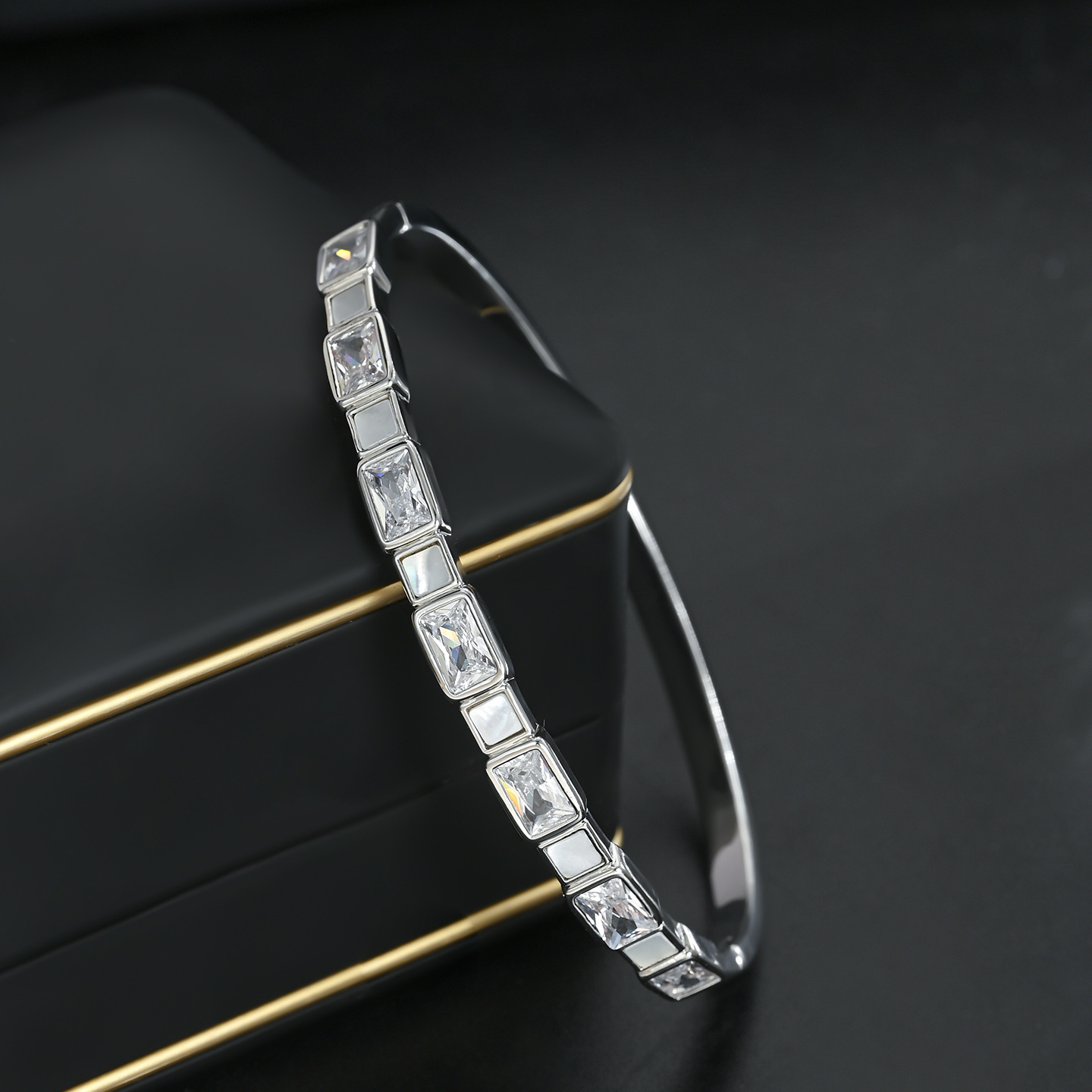 真金电镀微镶锆石轻奢风手镯高级感天然贝壳几何方糖手饰手环批发 English | 投诉